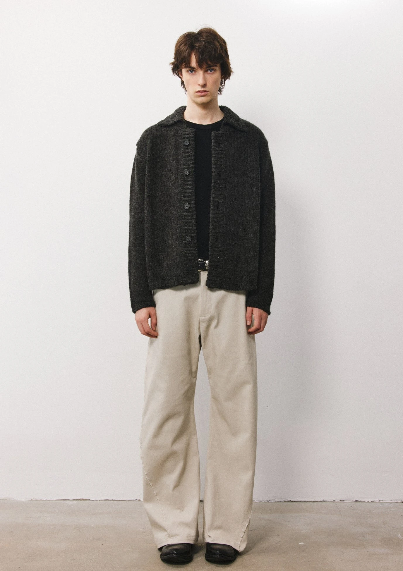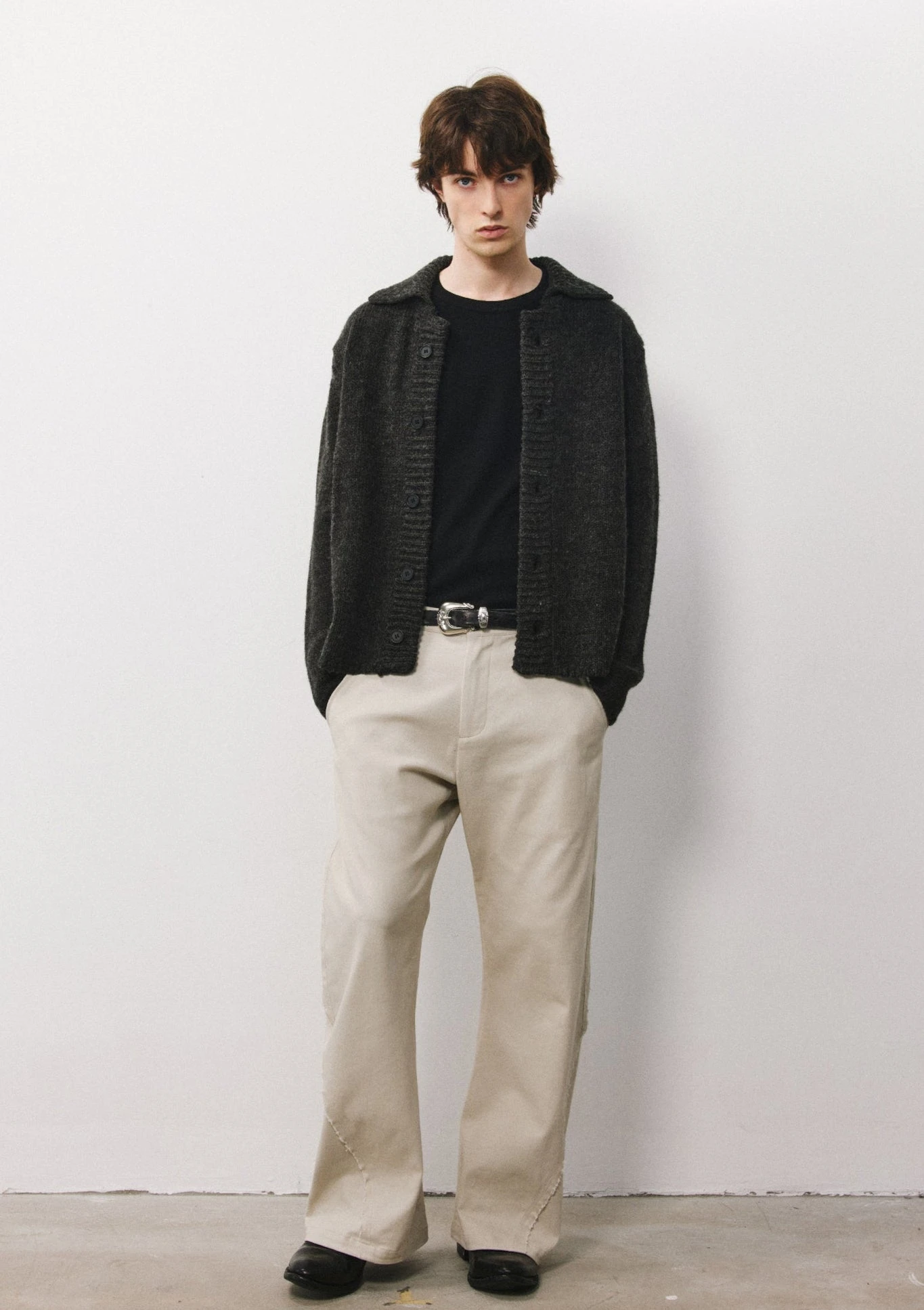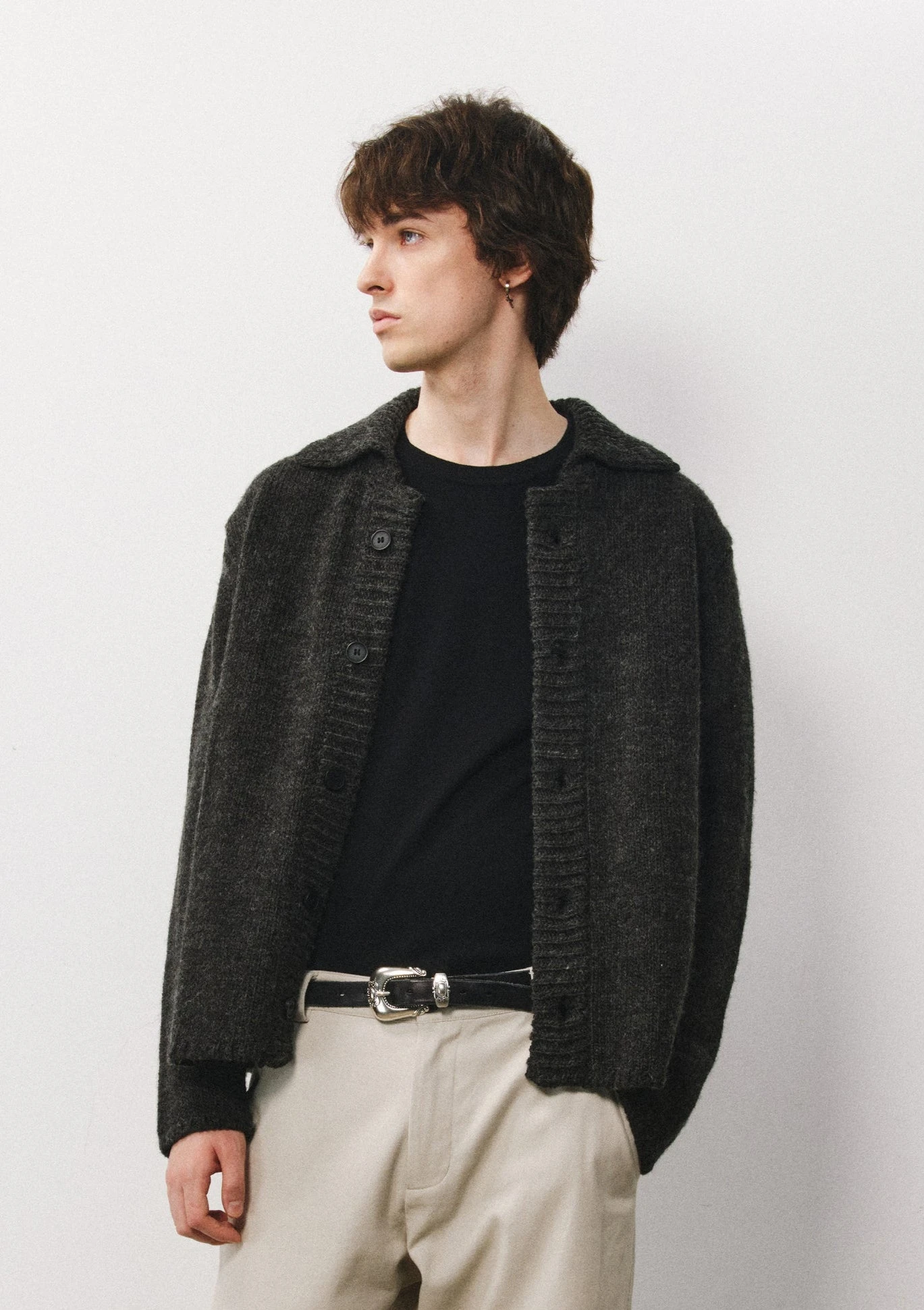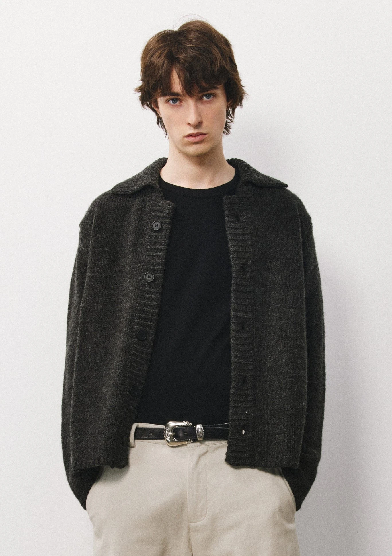 Made from a wool-acrylic blend, the fabric feels warm against the skin while holding its shape with subtle structure. The relaxed silhouette features a soft lapel collar and tonal resin buttons for a minimal, polished finish. Ribbed edges at the hem and cuffs keep it together without feeling too tight, and the brushed surface adds natural dimension without any heavy bulk.