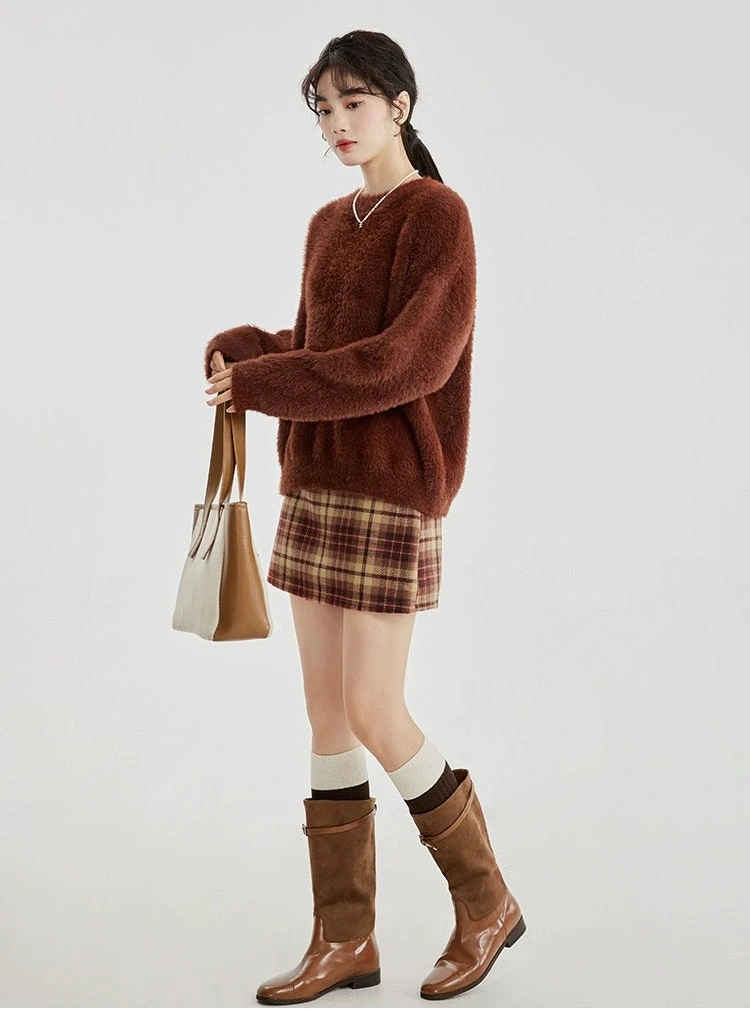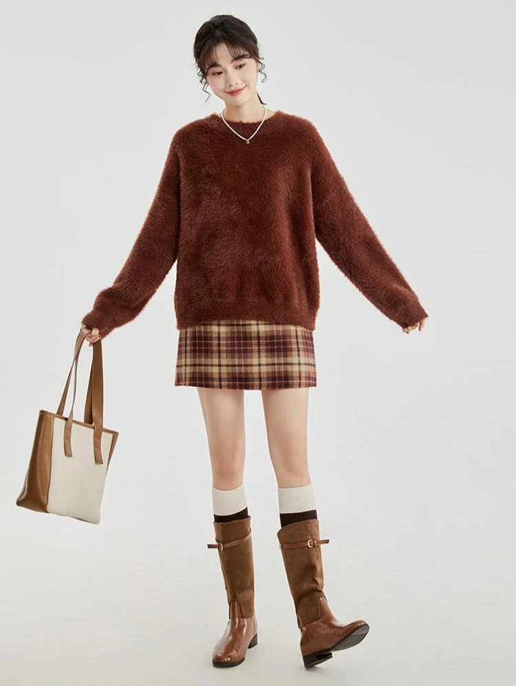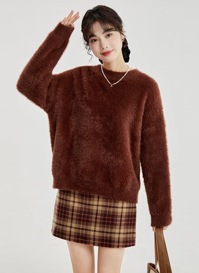 Embrace the chic coziness of our Fuzzy Oversized Round Neck Sweater, a timeless piece that exudes effortless style.
