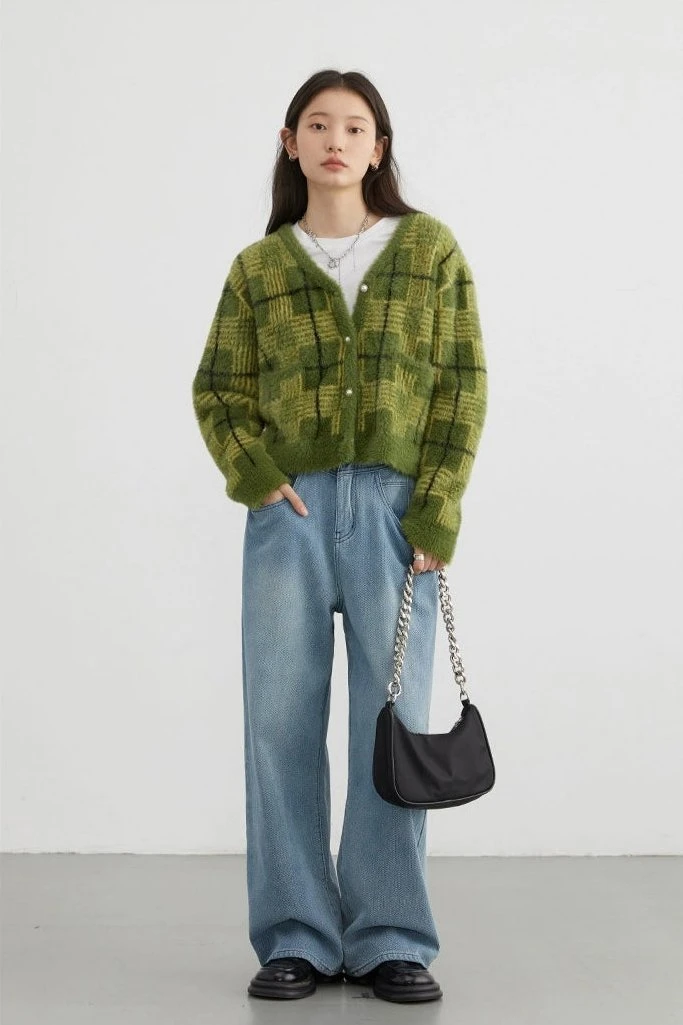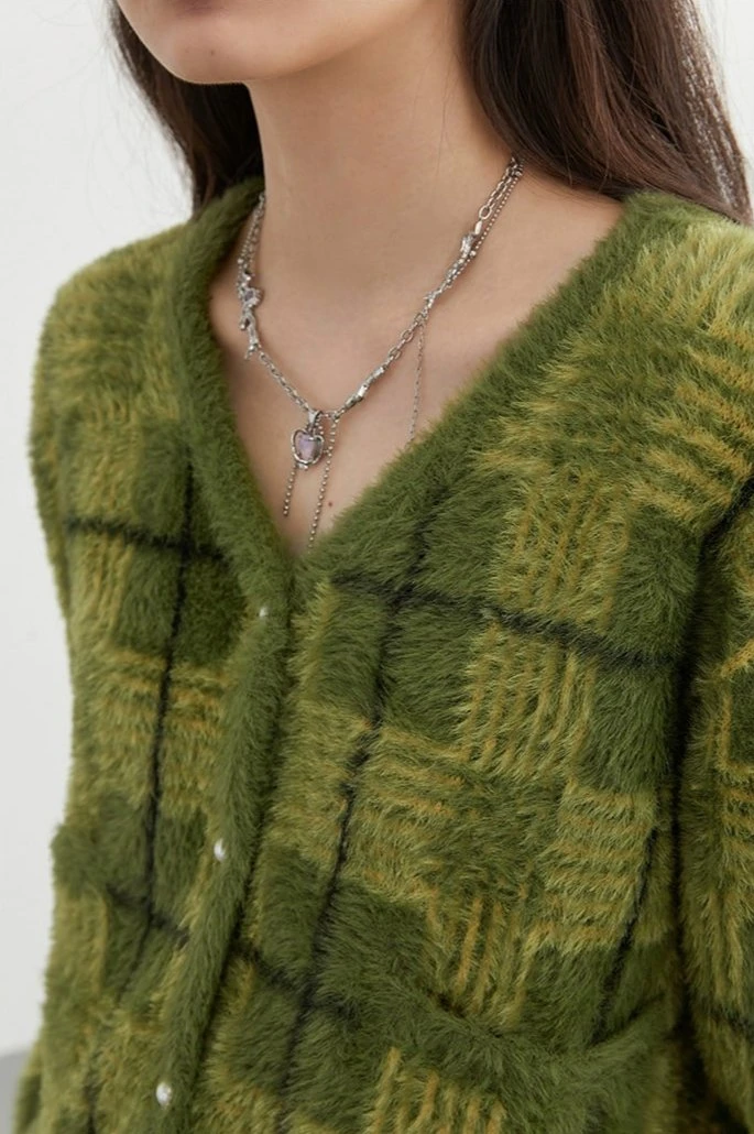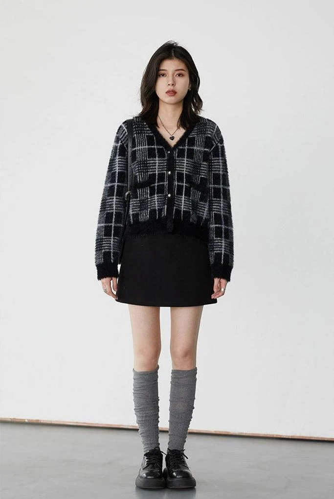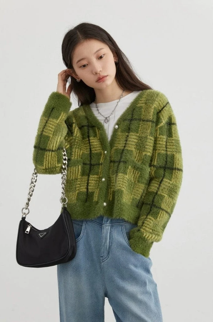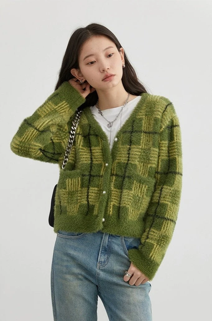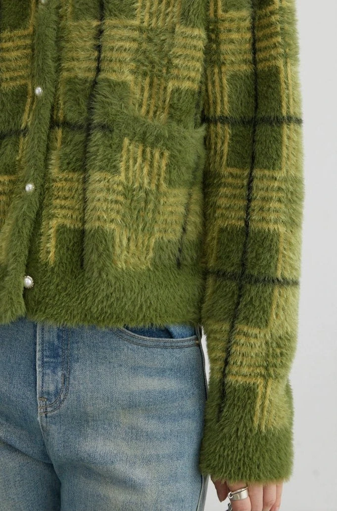 Crafted from soft, plush material that mimics the luxurious feel of mink, this cardigan offers both comfort and style. The classic plaid pattern and pearl button detailing provide a sophisticated yet easy-going look, while the conventional wool thickness ensures you stay cozy. With a casual V-neckline and long sleeves, it’s perfect for layering.