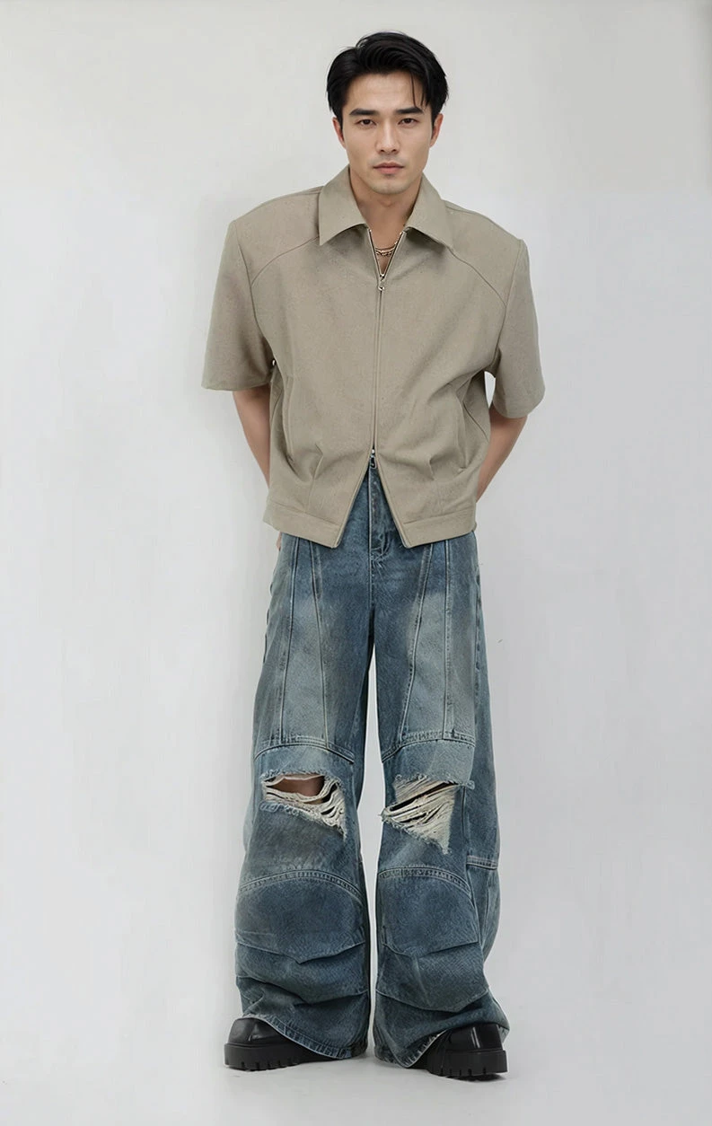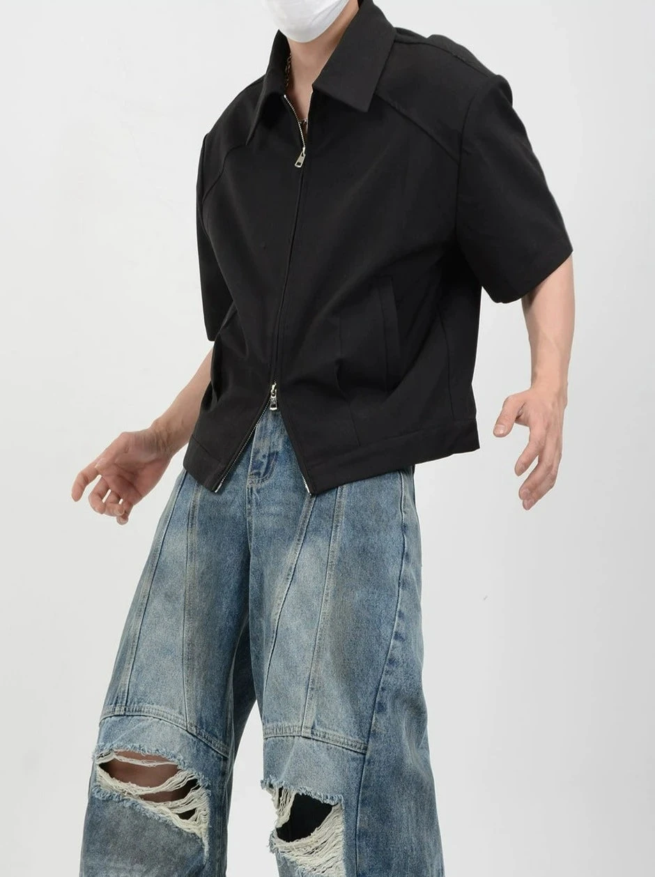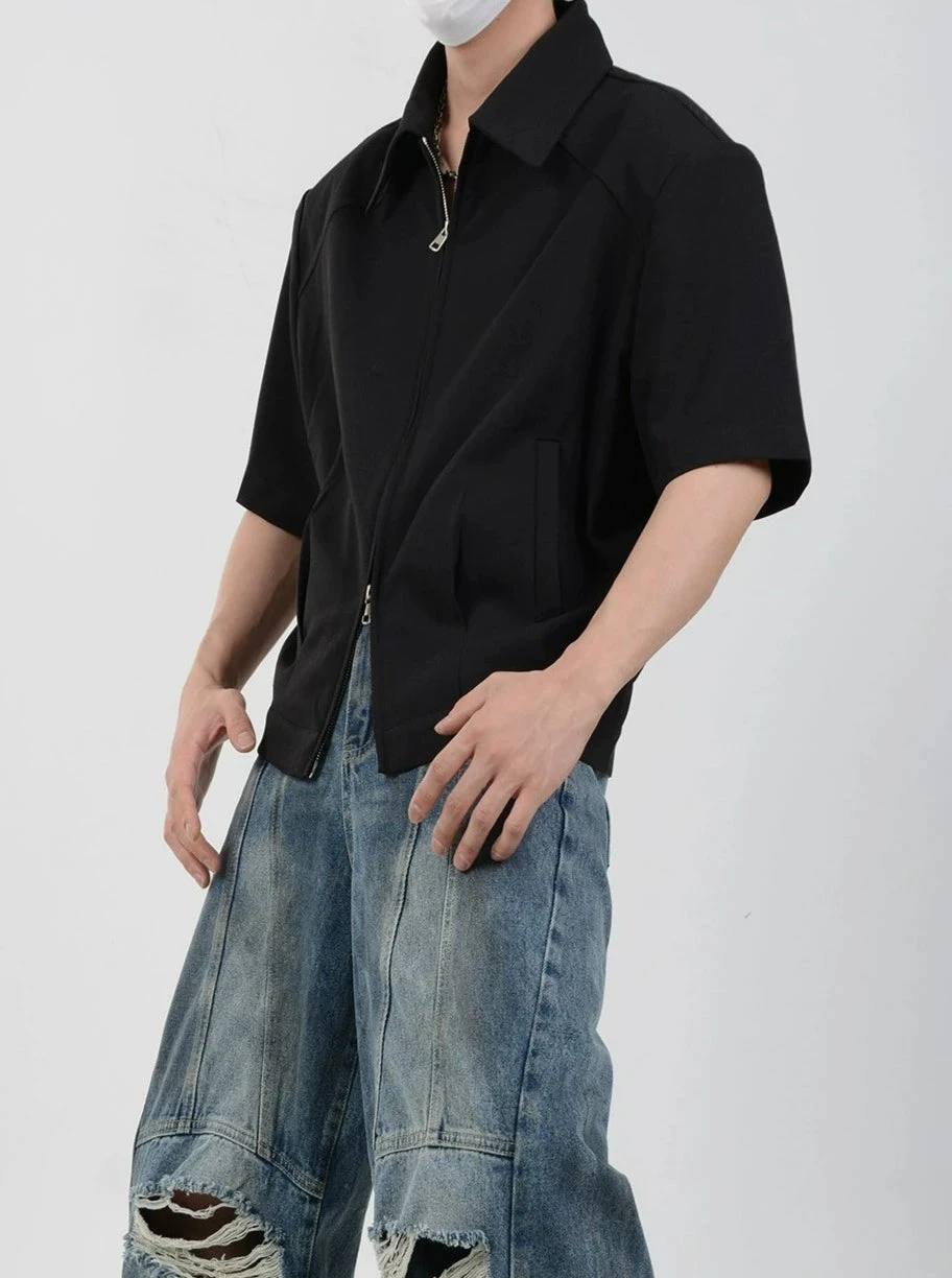 Meet the epitome of effortless style with our Half Sleeve Zip-Front Collared Shirt—a versatile staple for the modern man.