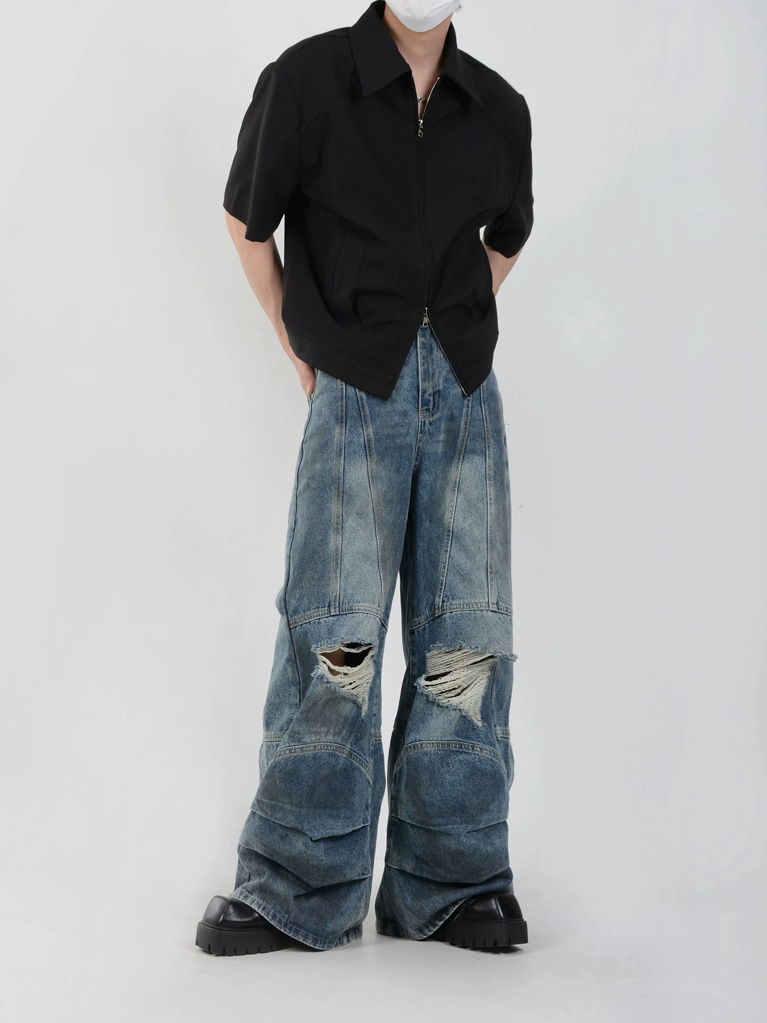 Crafted from a premium blend of 62% cotton and 38% polyester, this shirt offers a perfect balance of comfort and durability. The half-sleeve design, coupled with a sleek zip front and sharp collar, brings a refined edge to casual attire. At the heart of its design lies the craftsmanship balanced with a loose fit and short length, ensuring both freedom of movement and a nonchalant elegance.