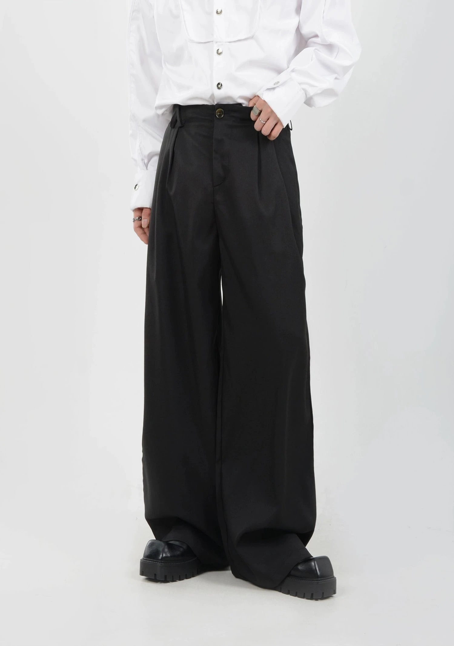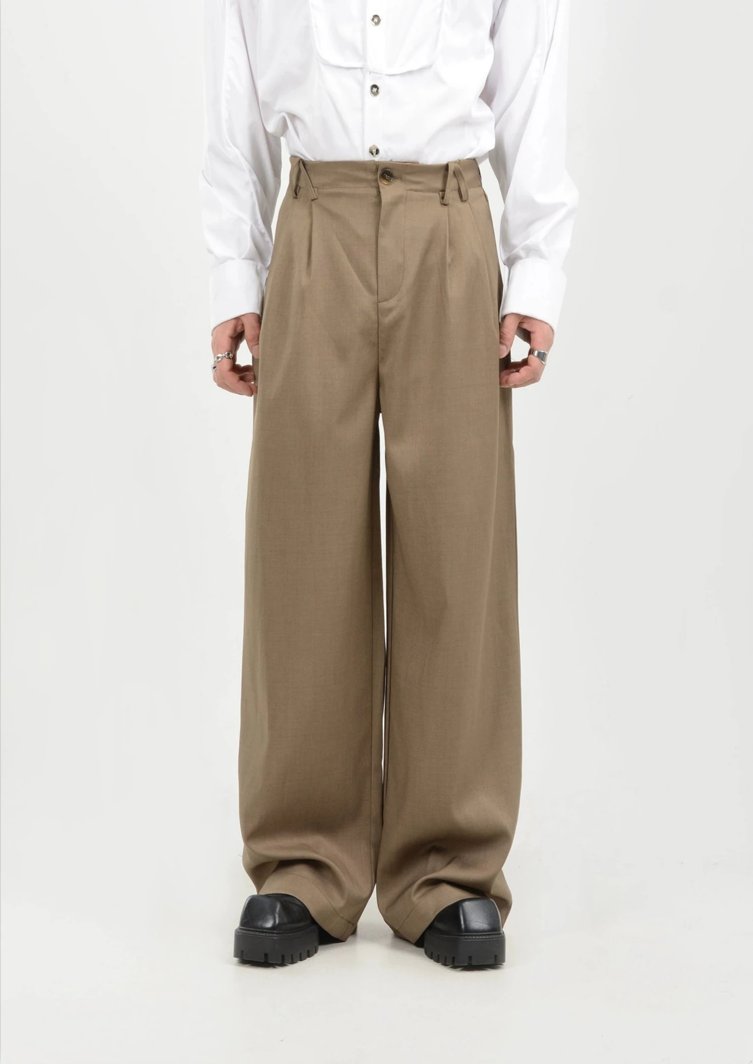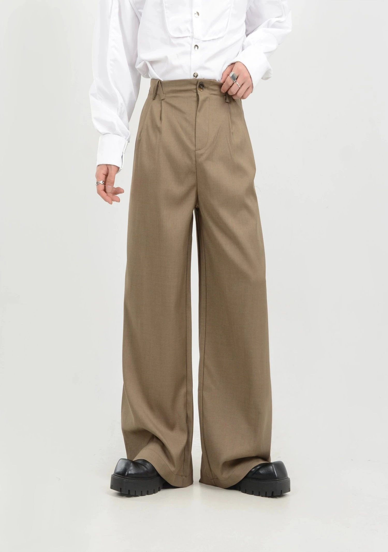 Elevate your everyday wardrobe with these high-waisted, wide-leg trousers that blend minimalism with effortless sophistication.