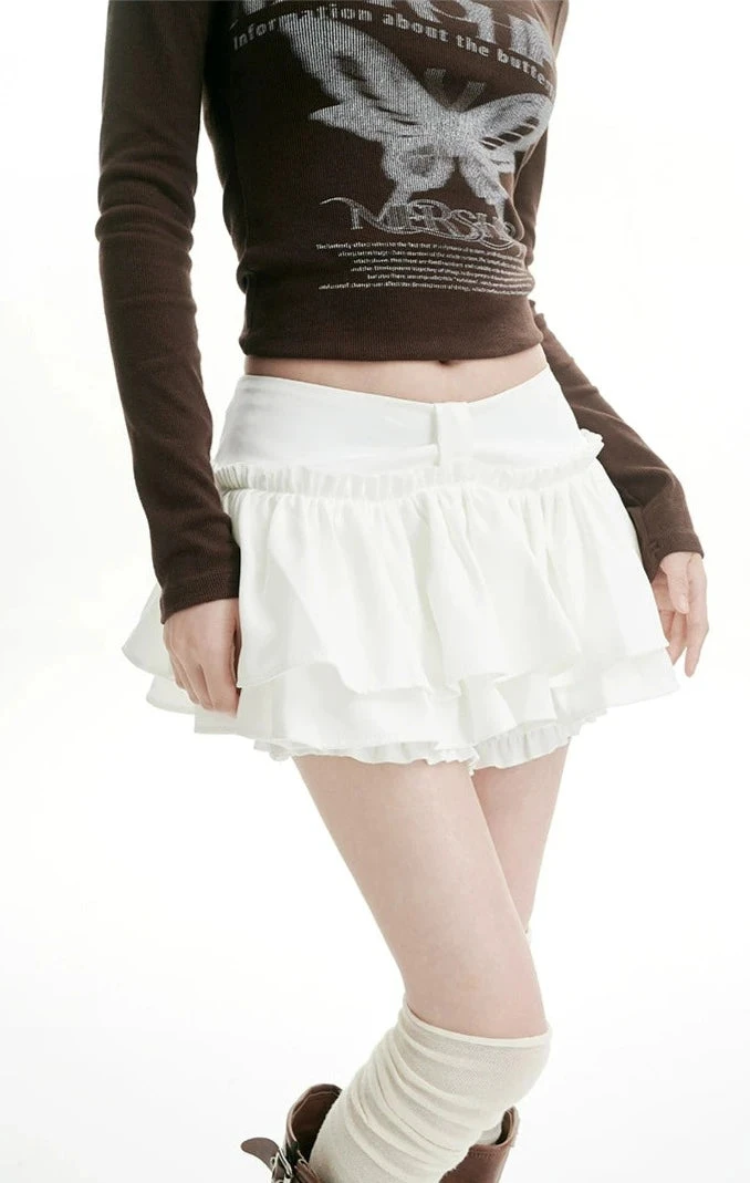 Make a statement with the flirtatious flair of our Layered Ruffle Waistband Mini Skirt, a delightful twist on a classic silhouette.
