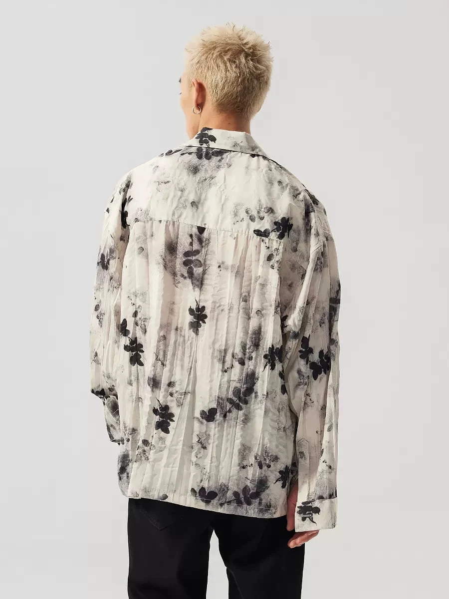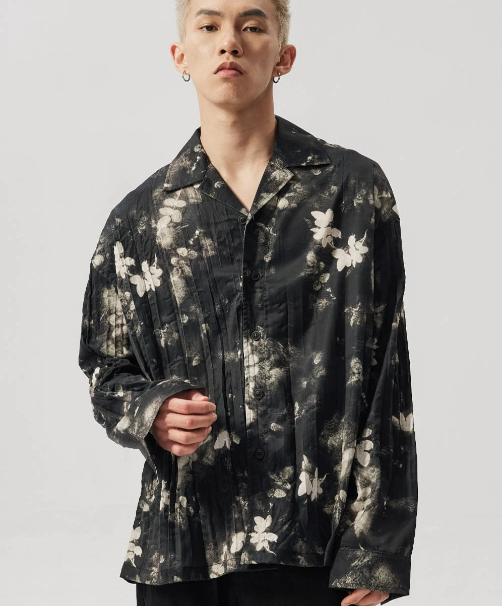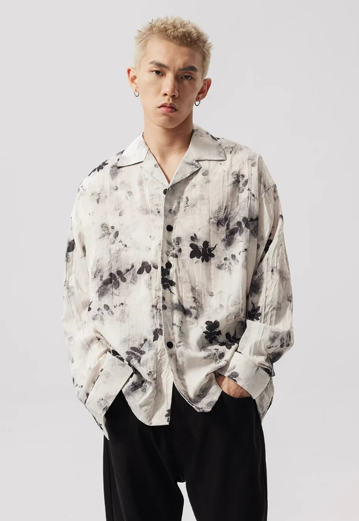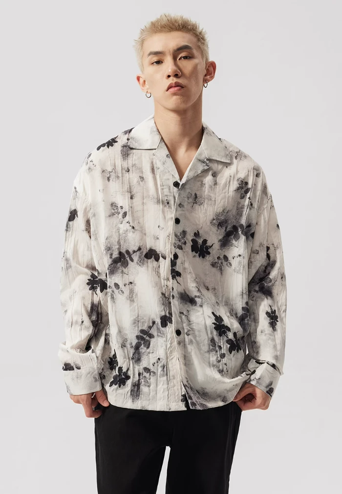 Infuse a touch of artistic flair into your wardrobe with the Leaves Print Long Sleeve Button-Up Shirt, a statement piece that’s as unique as it is versatile.