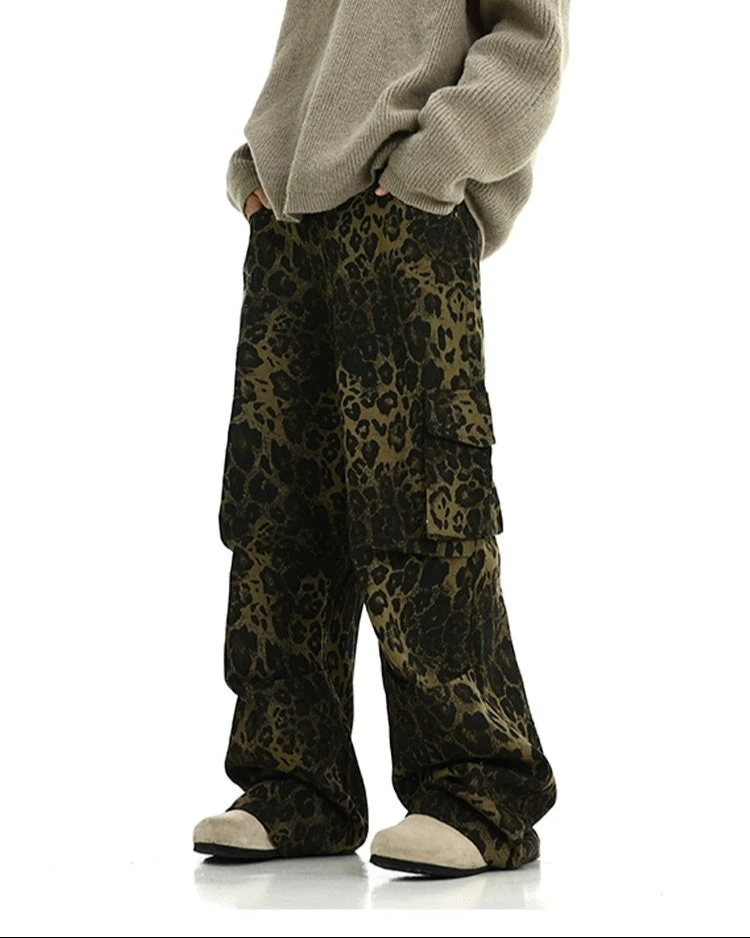 Unleash your wild side with these Leopard Print Cargo Pocketed Wide Leg Pants, crafted for an effortlessly cool vibe. Featuring a bold leopard pattern and practical cargo pockets, they blend edge with utility. Ideal for any season, these pants are the perfect fusion of standout style and everyday comfort.