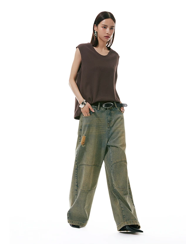 The Minimal Distressed Wide Leg Sandblast Jeans are the ideal choice for a casual look. The sandblast gives the jeans a vintage-inspired look and the wide leg construction delivers a comfortable fit. Whether you pair them with a tank top or a blouse, you’ll have a stylish ensemble for any occasion.