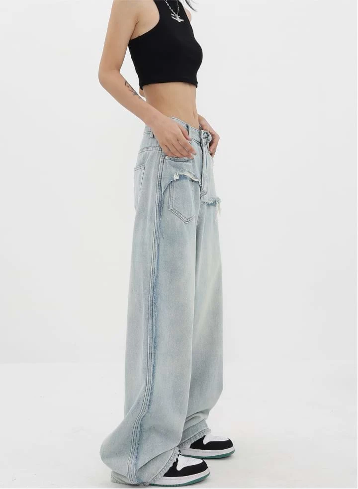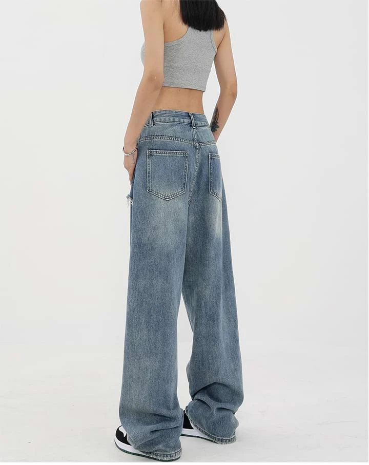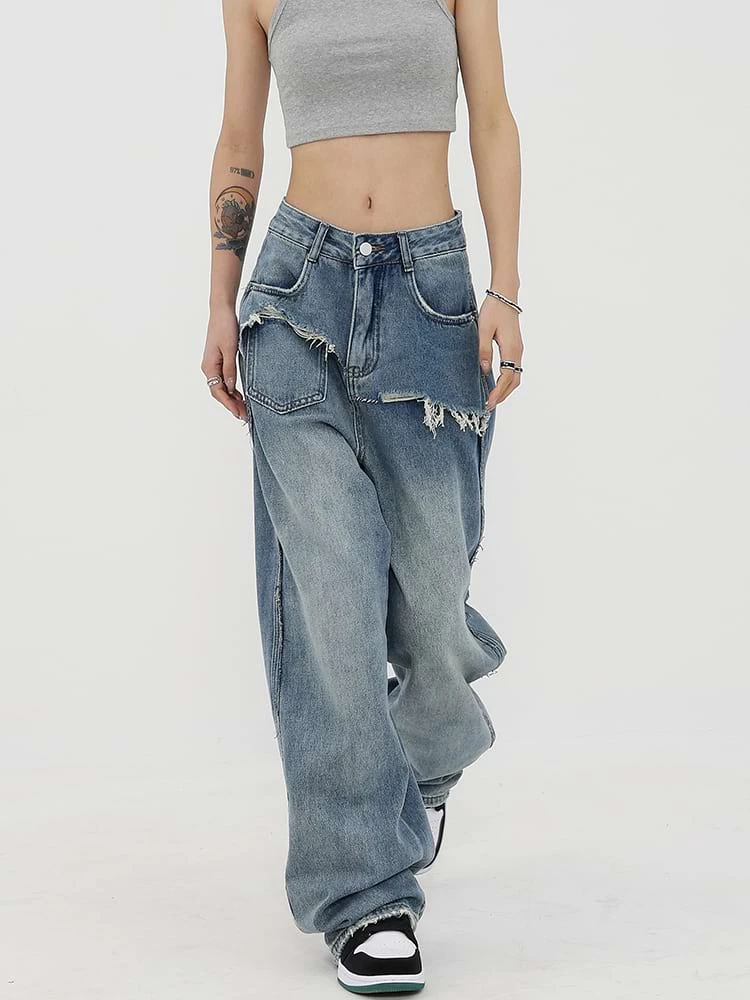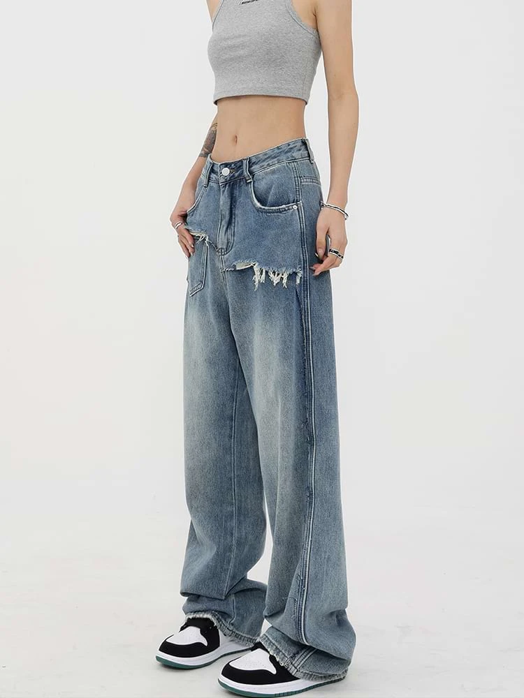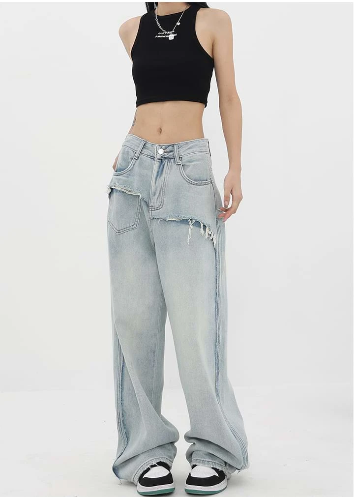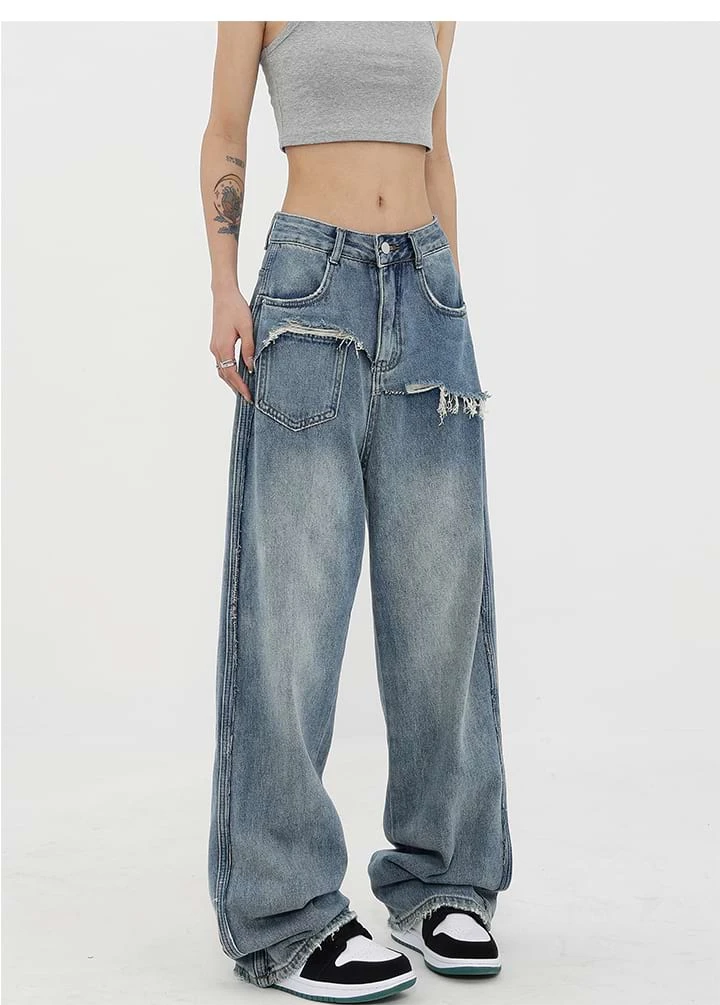 Shop nightcity for the perfect distressed pair of jeans. Our Mock Two-Piece Faded Distressed Jeans were made for the modern-day fashionista. Featuring a mid-rise waist and wide leg, these jeans are the perfect companion for any casual summer look. Dress them up with heels and a chic blouse, or down with sneakers and a crop top. Get the perfect blend of fashion and comfort with these jeans — add them to your wardrobe today!