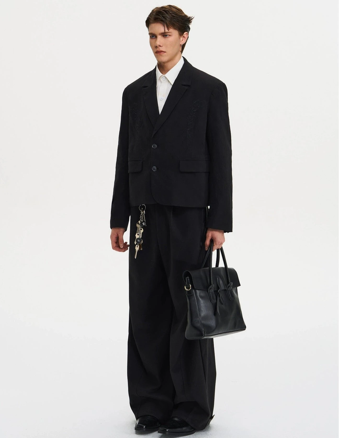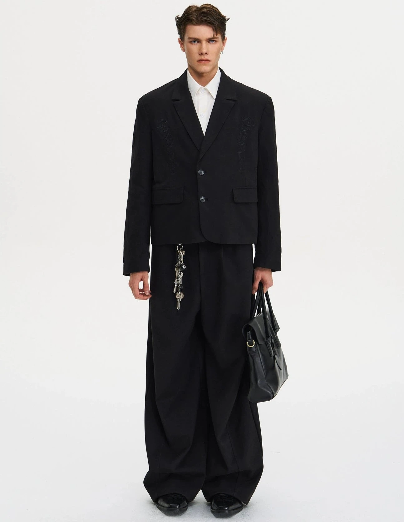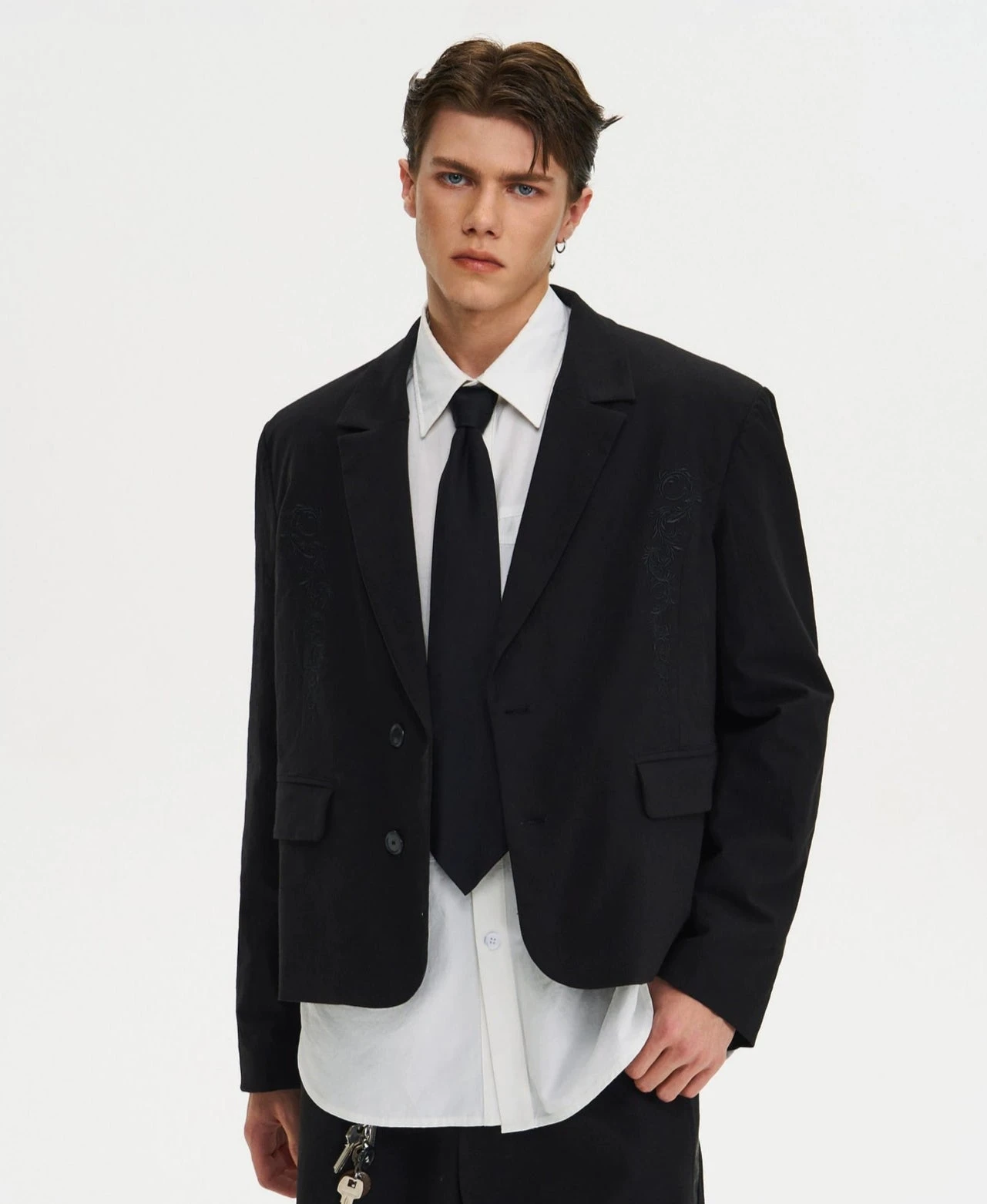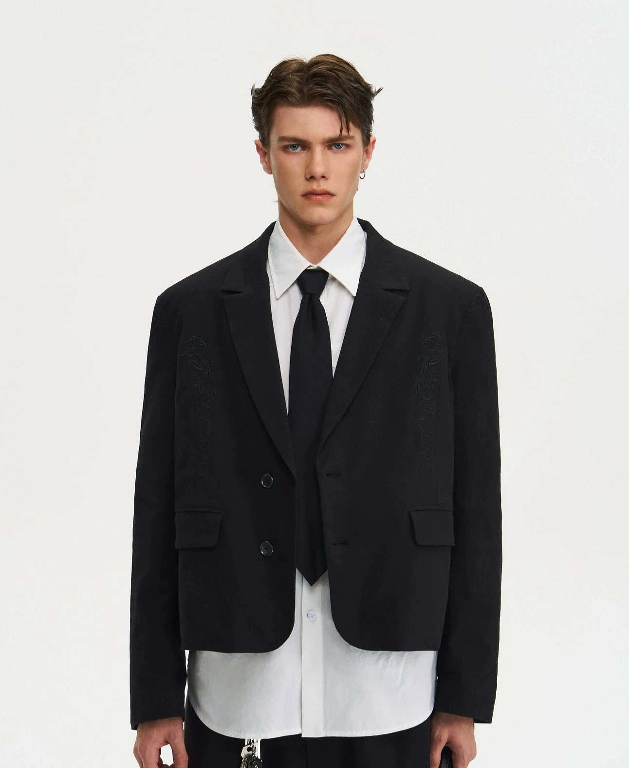 A clean-cut silhouette with unexpected detail, this Notched Lapel Mid Crop Blazer features subtle embroidery that sets it apart without trying too hard.