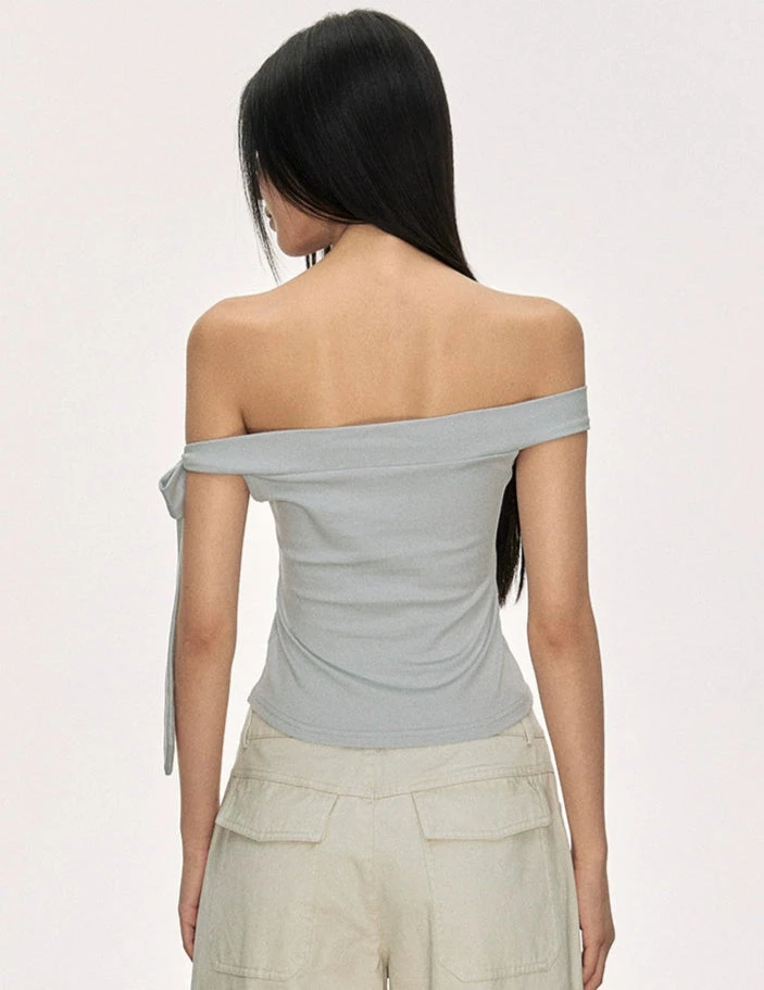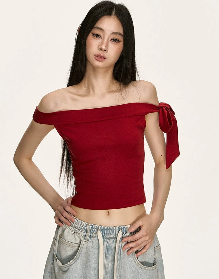 Clean lines meet standout detail in this off-shoulder ribbed knit top with a side bow accent.