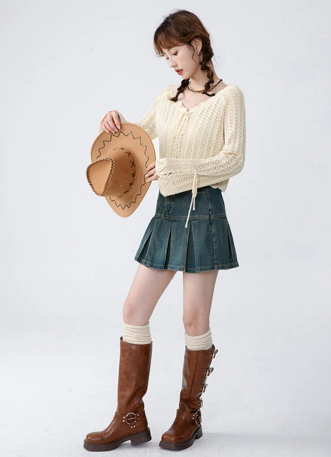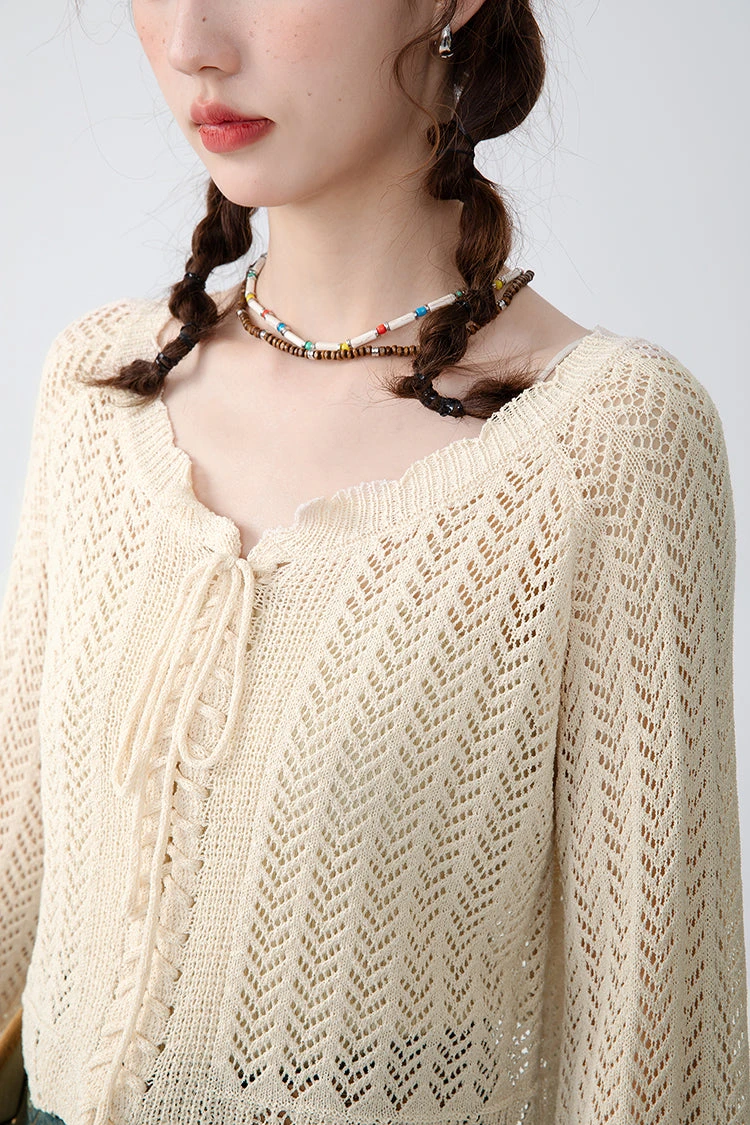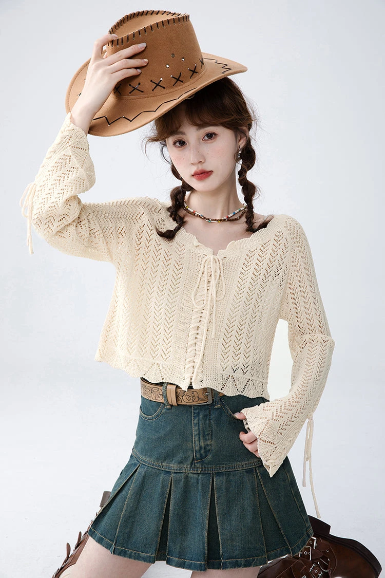 This Open Knit Cropped Cardigan with Drawstrings is perfect for combining comfort and style. Its relaxed fit and drawstrings allow you to adjust to your desired look, making it easy to layer over any top or pair with a skirt or jeans. Creating a casual look with ease and comfort.