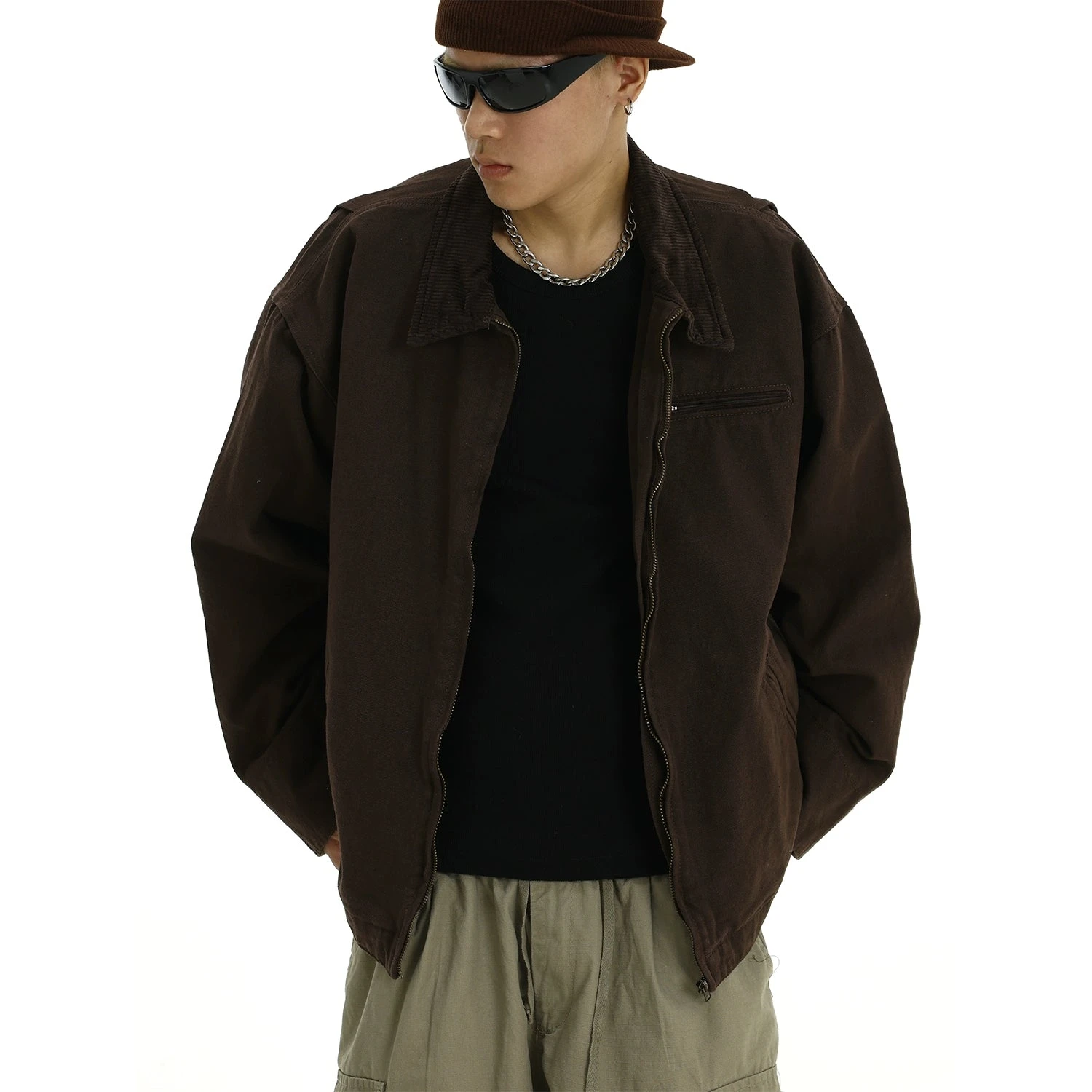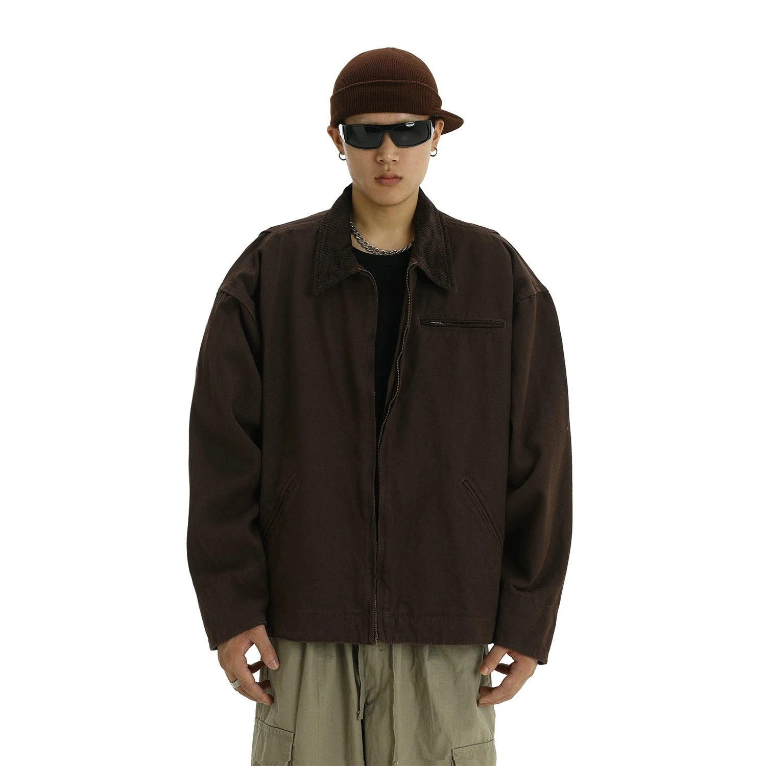 Embrace timeless American style with the Oversized Corduroy Zip-Up Collared Jacket – a perfect fusion of retro vibes and contemporary design.