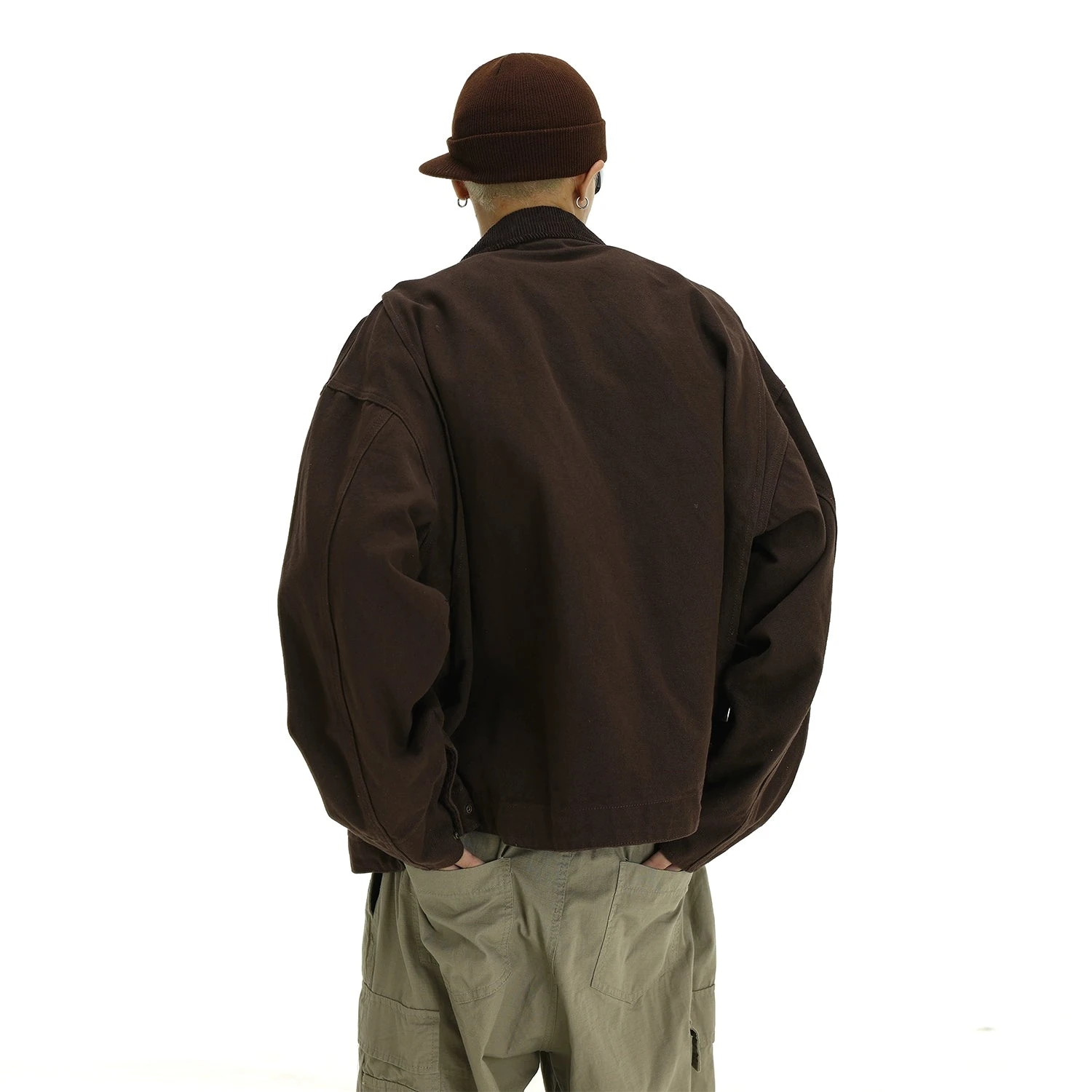 Crafted from 100% breathable cotton, this jacket features a loose-fit cut that adds an effortlessly cool layer to any outfit. Its solid color enhances the corduroy texture, while a convenient zip closure and side sewing pockets meld functionality with sleek design. The collar adds a structured element to the relaxed silhouette, ideal for the transitional seasons.