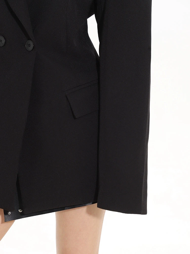Pair this versatile outerwear with slim trousers for a coordinated ensemble or drape over a sleek dress for an instant style elevation. Perfect for transitioning from a day at work to an evening out, the blazer’s design merges effortless style with comfort, crafted for those who value an amalgamation of function and fashion.