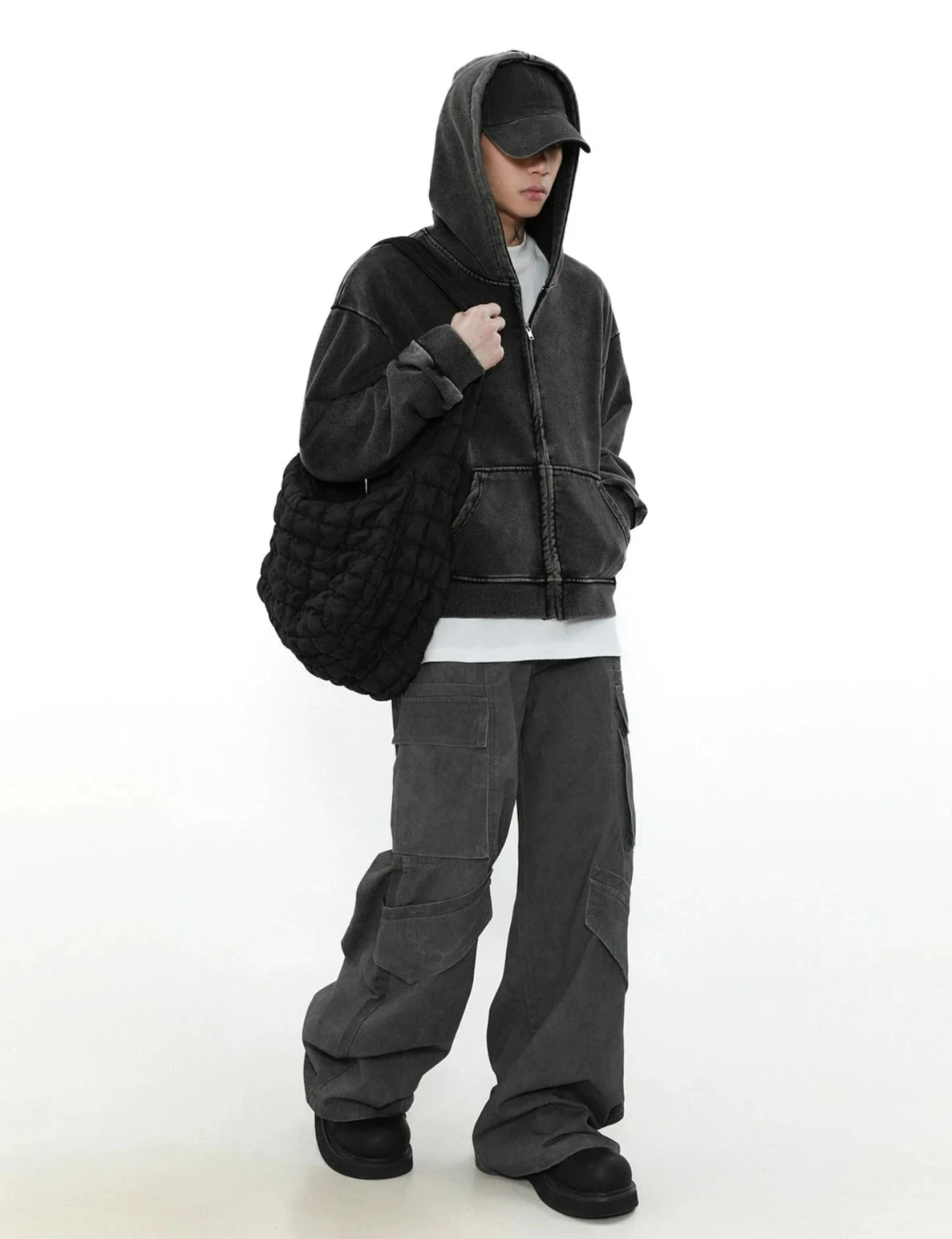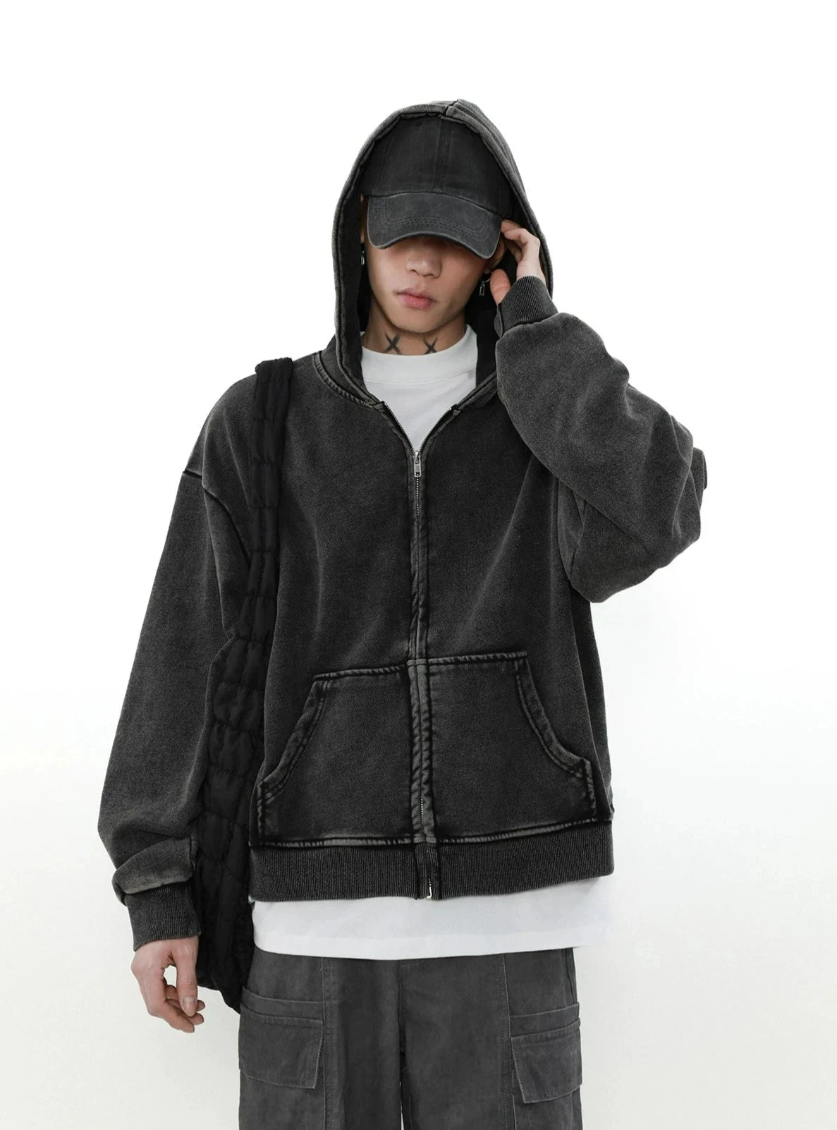 Embrace the laid-back aesthetic with our Oversized Faded Mid-Crop Boxy Zip-Up Hoodie, designed for the modern minimalist.