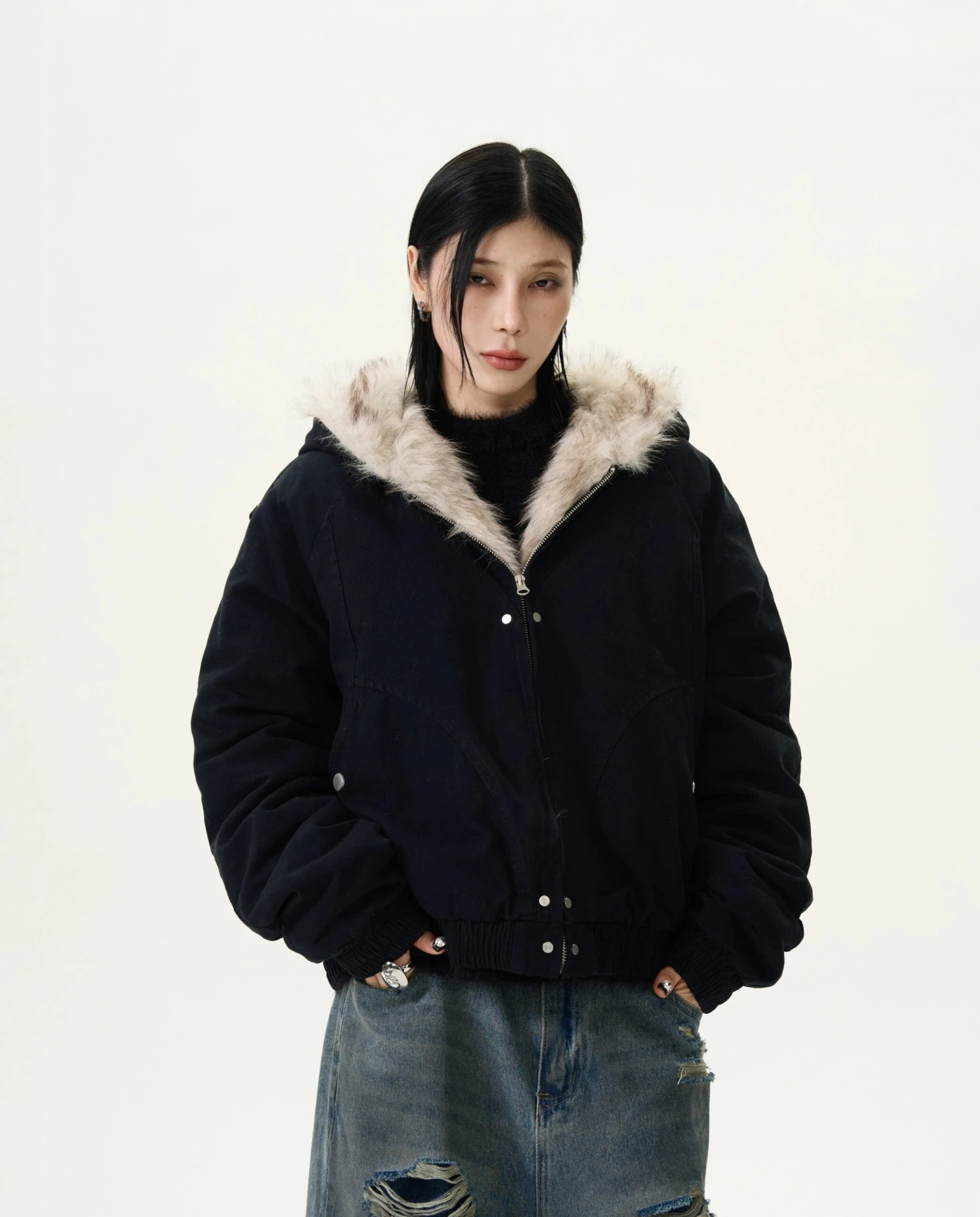 Discover the ultimate blend of comfort and style with our Oversized Faux Fur Lined Zip Jacket, a luxurious addition to your outerwear collection.