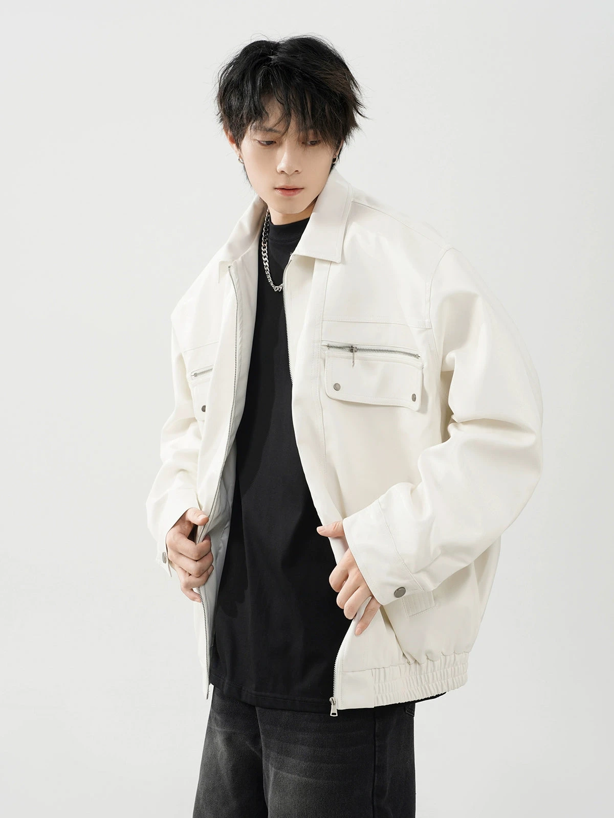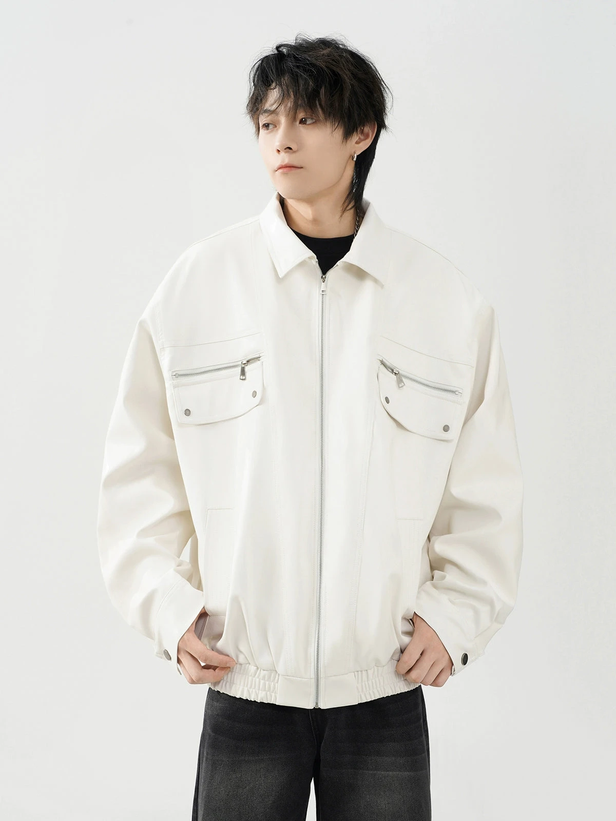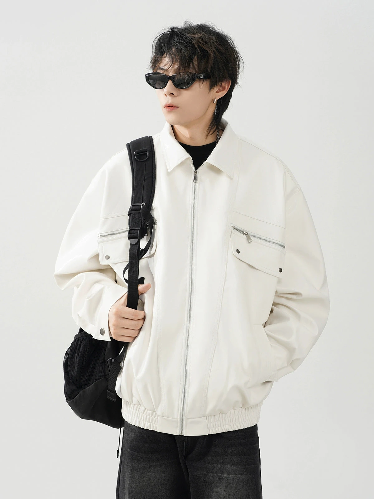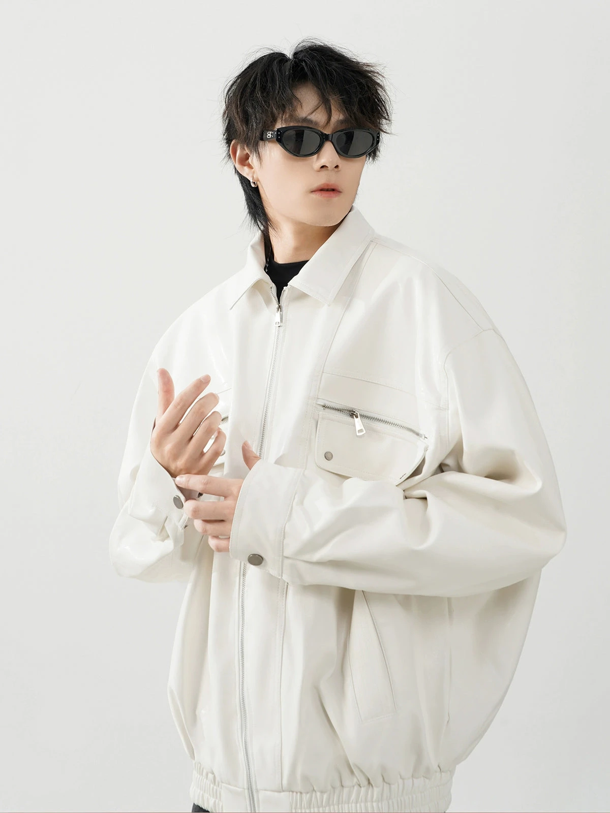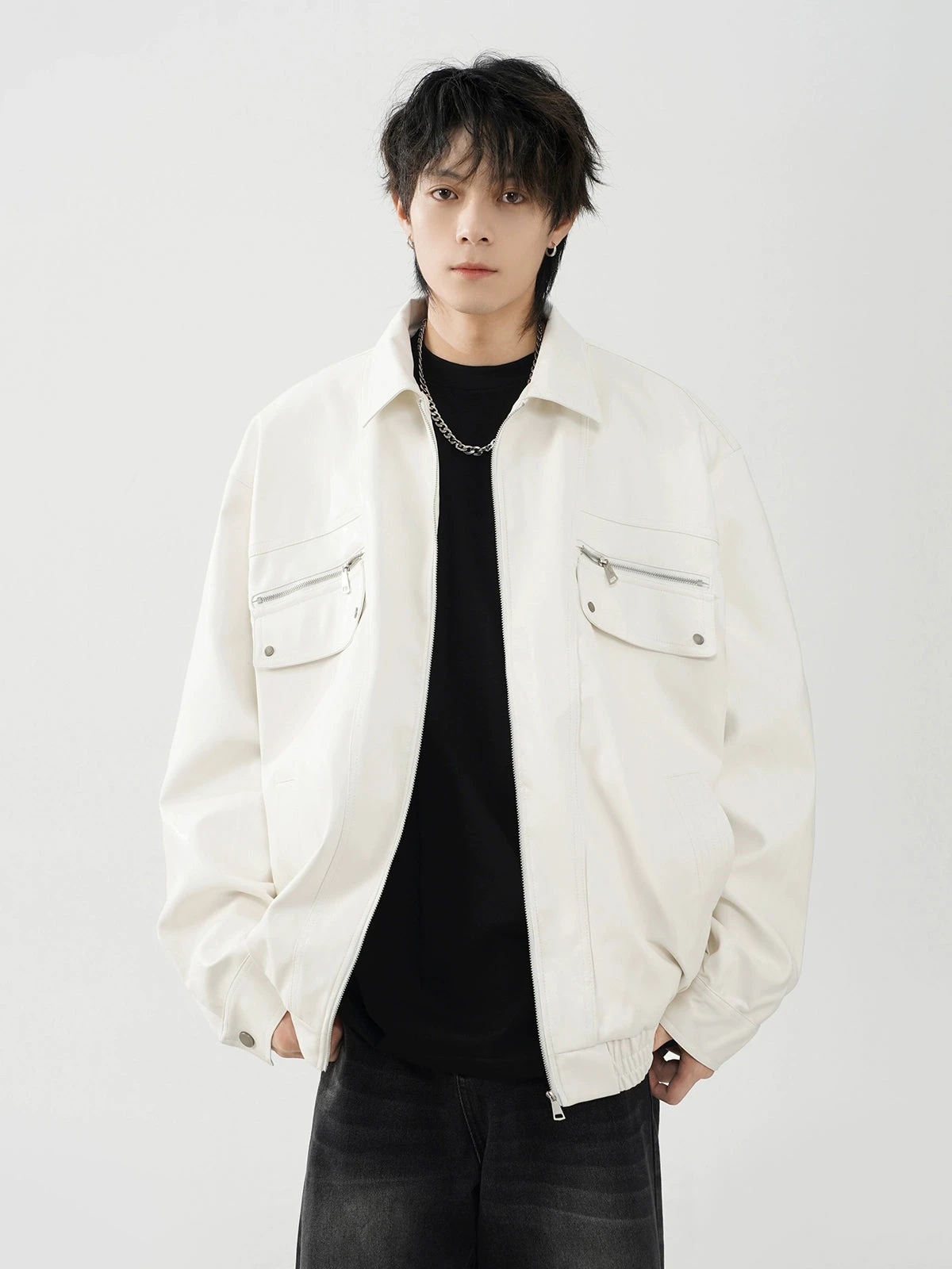 This meticulously crafted jacket features a durable polyurethane outer reminiscent of luxe leather, ensuring a striking appearance without compromising on longevity. The conventional sleeve style and lapel collar add a traditional touch to the otherwise modern oversized fit, making it a statement piece for your wardrobe. Integrated zip pockets offer both utility and style, elevating the jacket’s practicality.