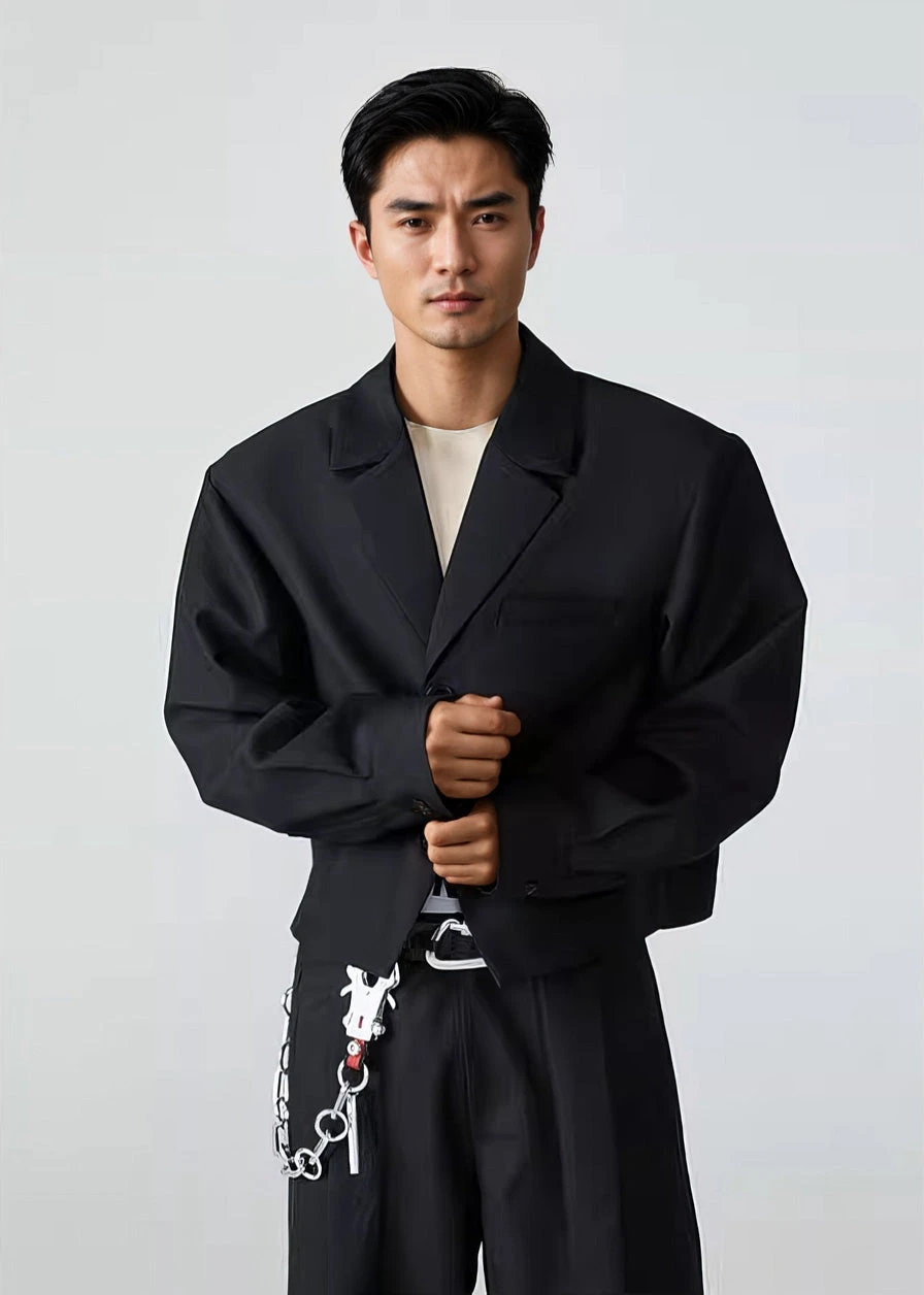 Strike a balance between nonchalant style and professional edge with our Oversized Mid-Crop Single-Button Notch Lapel Blazer. Expertly tailored with a modern mid-crop cut, this blazer boasts a notch lapel and a singular button closure that adds a subtle twist to a classic design.