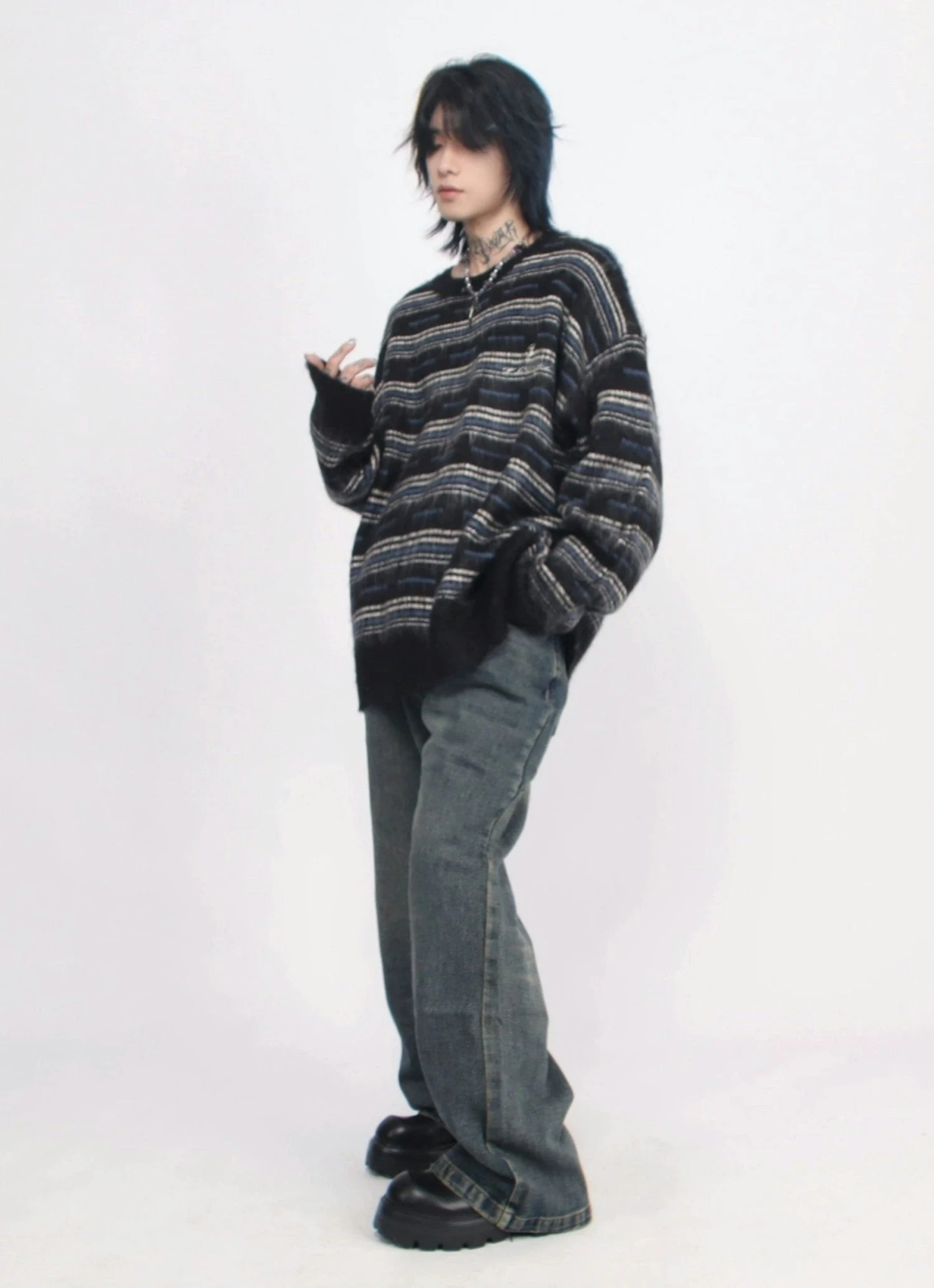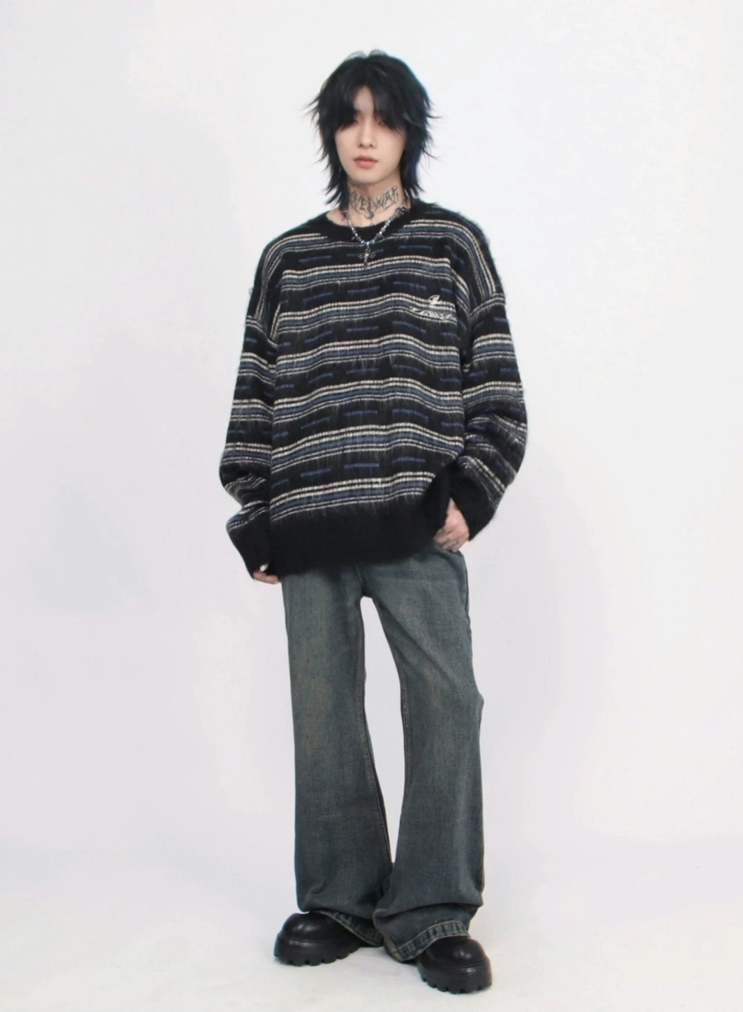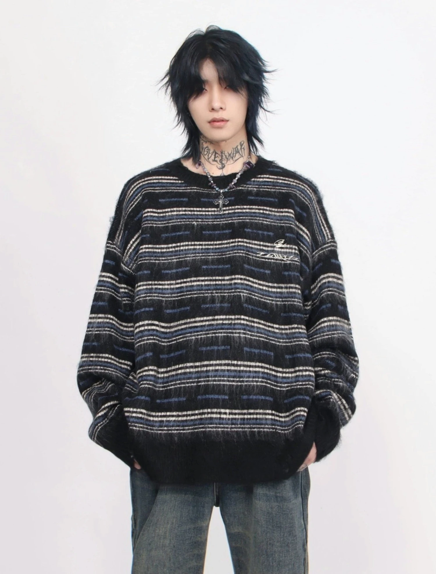 Embrace cozy comfort with style in our Oversized Multi-Striped Fuzzy Sweater, crafted for those who appreciate a relaxed yet sophisticated look.