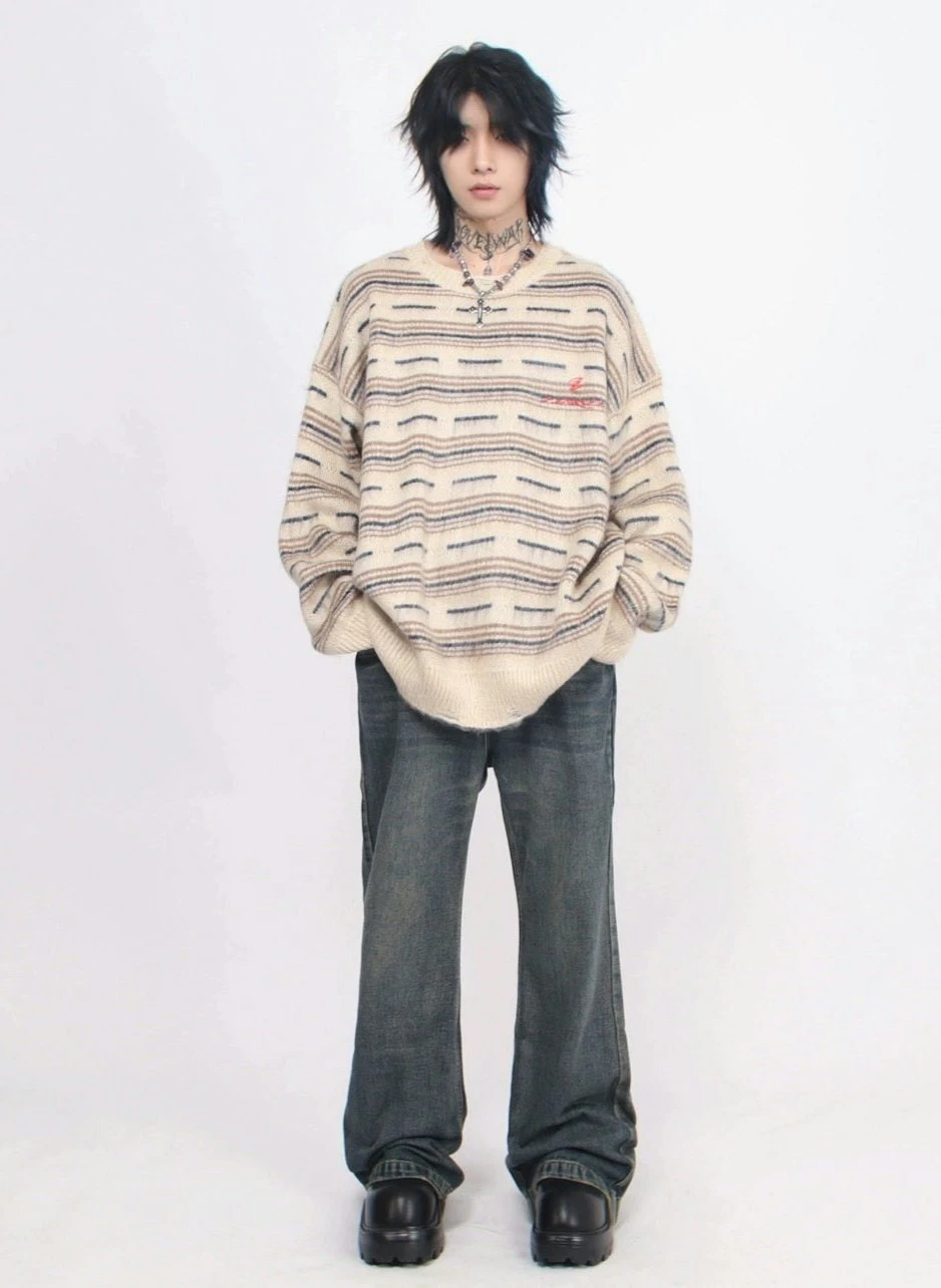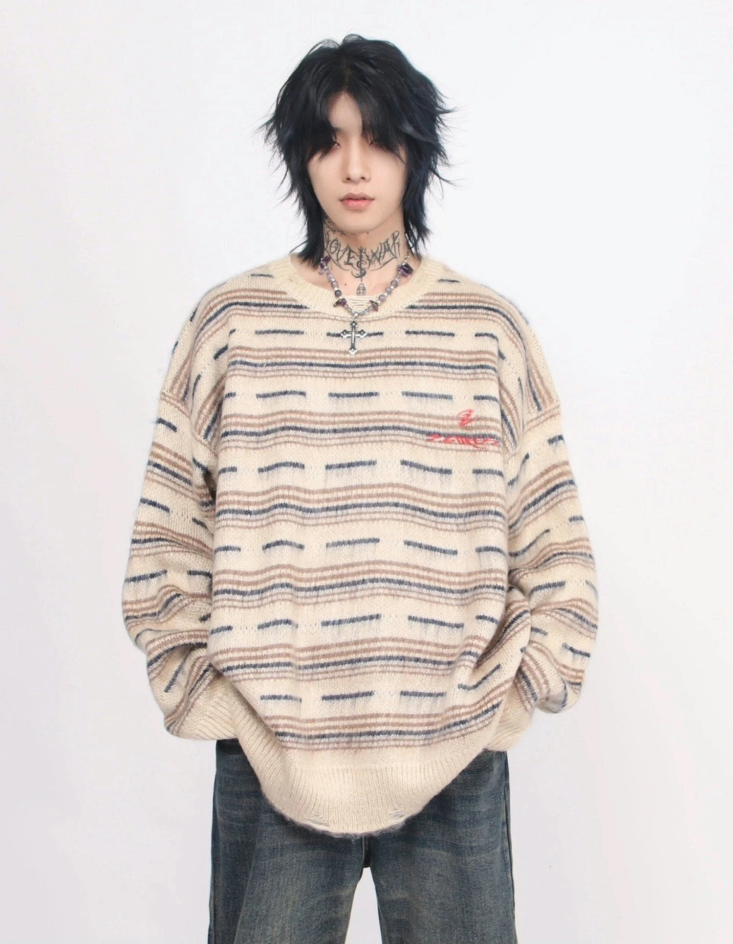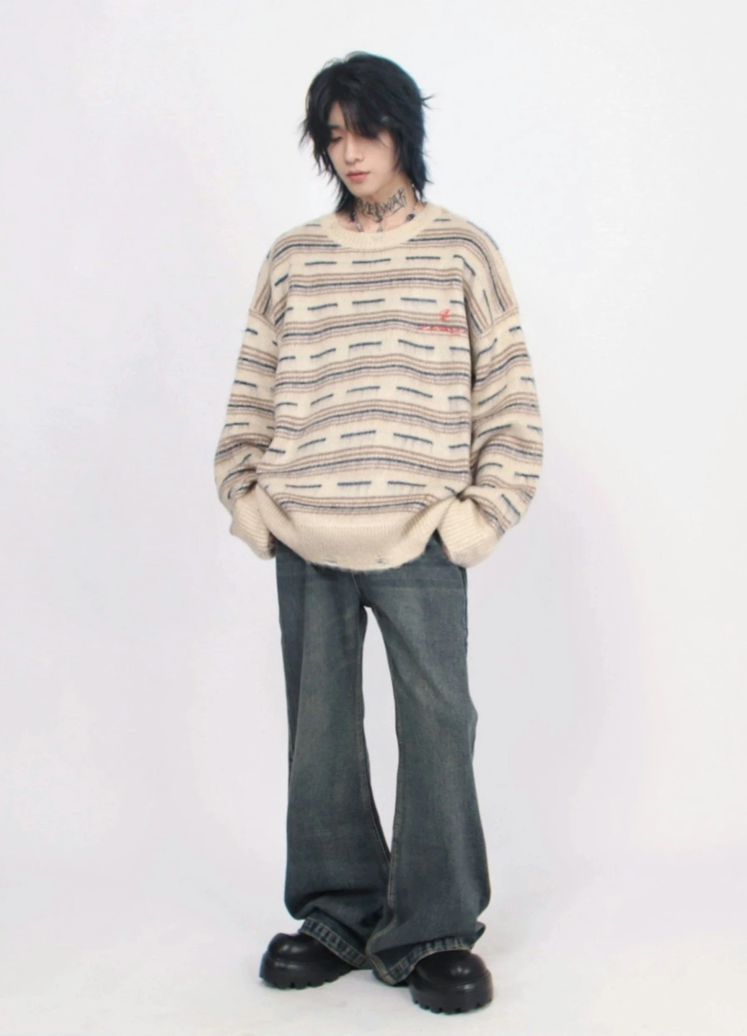 Embrace cozy comfort with style in our Oversized Multi-Striped Fuzzy Sweater, crafted for those who appreciate a relaxed yet sophisticated look.