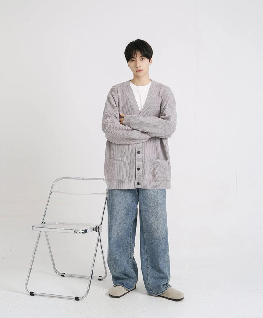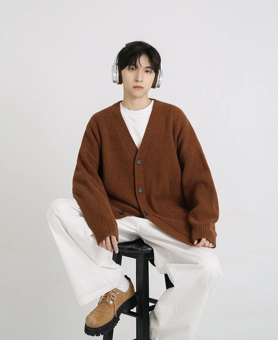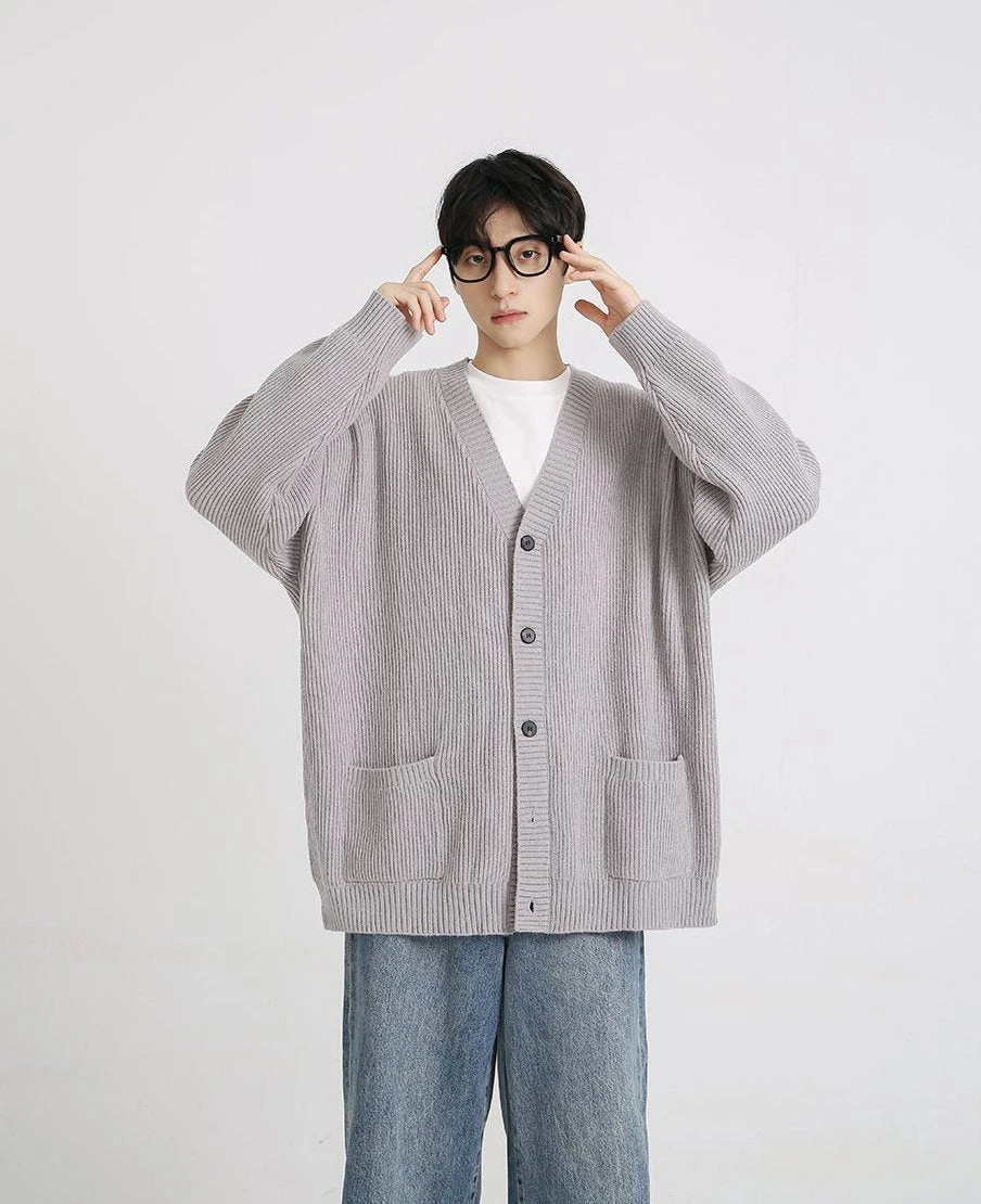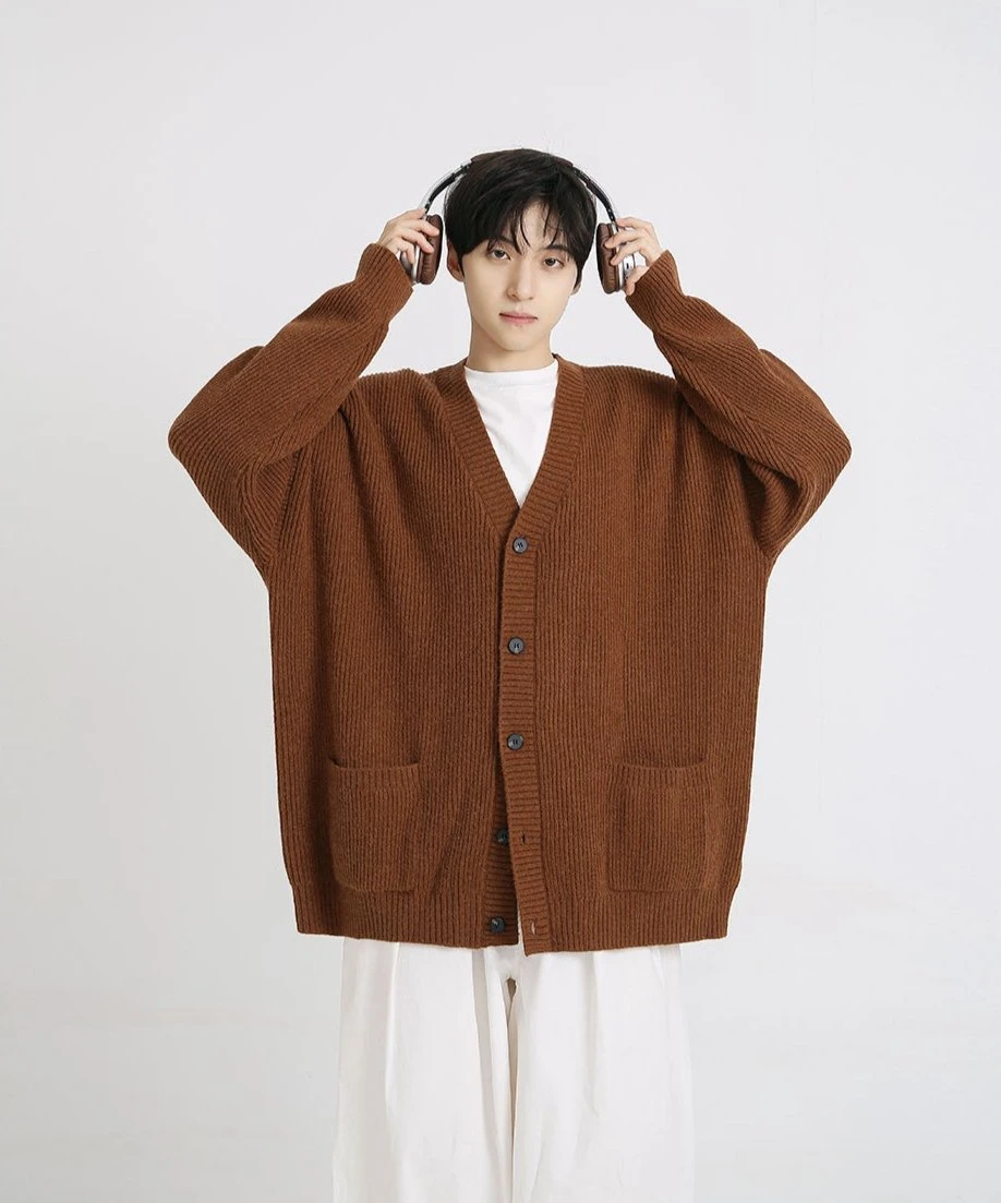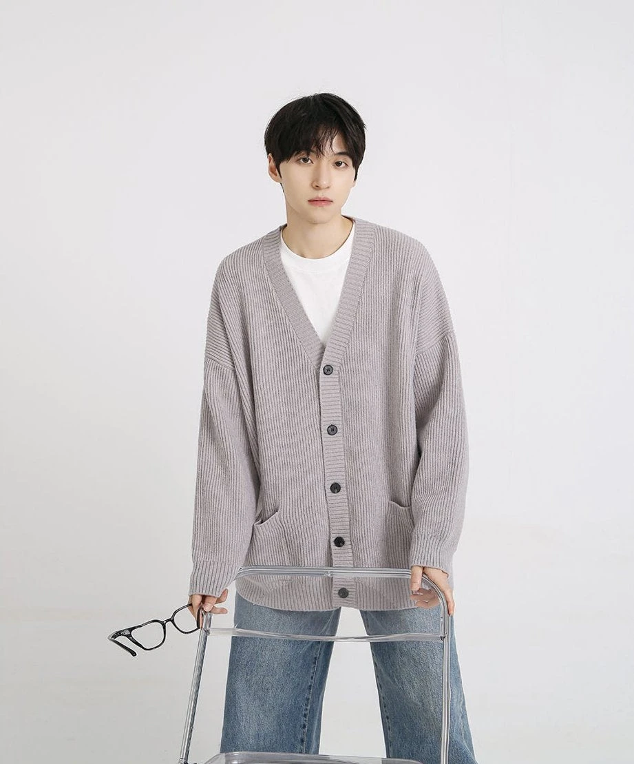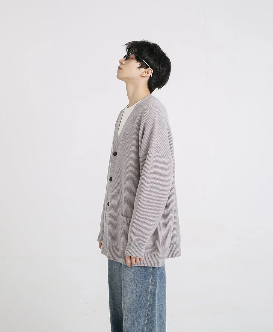 A testament to design simplicity, this generously cut garment offers plush comfort without compromising on sophistication. Meticulously crafted from a blend of premium fibers, the cardigan’s ribbed knit texture exudes a relaxed yet polished vibe, while the classic V-neck and button-front closure ensure effortless layering. The solid color palette complements the clean lines and adds versatility to this everyday essential.