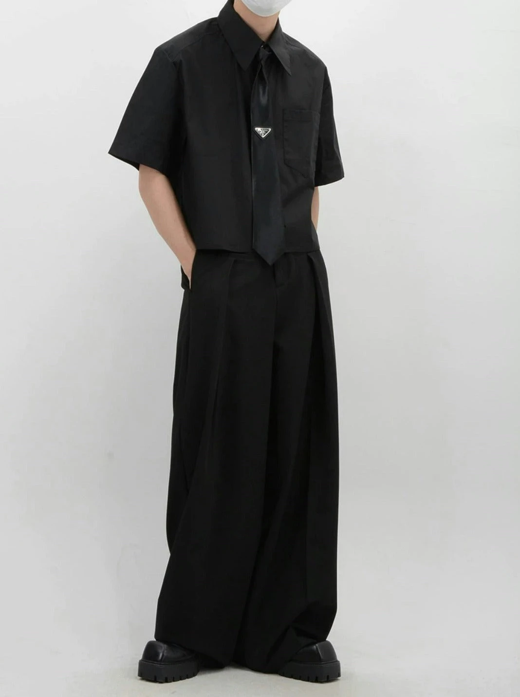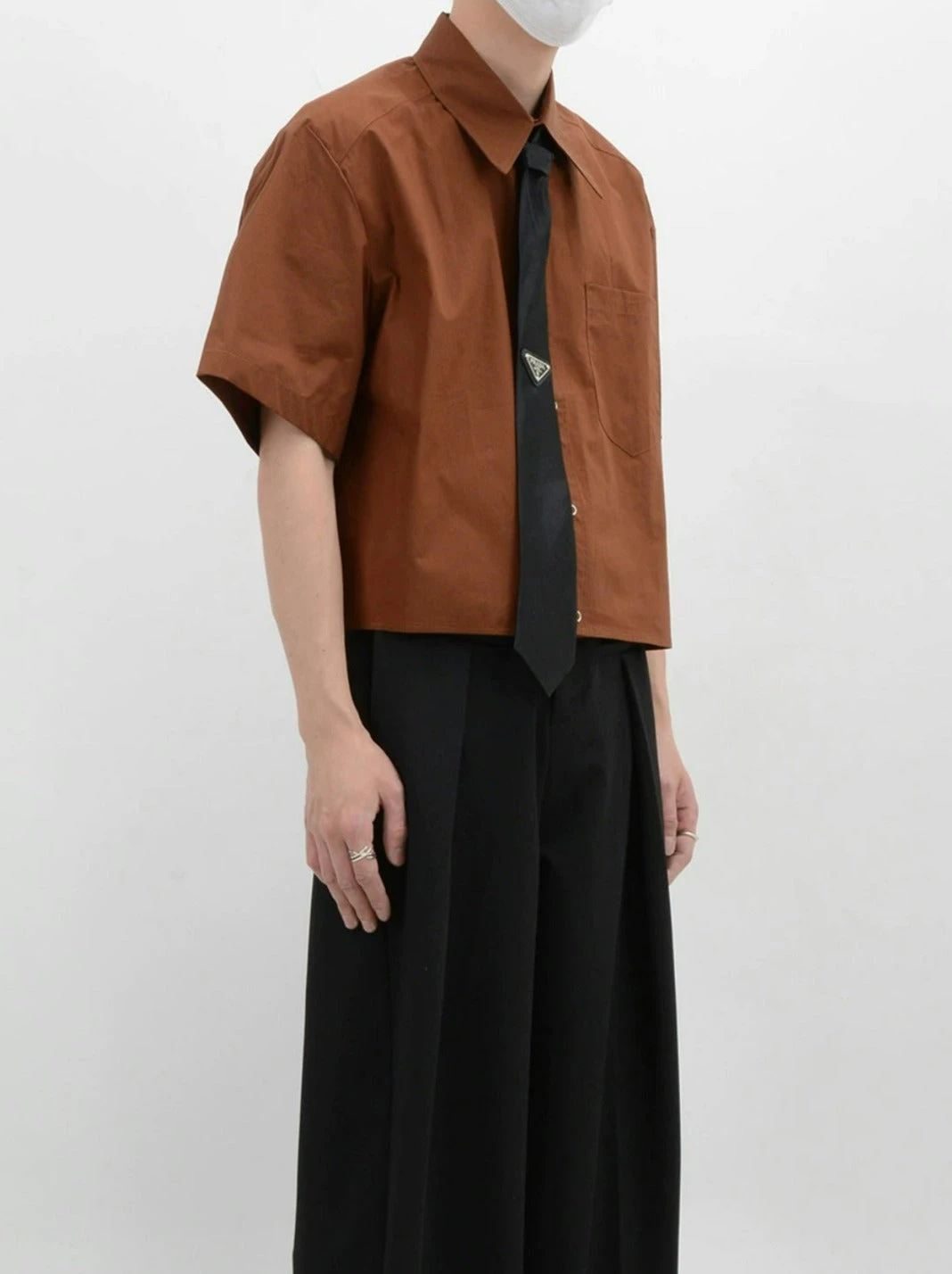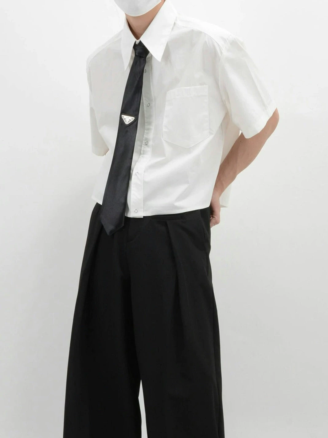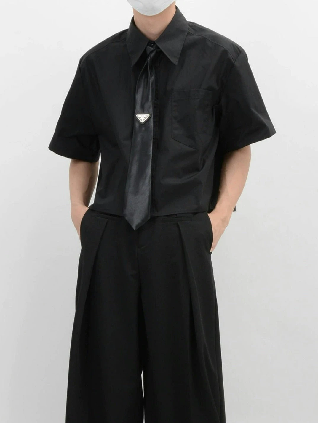 Crafted from soft, breathable fabric, this mid-crop shirt features a sharp sword collar and a functional chest pocket, adding a touch of polished detail. The solid color design melds simplicity with a modern edge, ensuring this piece pairs seamlessly with a range of styles and accessories.