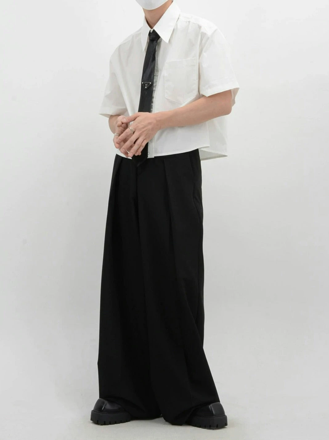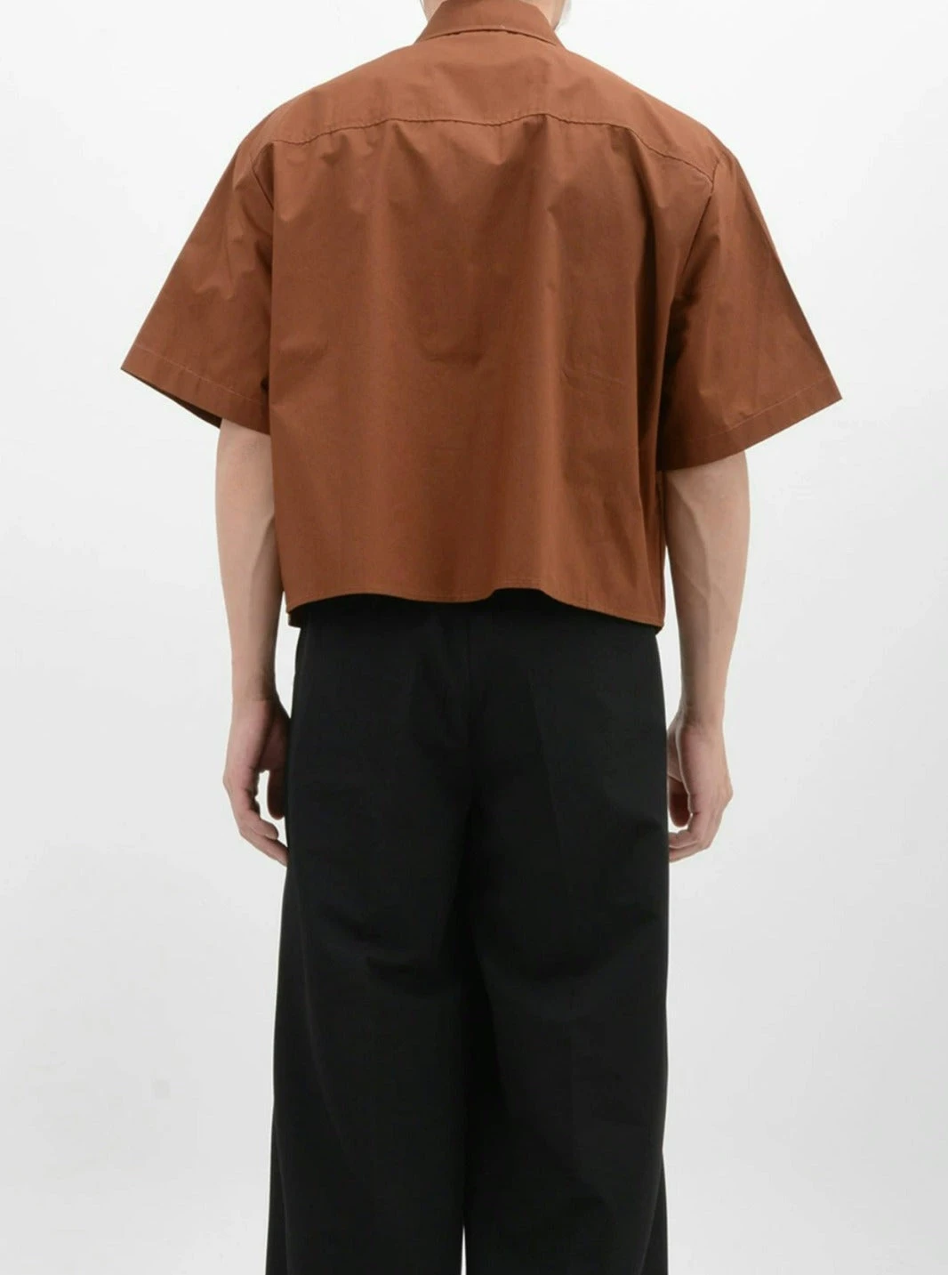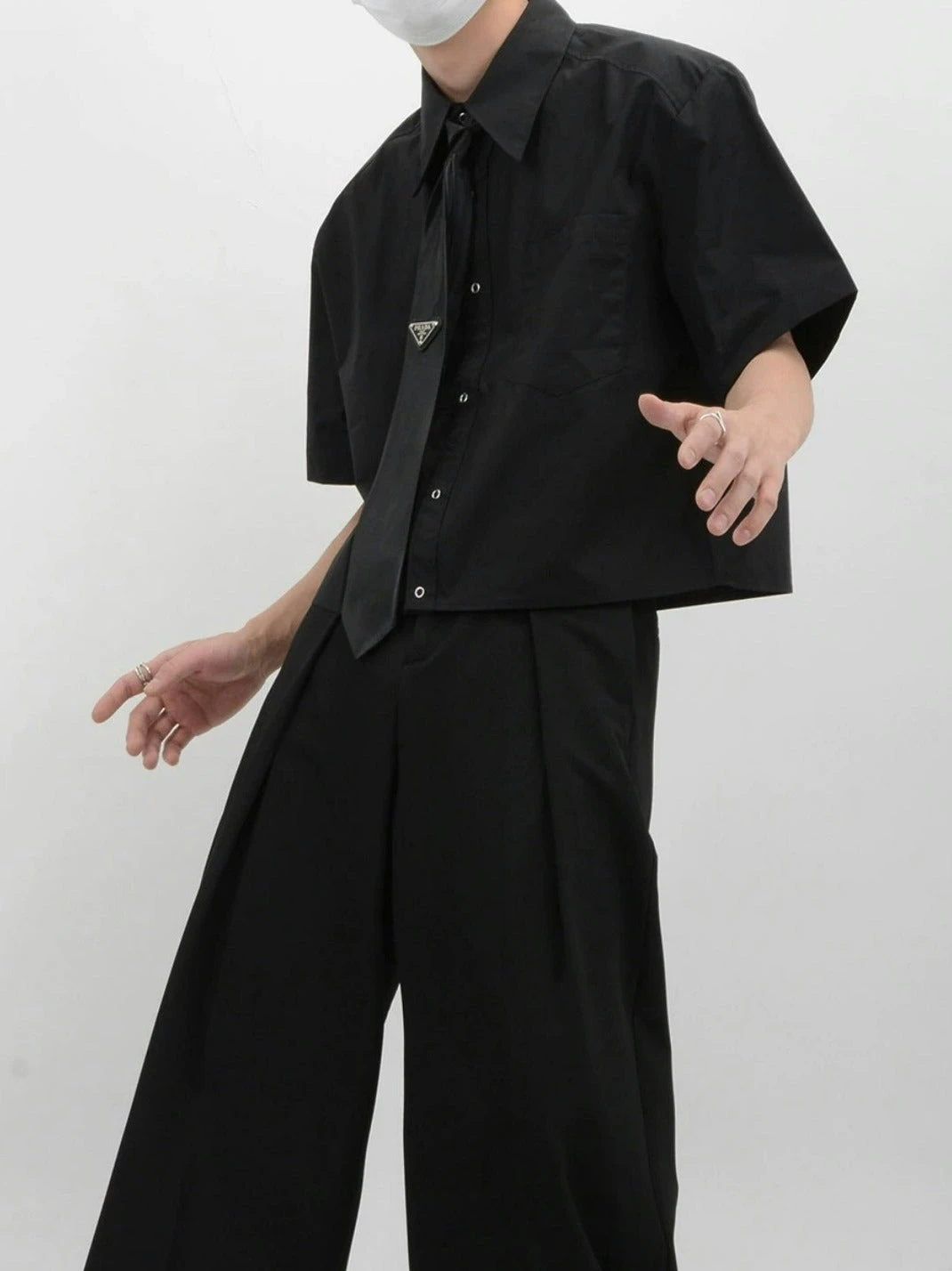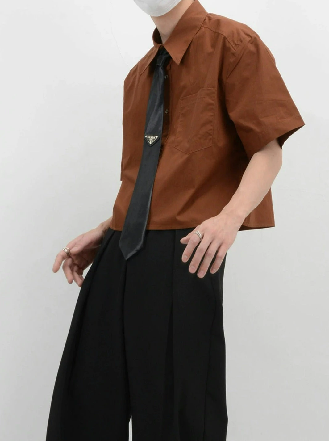 Crafted from soft, breathable fabric, this mid-crop shirt features a sharp sword collar and a functional chest pocket, adding a touch of polished detail. The solid color design melds simplicity with a modern edge, ensuring this piece pairs seamlessly with a range of styles and accessories.
