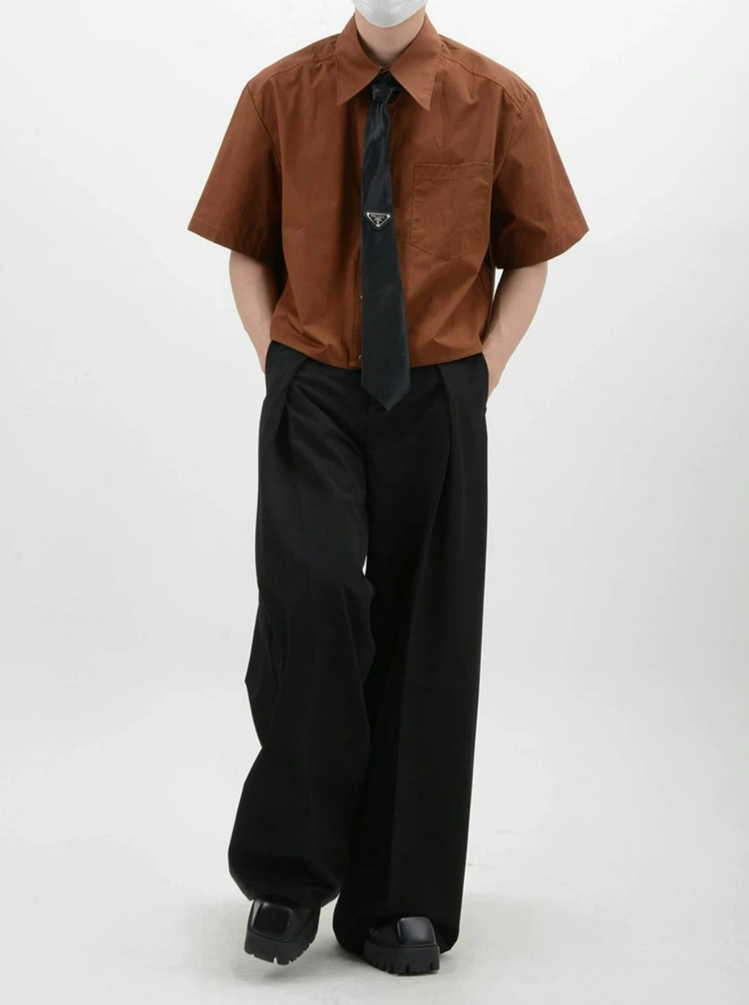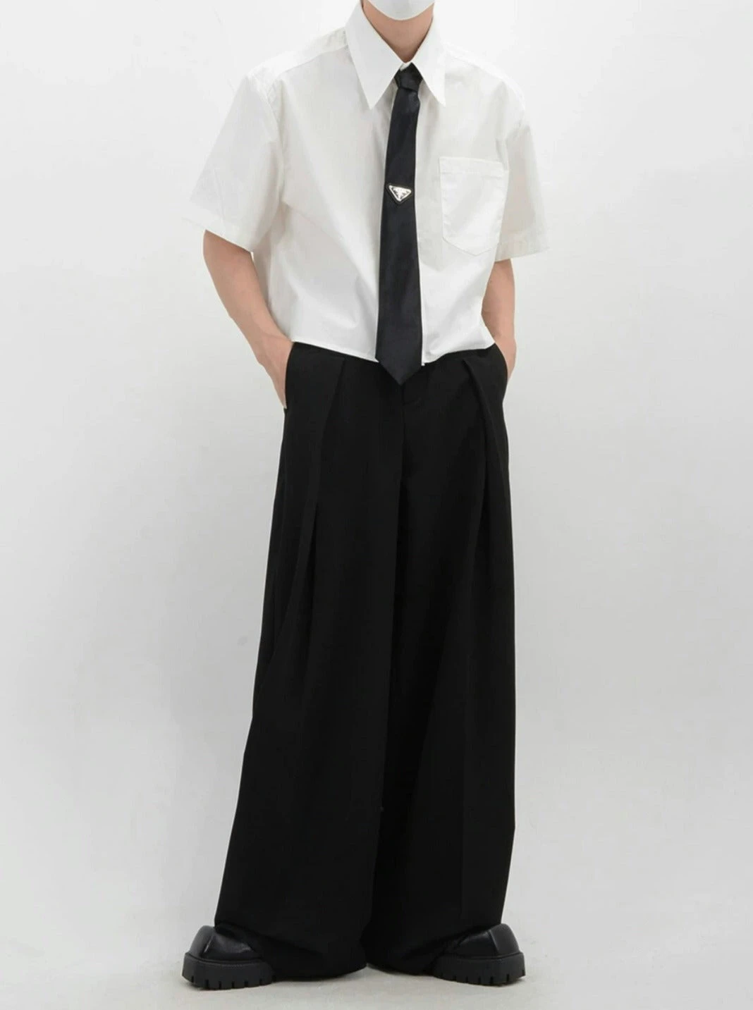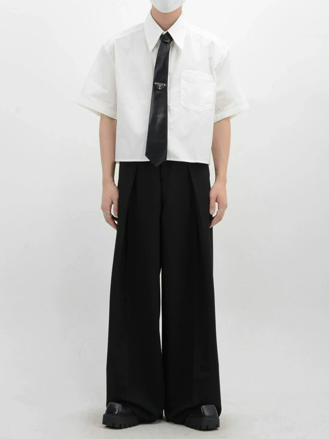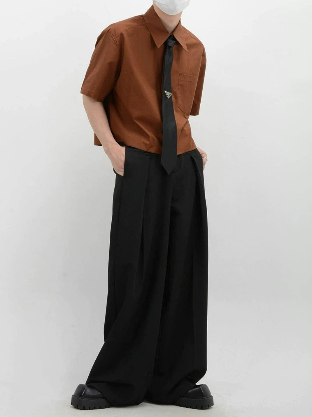 Crafted from soft, breathable fabric, this mid-crop shirt features a sharp sword collar and a functional chest pocket, adding a touch of polished detail. The solid color design melds simplicity with a modern edge, ensuring this piece pairs seamlessly with a range of styles and accessories.