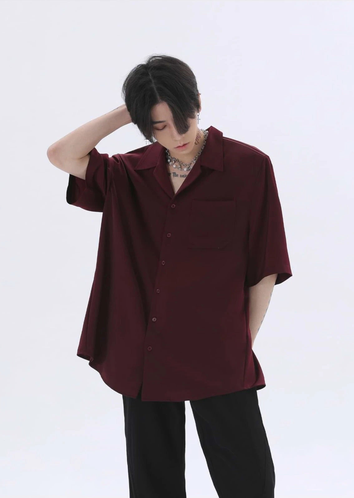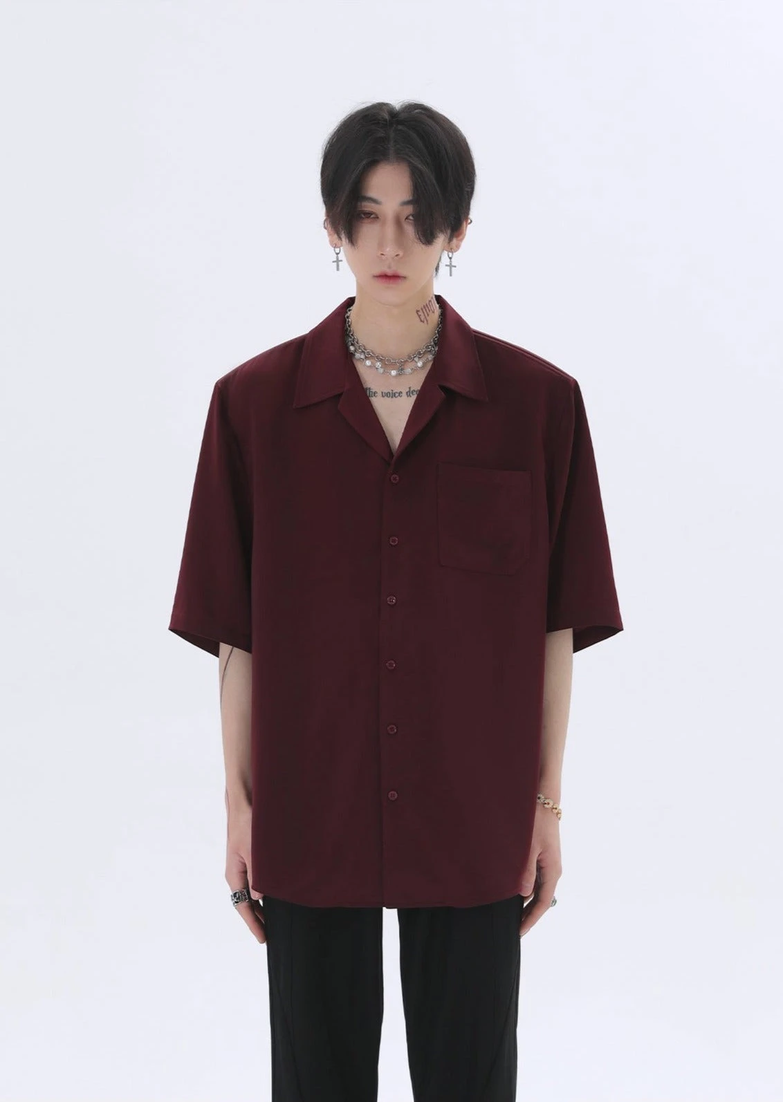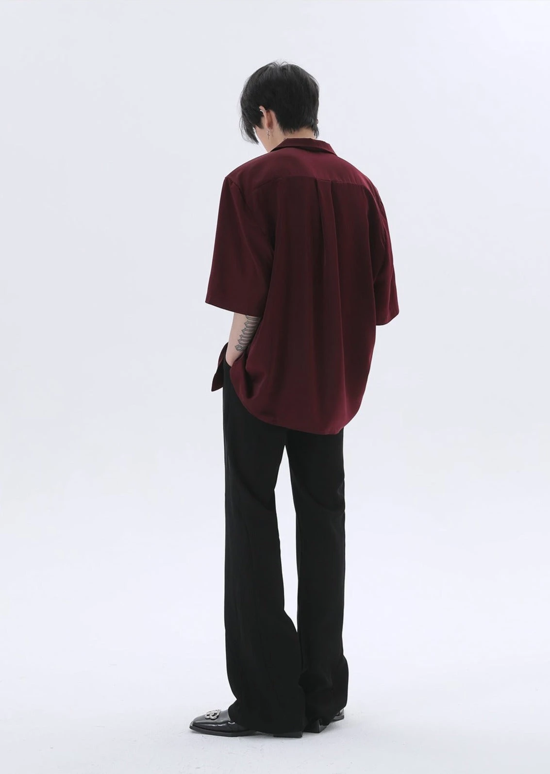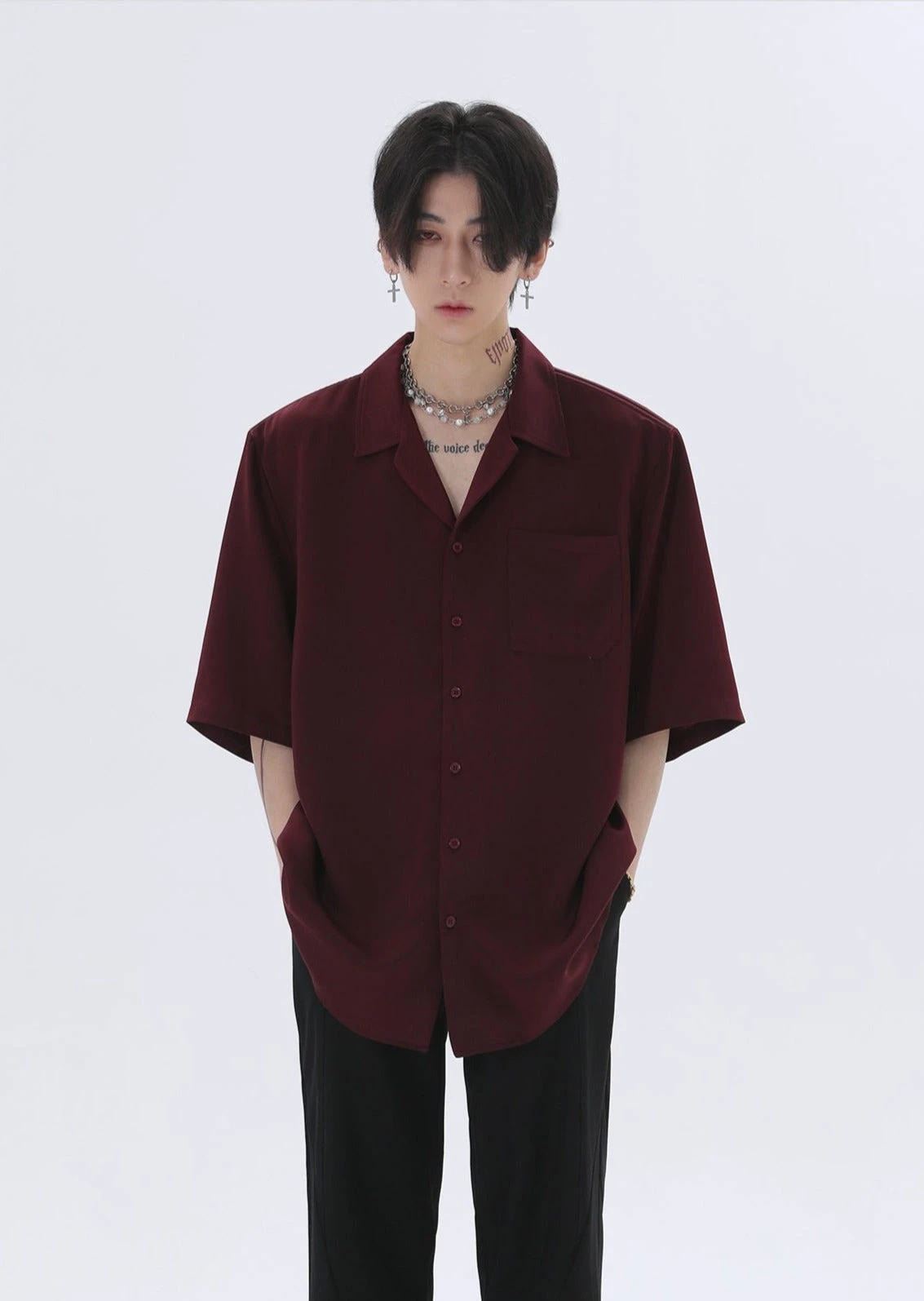 This Oversized Silk Short Sleeve Shoulder-Padded Shirt is essential in any warm-weather capsule wardrobe. Crafted from luxurious silk, this warm-weather essential is cut in an oversized fit and comes in a regal wine-red hue, perfect for staying minimal yet edgy.