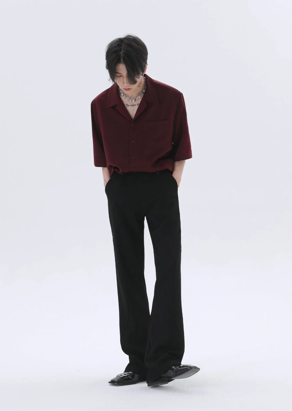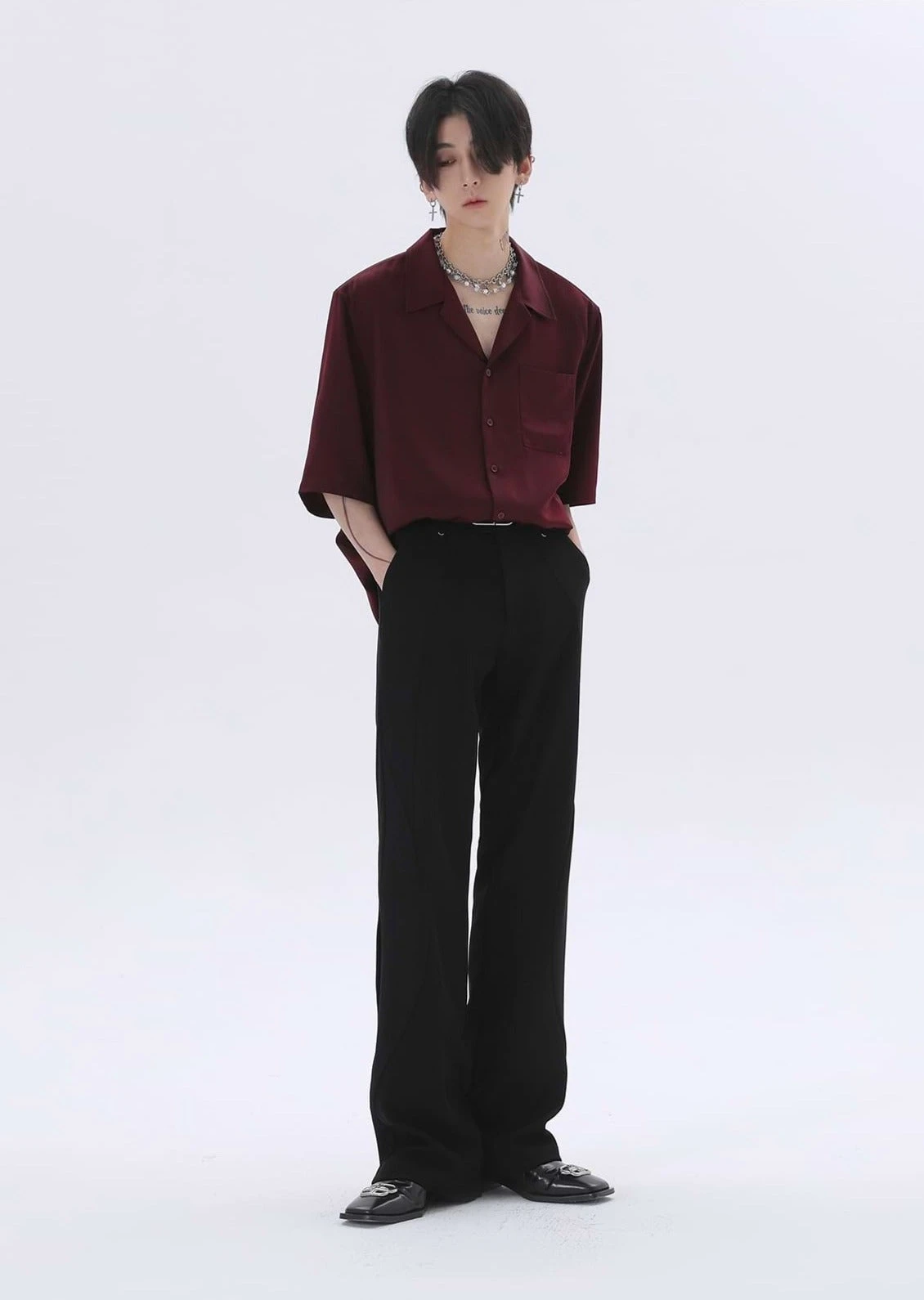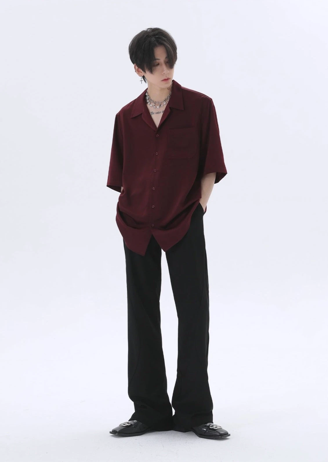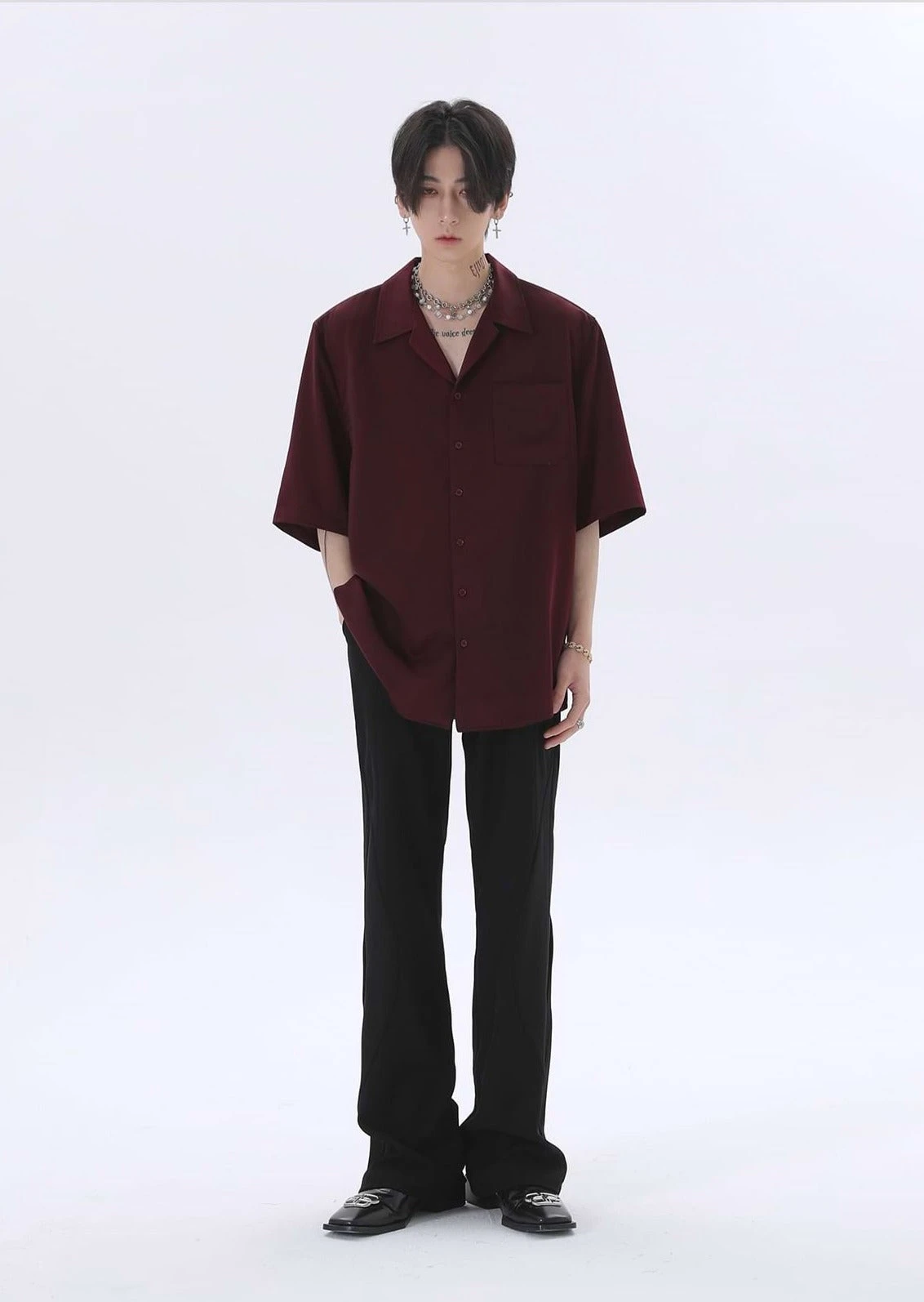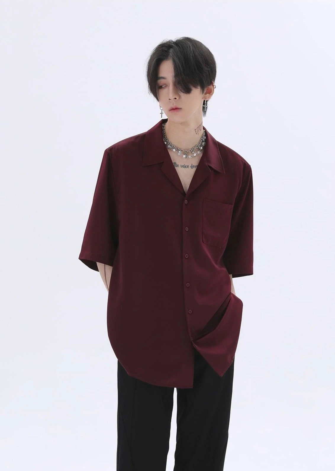 This Oversized Silk Short Sleeve Shoulder-Padded Shirt is essential in any warm-weather capsule wardrobe. Crafted from luxurious silk, this warm-weather essential is cut in an oversized fit and comes in a regal wine-red hue, perfect for staying minimal yet edgy.