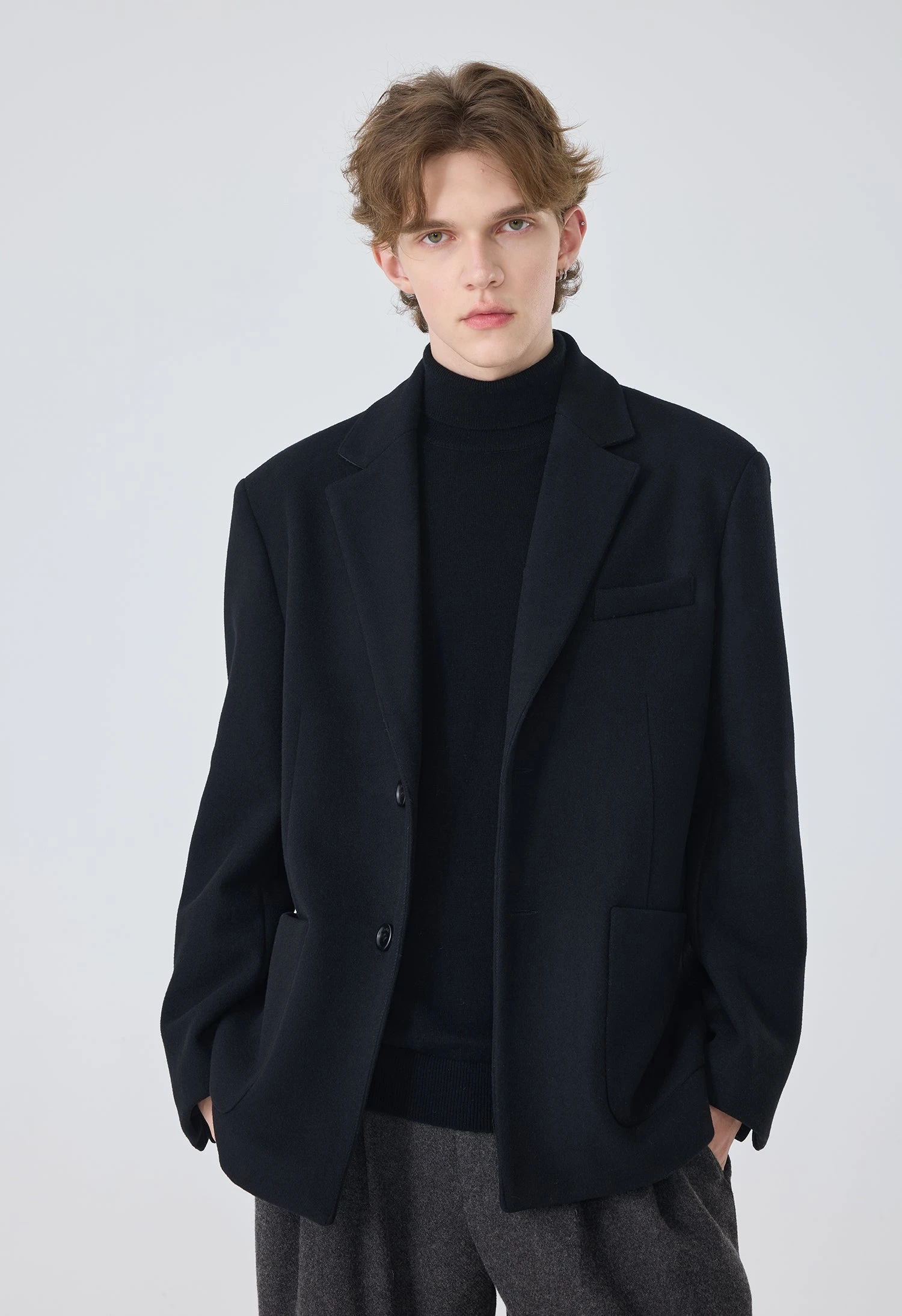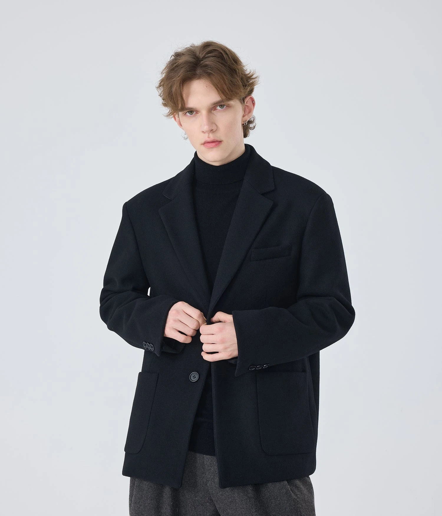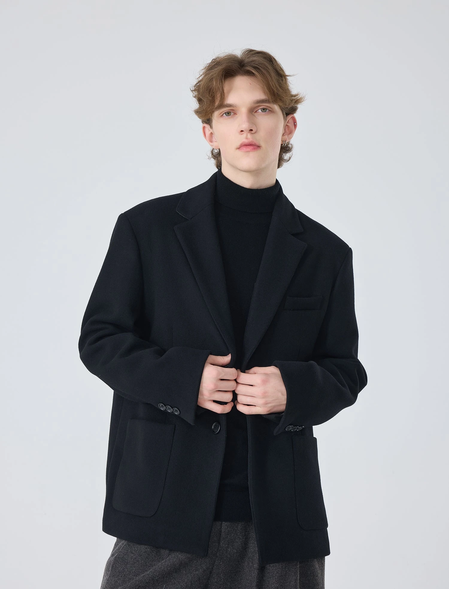 Designed with a relaxed fit and a sharp notched lapel, this single-breasted jacket brings effortless refinement to any look. Its clean silhouette makes it a staple for layering, whether you’re dressing it up or keeping it casual. Cut from a premium wool-blend fabric, this blazer combines softness with durability, offering warmth without feeling too heavy.