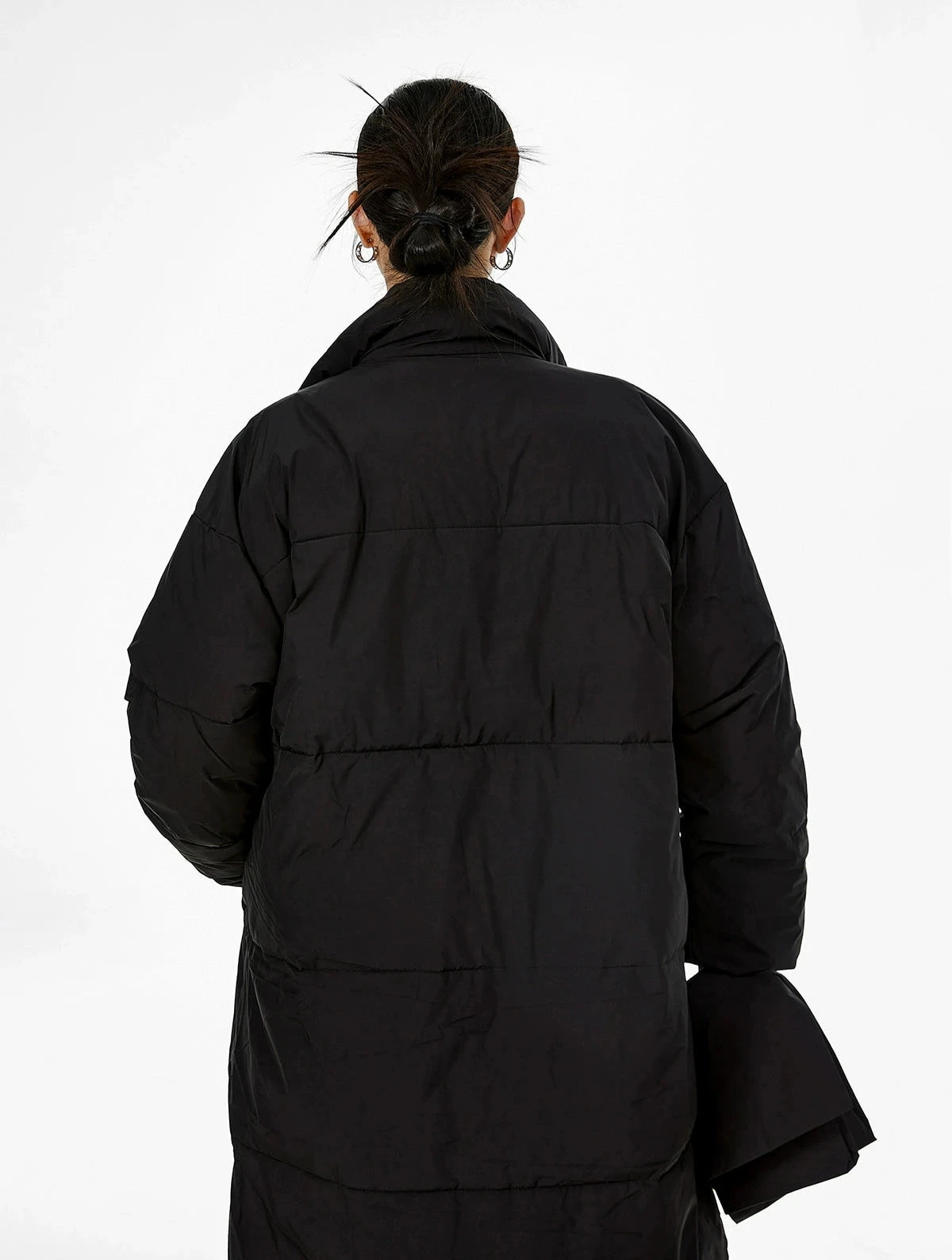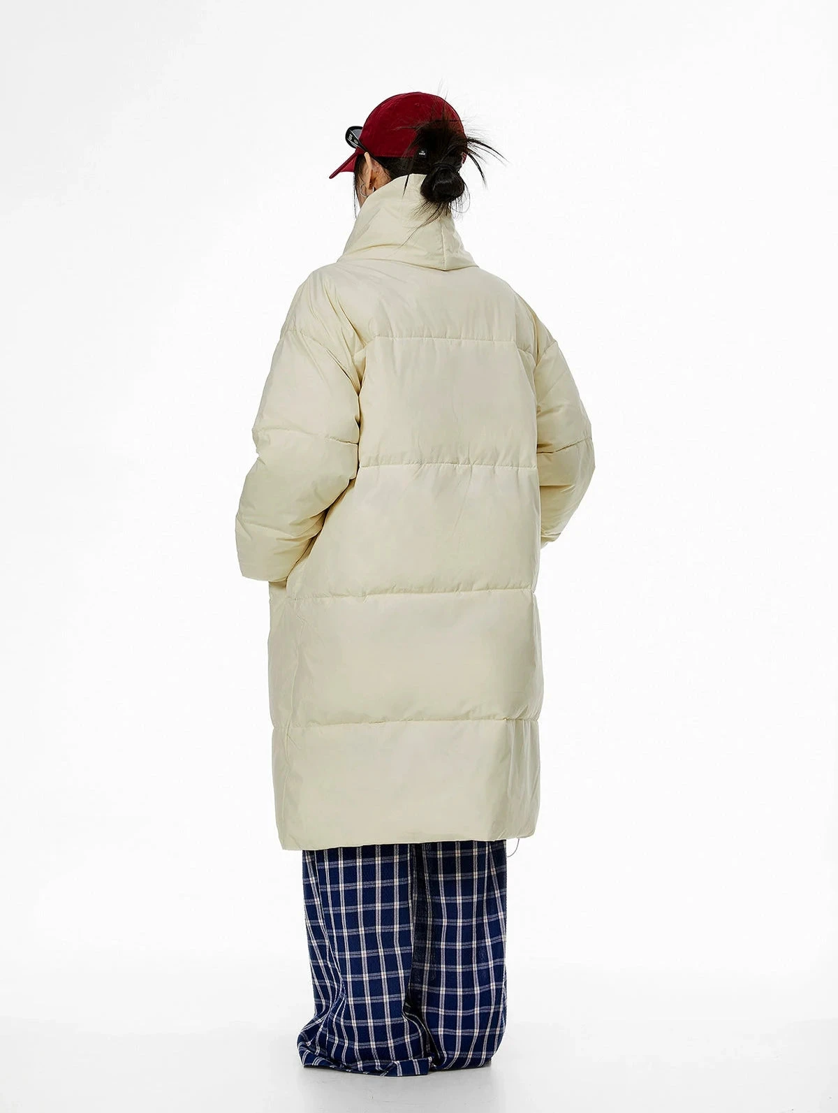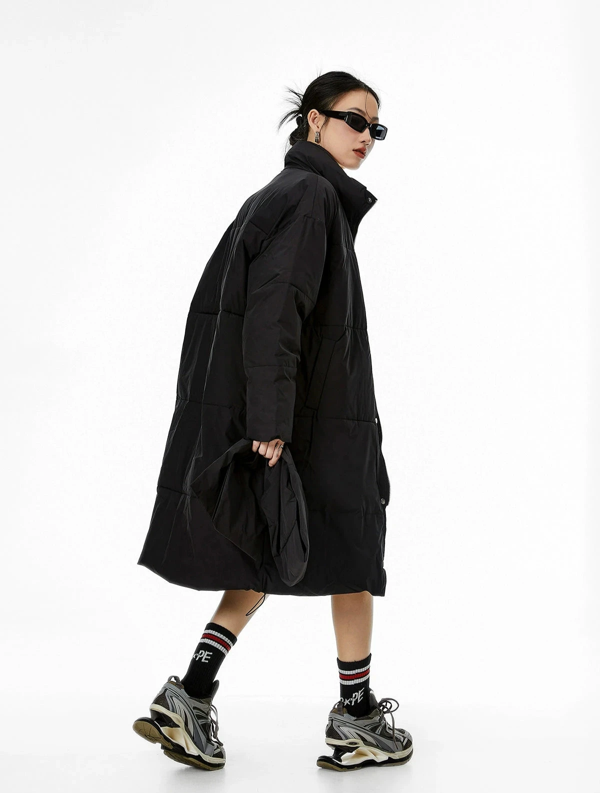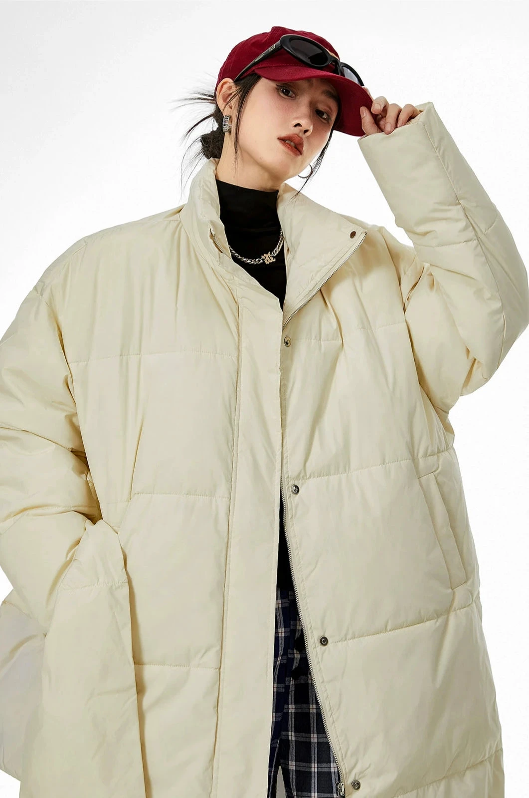 Embrace the chill in style with our Oversized Stand Collar Puffer Coat, a piece that marries cozy warmth with a sleek aesthetic.