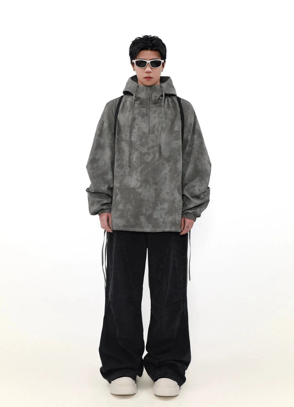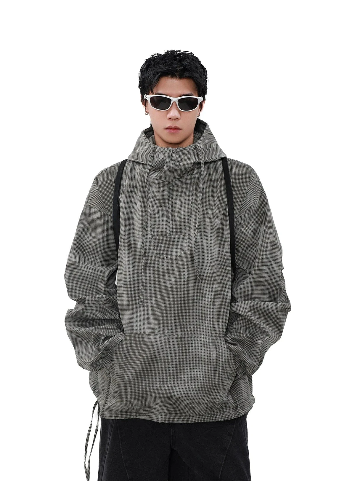Step into the urban jungle with our Oversized Waffle-Texture Camo Hooded Jacket, a perfect blend of edgy design and comfort.