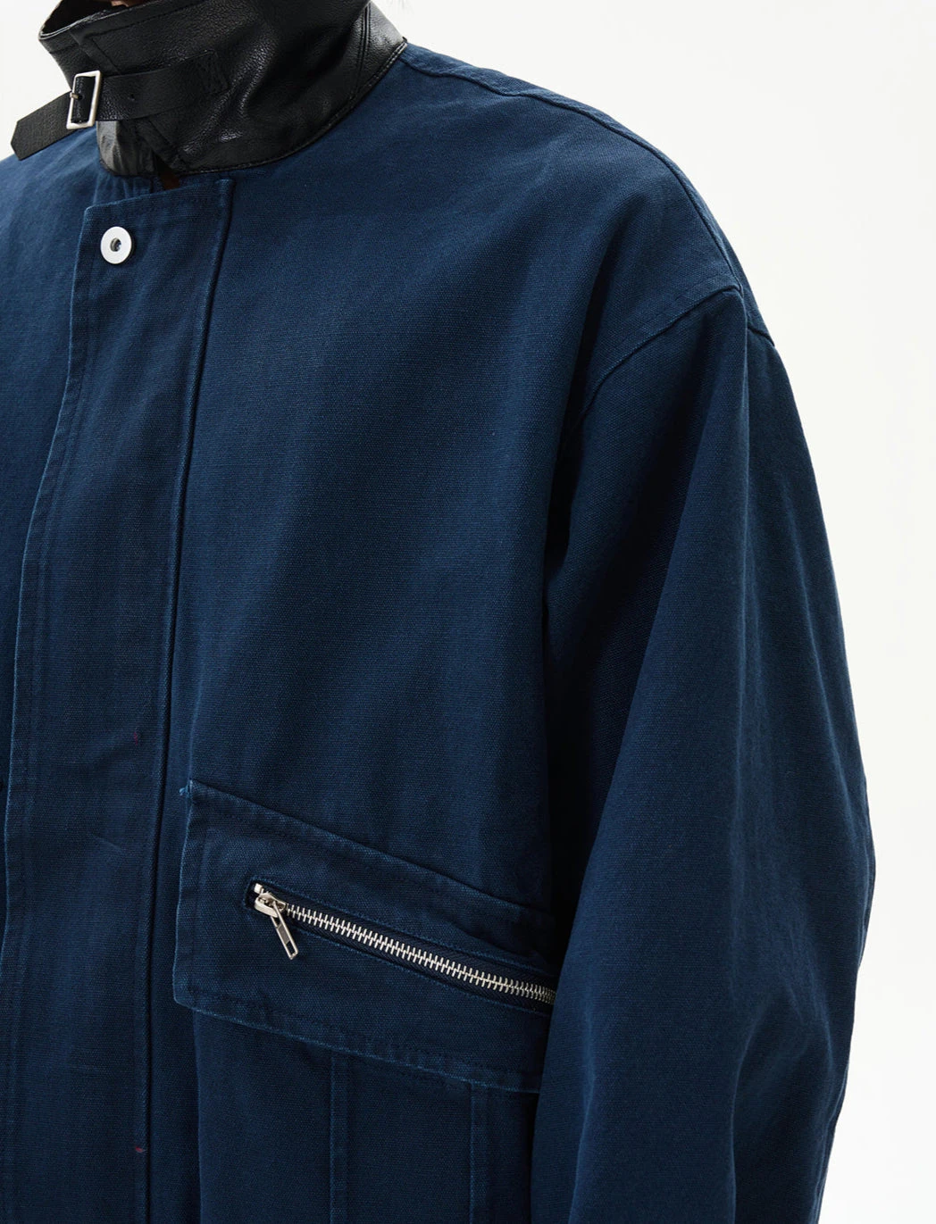 Effortlessly redefine your wardrobe with this Oversized Worker Jacket, featuring a modern oversized fit and a striking contrast faux leather collar. Designed for those who embrace edgy yet approachable fashion, this piece blends functional outerwear design with a touch of bold refinement.