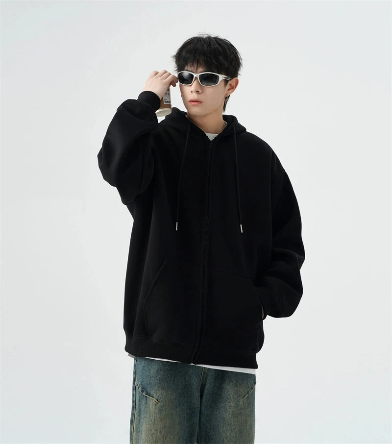Embrace the effortless charm of our Oversized Zip-Up Sweatshirt Hoodie with drop shoulders—a versatile addition to your casual wardrobe.