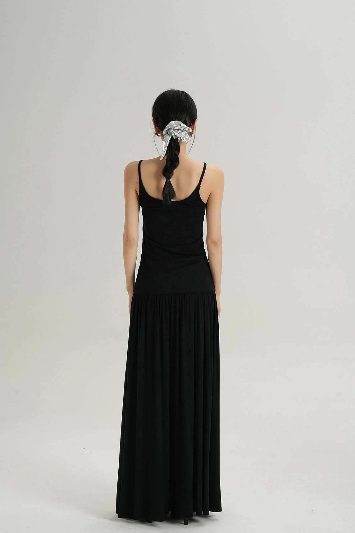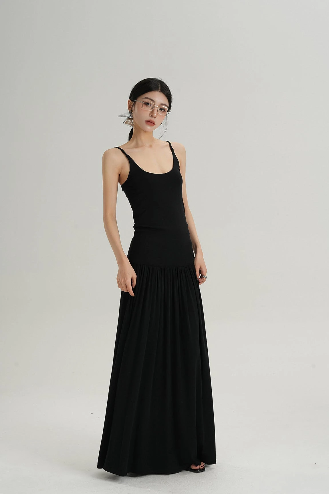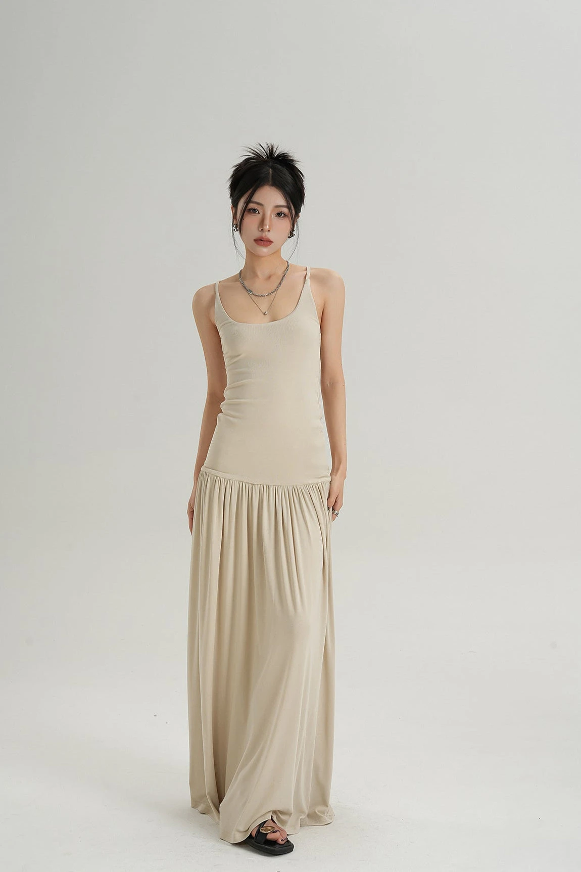 Effortless yet refined, this pleated skirt maxi dress delivers an understated edge with its sleek silhouette and fluid movement.