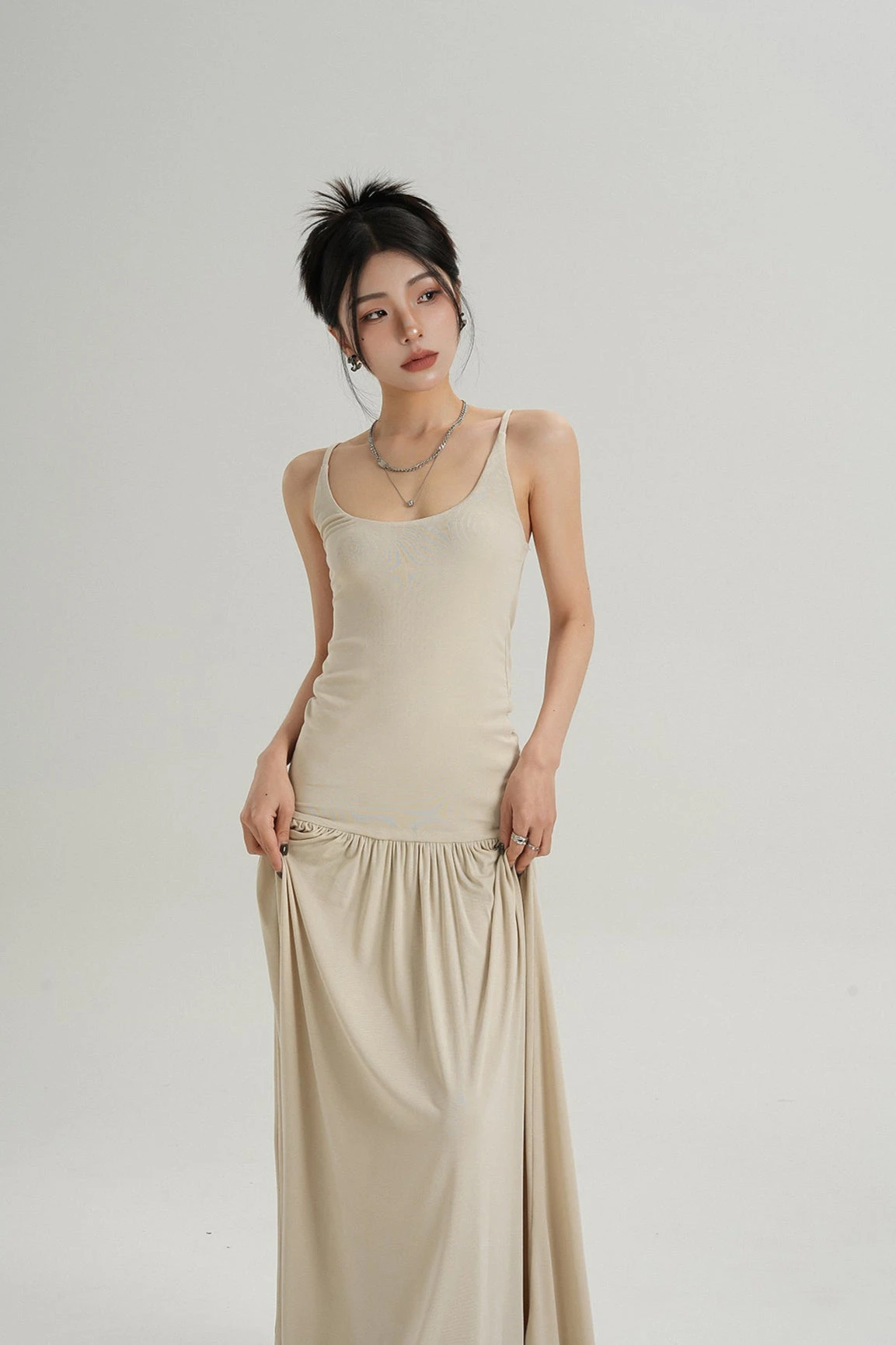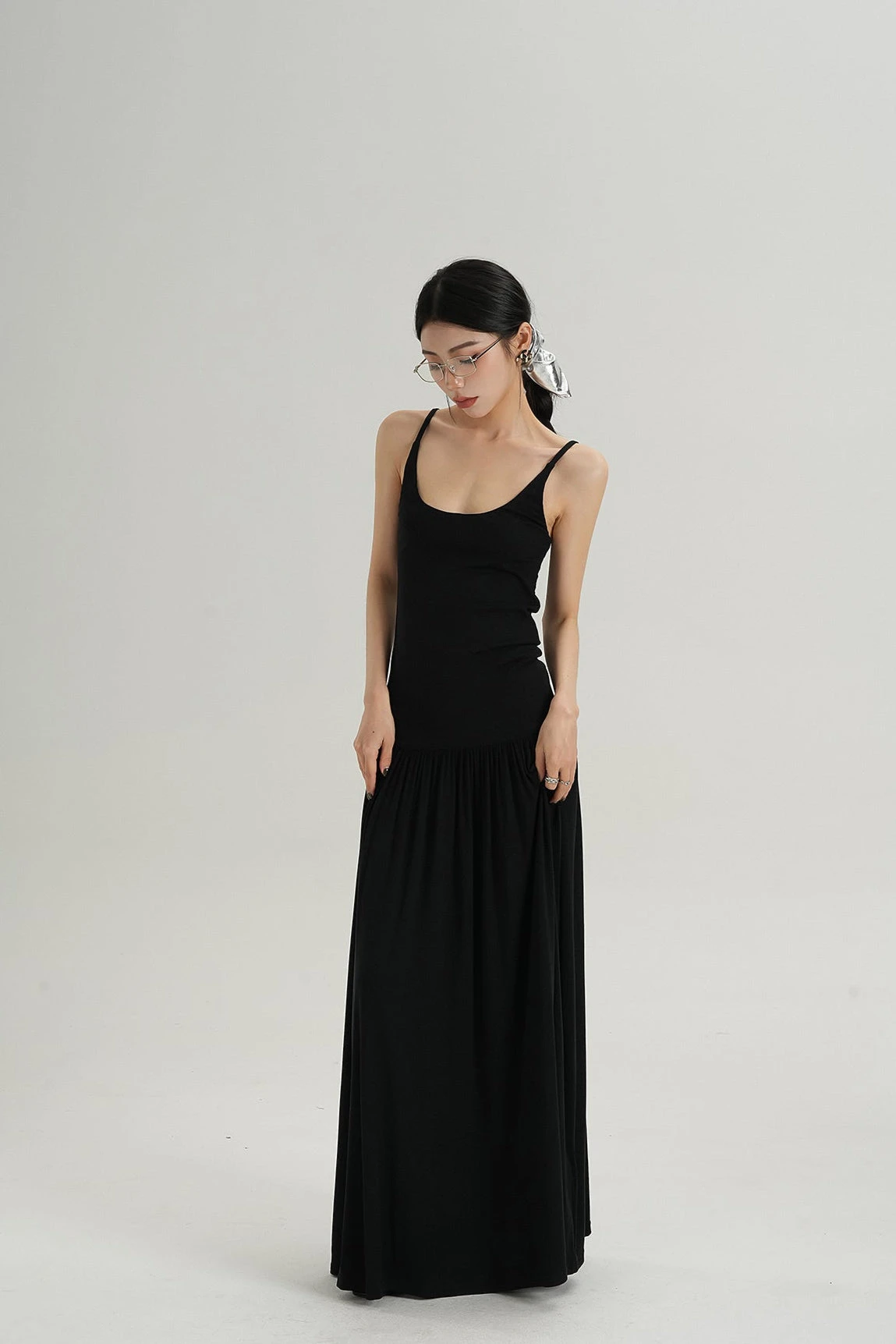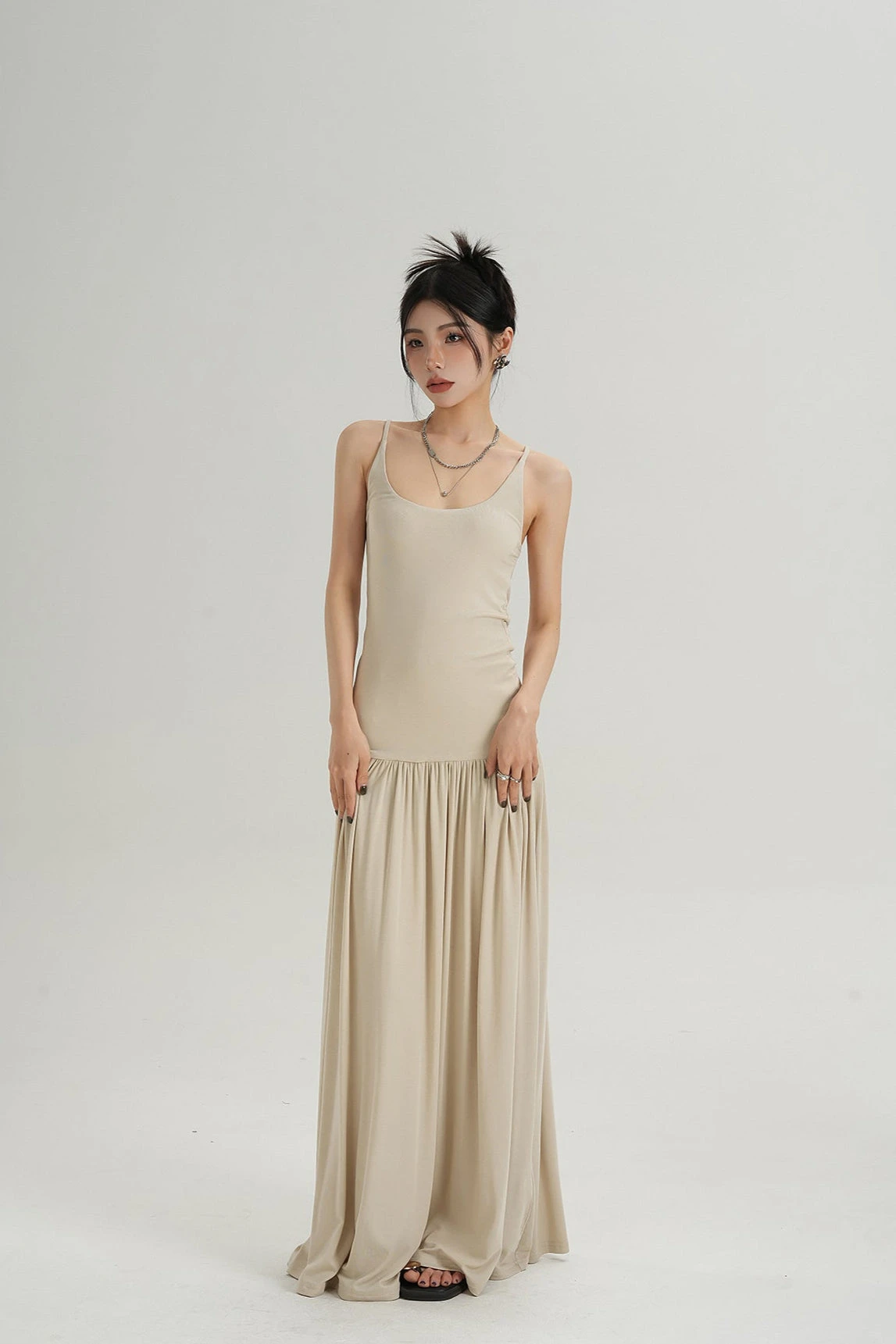 Effortless yet refined, this pleated skirt maxi dress delivers an understated edge with its sleek silhouette and fluid movement.