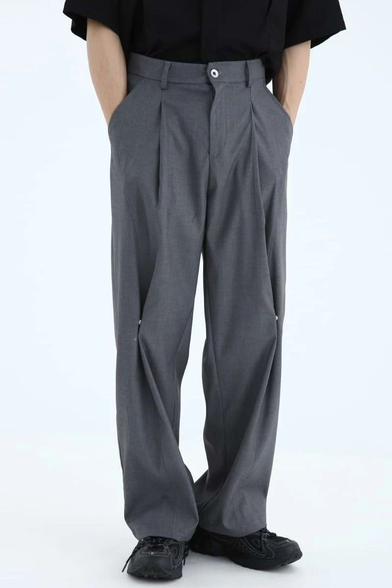 Get stylish top to bottom with these Pleated Straight Fit Pants with Knee Buttons. Perfect for any occasion, these trousers are designed with a comfortable straight fit and classic pleats. Pair them with your favorite suit for formal occasions or with casual tops for a day out. Now you’ll look great no matter the occasion and feel comfortable whatever you do!