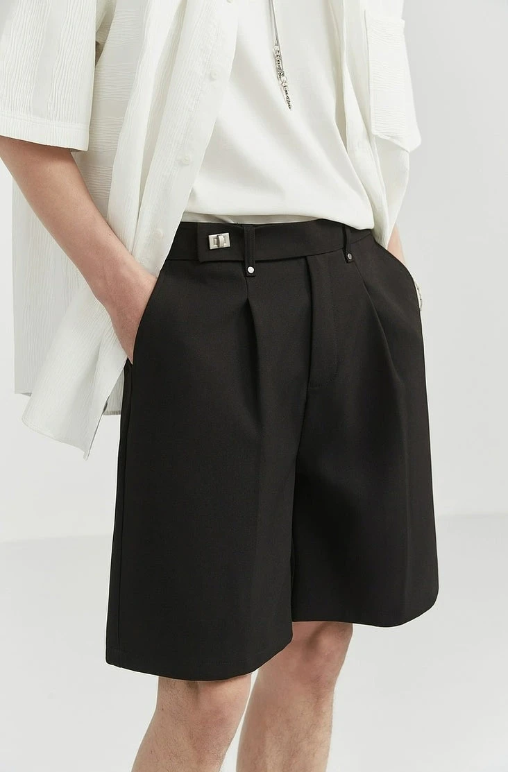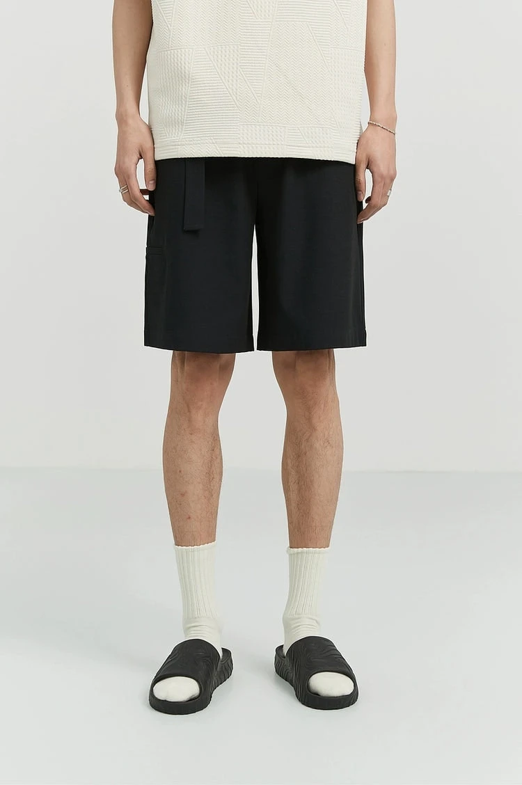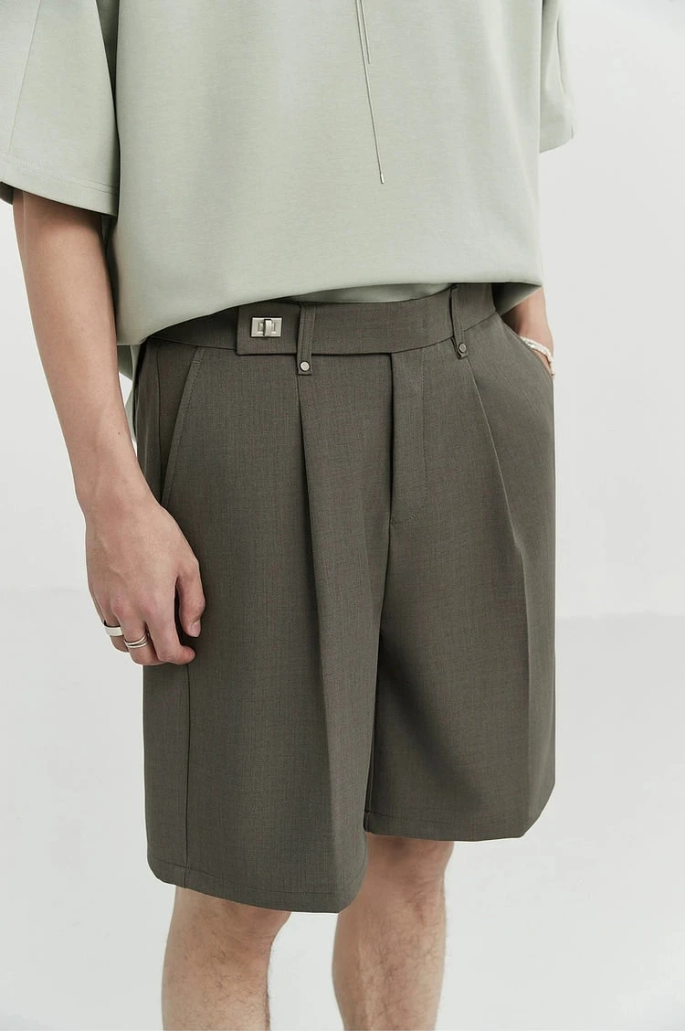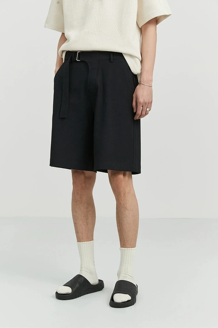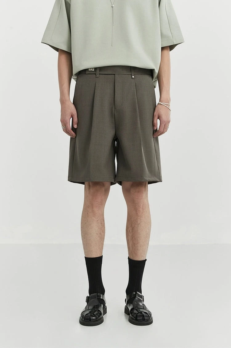 Experience tailored sophistication with our Pleated Tailored Bermuda Shorts, complete with a contemporary belt detail for a touch of edge.