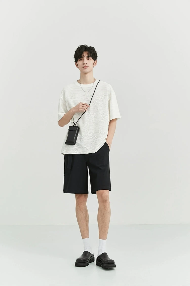 Meticulously crafted from a blend of polyester fiber and spandex, these shorts promise comfort and style. The pleated design adds texture, while the tailored fit ensures a sharp silhouette. These Bermudas make a versatile addition to your wardrobe, easily transitioning from casual outings to more formal environments.