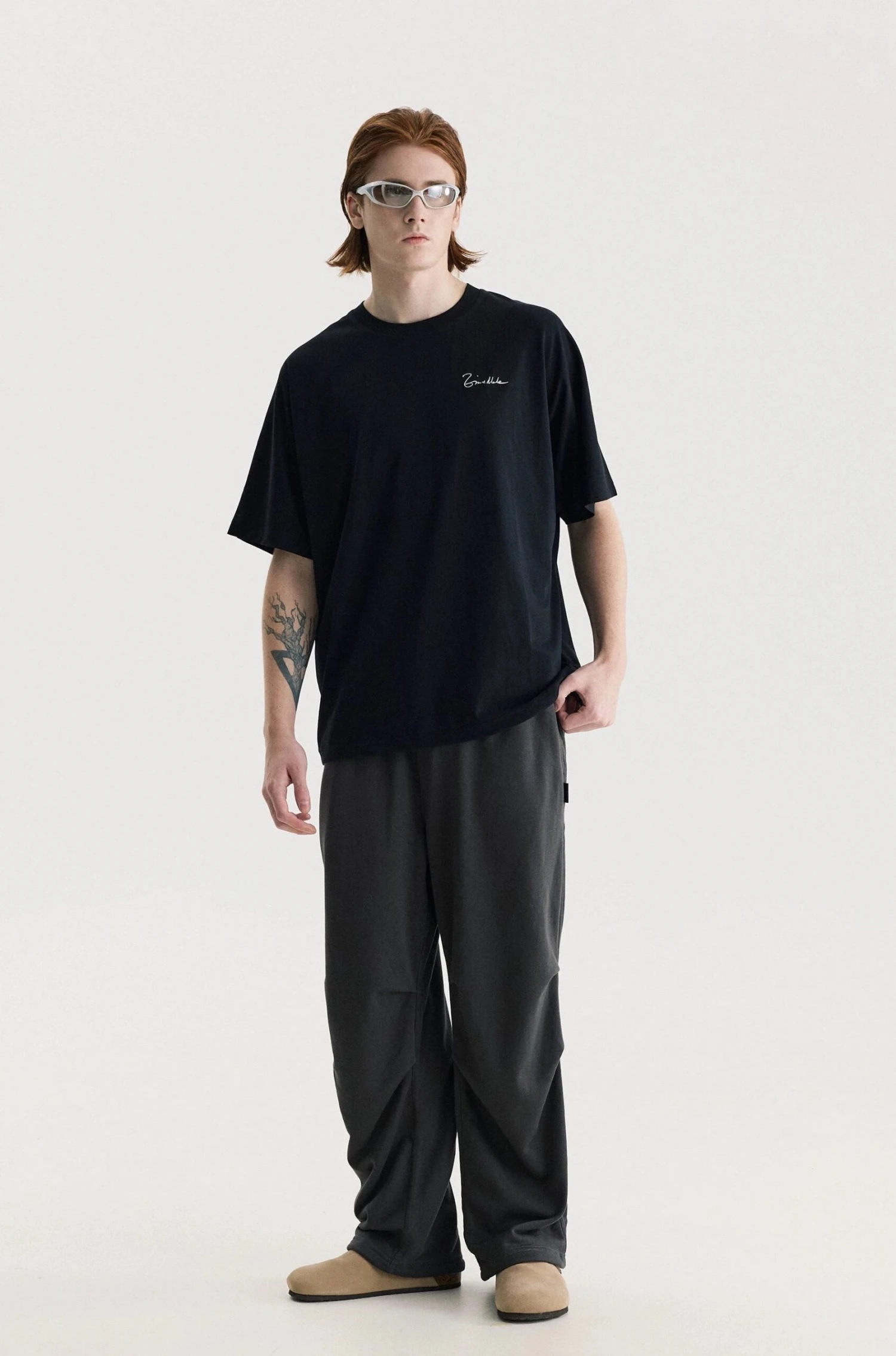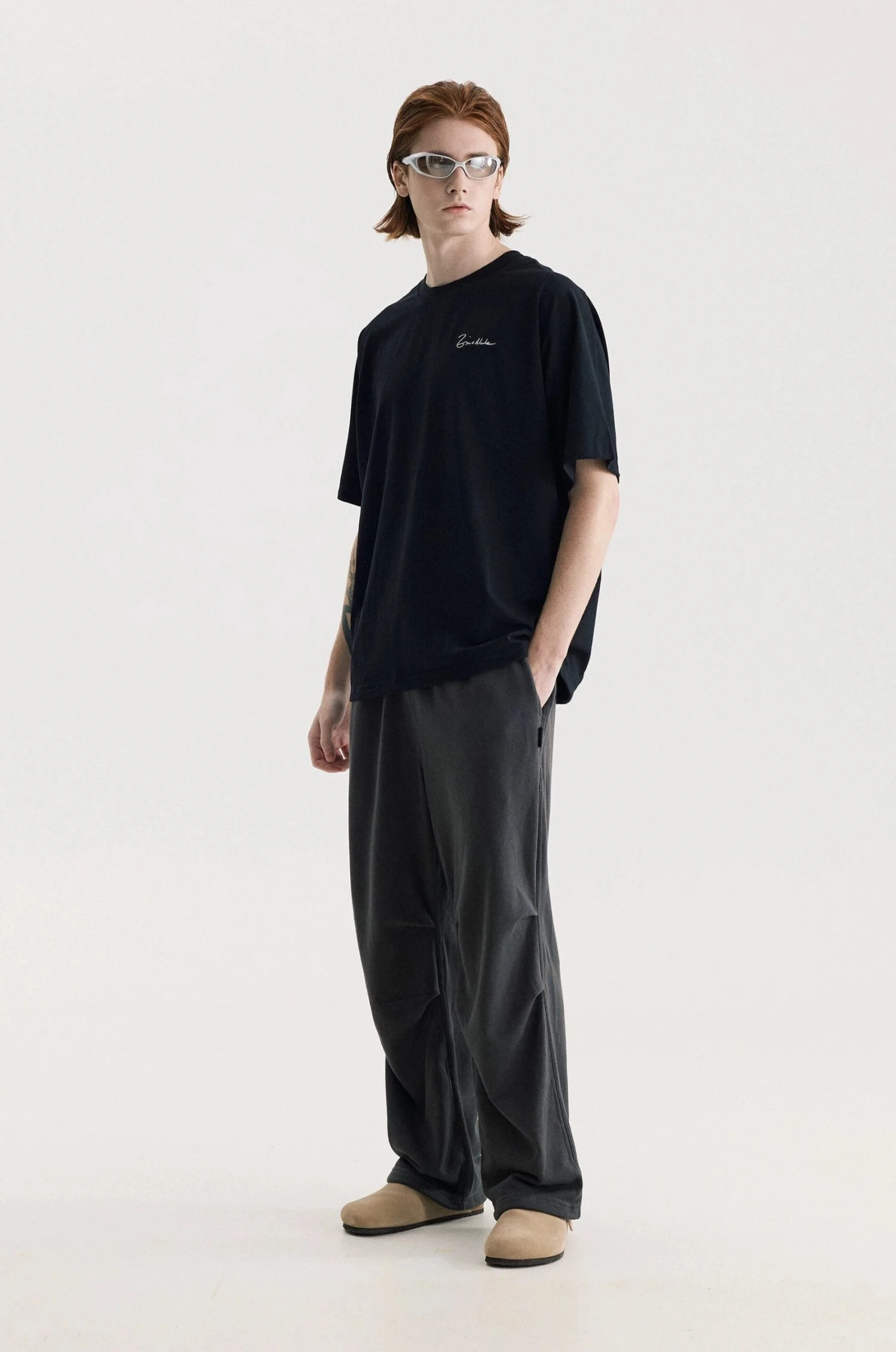 Crafted with a focus on texture and form, these joggers feature a soft cotton blend, articulated with elegant pleats and a tapered silhouette. The unique back flap pocket adds a touch of functionality, while the subtle embroidery provides an understated nod to contemporary street style. Their wrinkle-resistant fabric ensures a crisp look all day long.