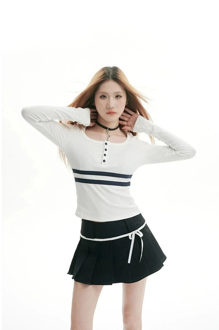 Embrace your edgy side with this high-waisted Pleated Tennis Mini Skirt, crafted for a statement-making entrance.