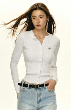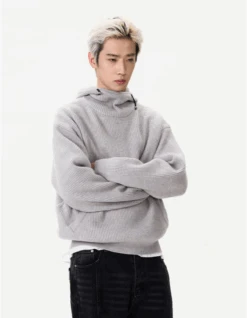 Ribbed Knit Henley Sweater With Button Detailing And Contrast Trim
