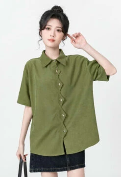 Zigzag Button Collared Top