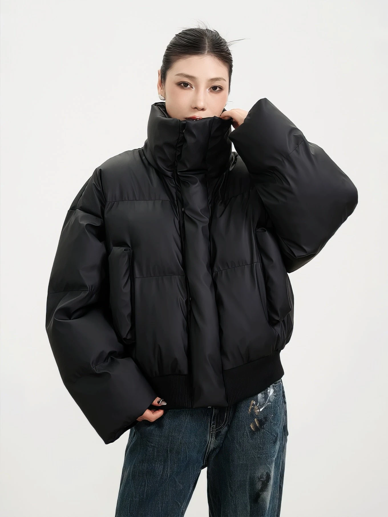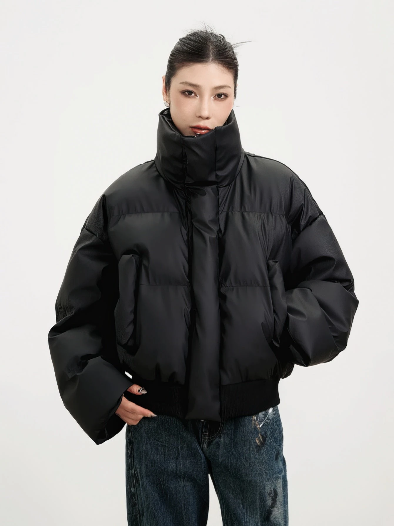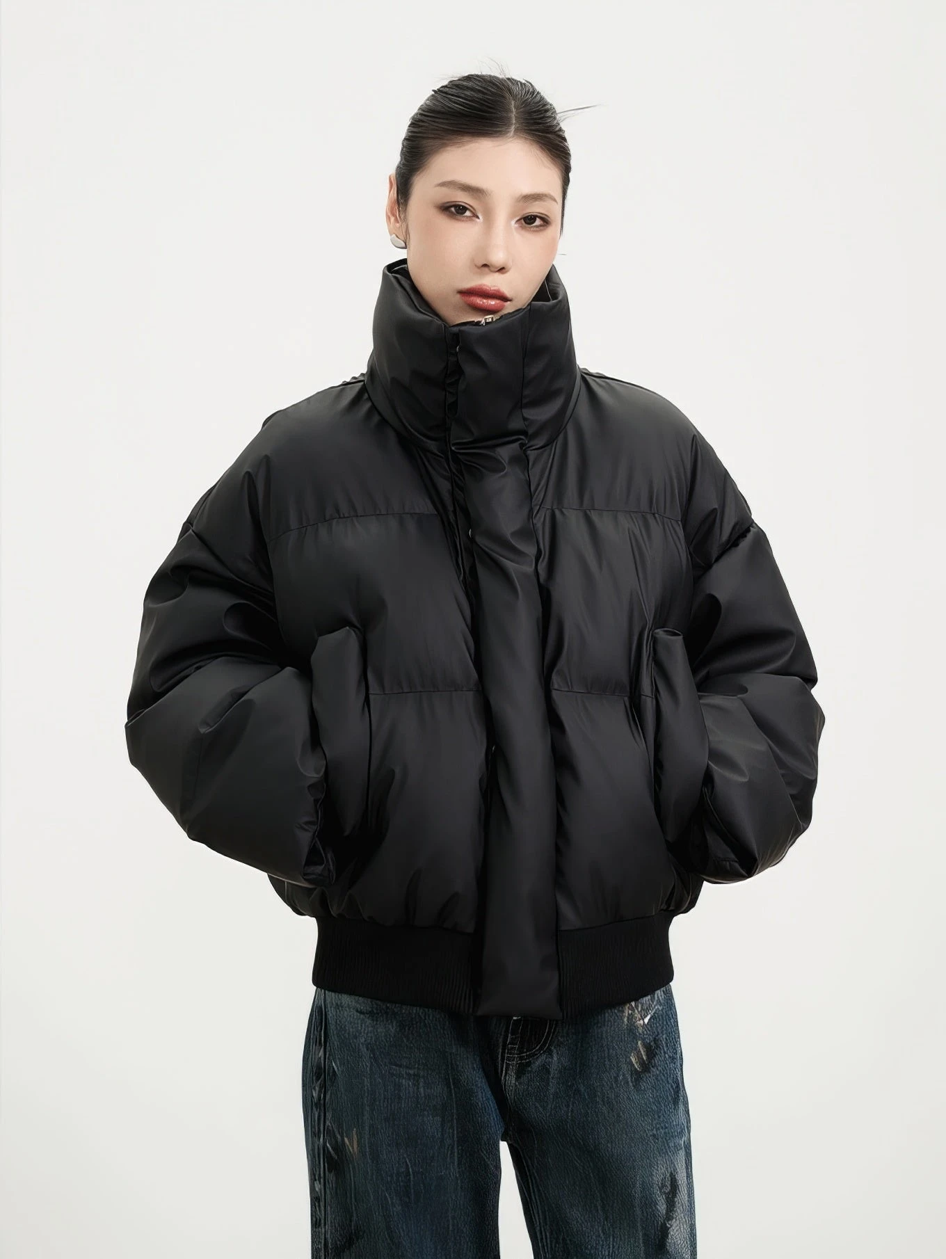 Expertly crafted from high-quality materials, this puffer jacket features a solid color design with a nonchalant retro appeal, perfect for staying warm while exuding an effortlessly cool vibe. The stand-up collar provides extra warmth on breezy days, and secure zippered pockets keep your essentials safe. The ribbed hem contributes both to the jacket’s snug fit and its understated, moody aesthetic.