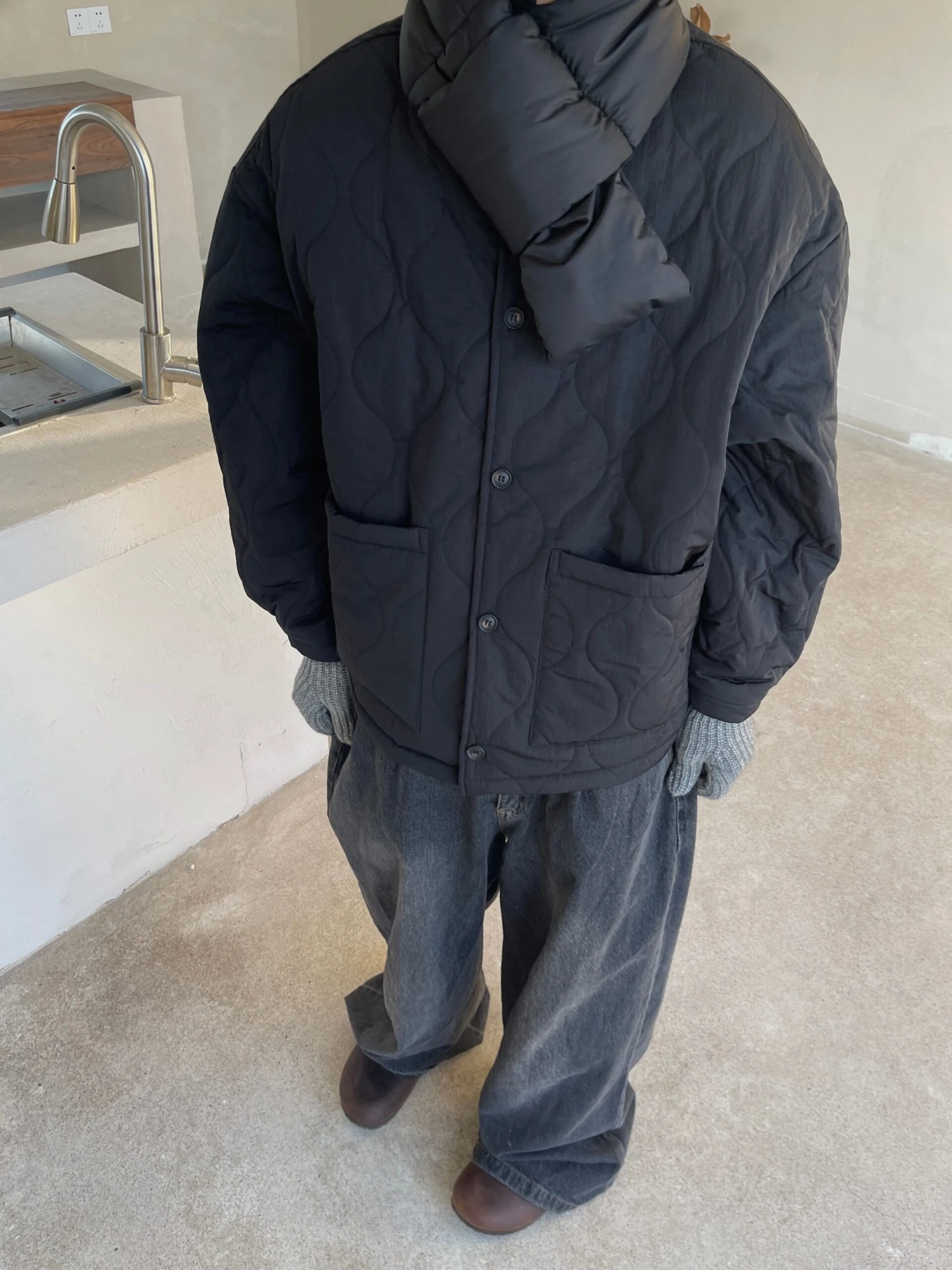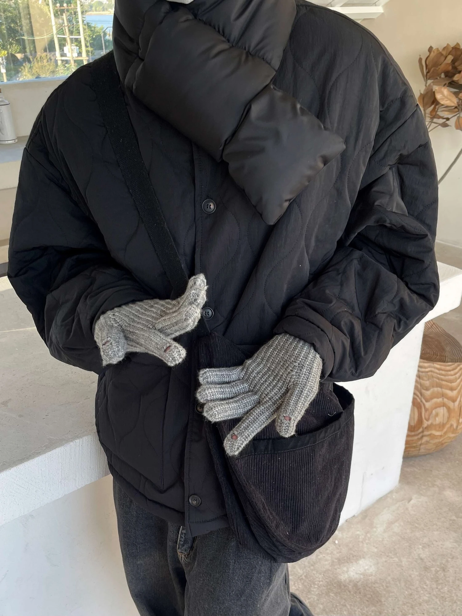 This Puffer Neck Scarf is perfect for when you want to keep warm without looking like everyone else. Made with down feathers, this scarf is sure to keep you cozy all winter long. The unique design makes it an edgy alternative to your regular scarf.