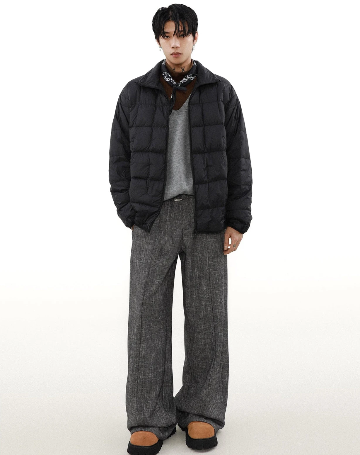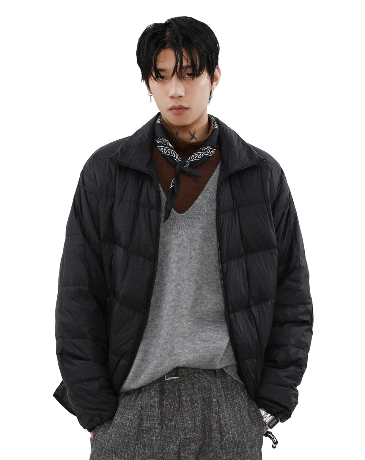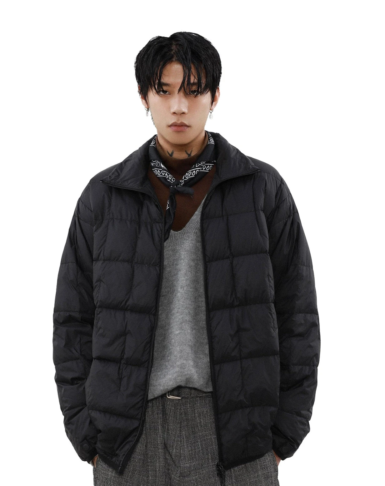 The stand collar and double zip closure make it an adaptable piece that pairs functionality with aesthetic appeal. Crafted from durable, lightweight nylon and filled with insulating white duck down, this jacket offers dependable warmth while maintaining a sleek silhouette. The quilted design not only adds a textured dimension but also ensures balanced heat distribution. Minimalist in style, it’s a versatile layer that transitions seamlessly from casual outings to urban escapades. For a laid-back vibe, pair it with distressed jeans and sneakers. Elevate your look for the evening by layering it over tailored trousers and a turtleneck. A street-ready essential made with meticulous attention to both form and function.