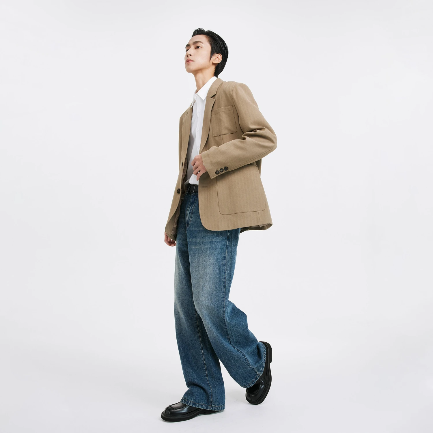 A relaxed structure with a sharp edge — this tailored blazer brings laid-back polish through a versatile khaki tone and distinct patch pockets that add character without overdoing it.
