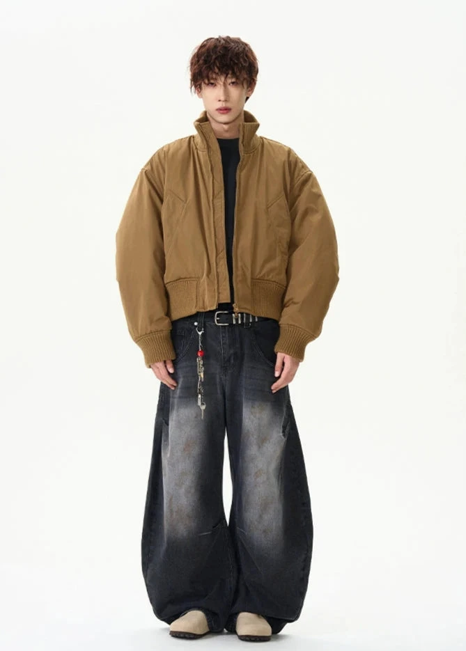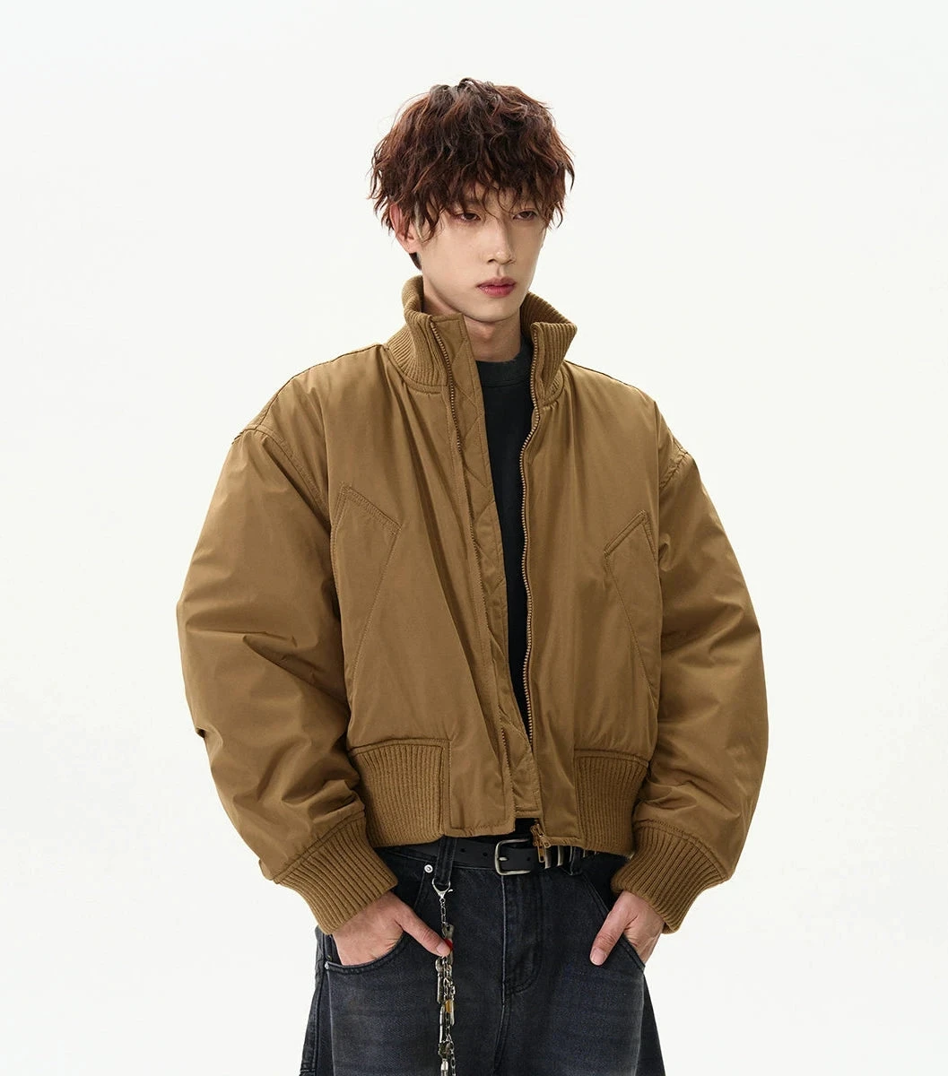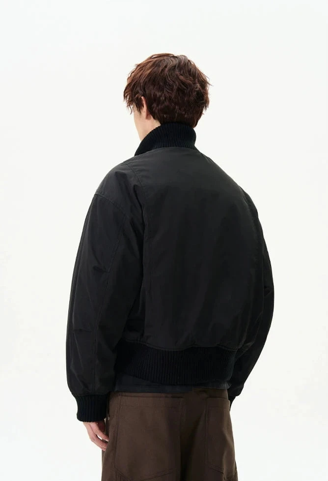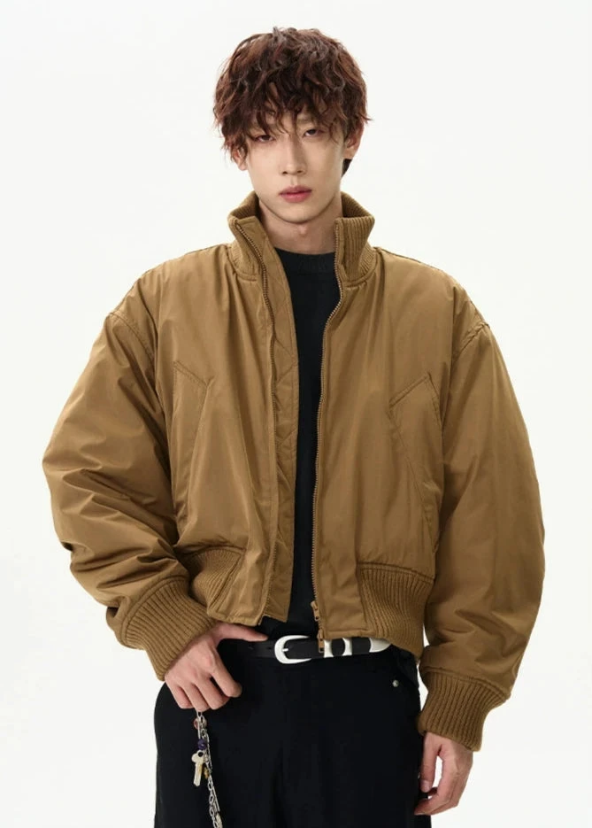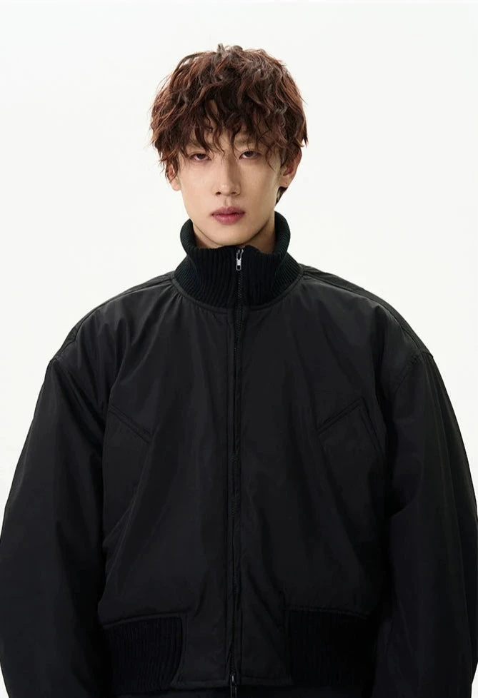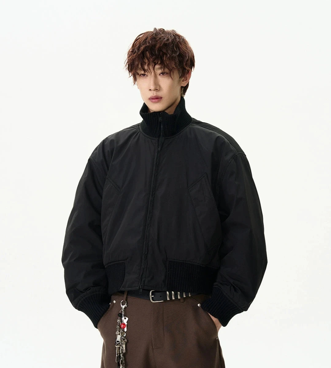 Discover the effortless cool of our Ribbed Collar Cropped Bomber Flight Jacket, a timeless piece designed to elevate your outerwear collection.