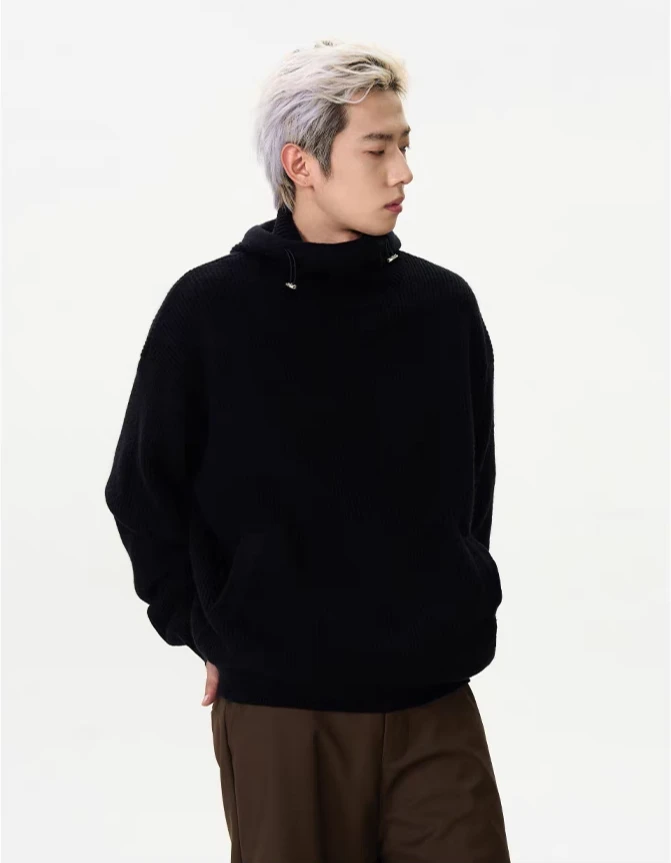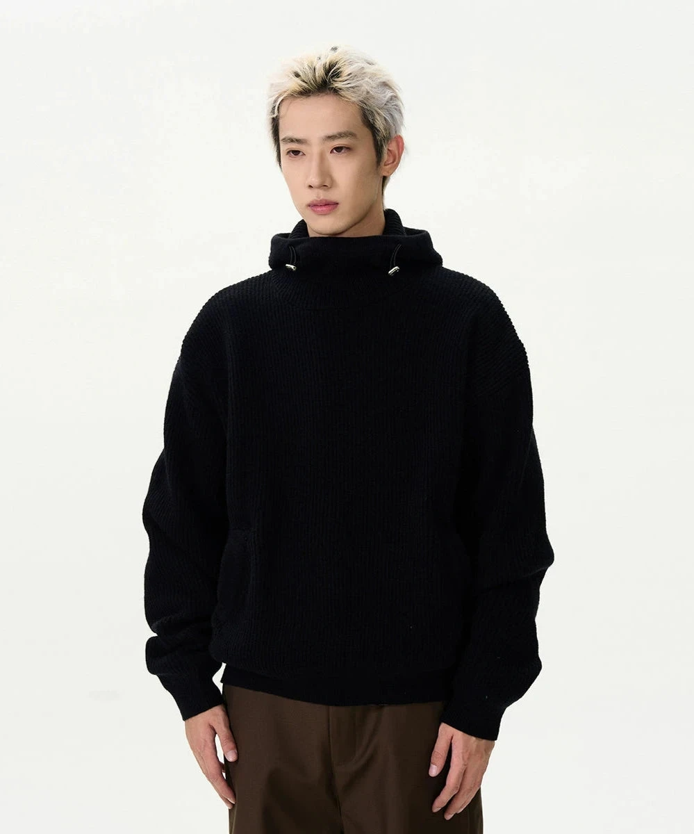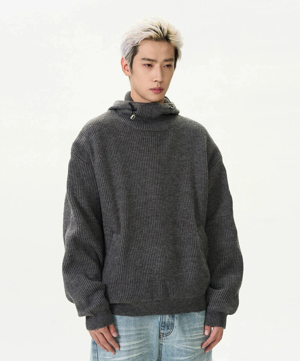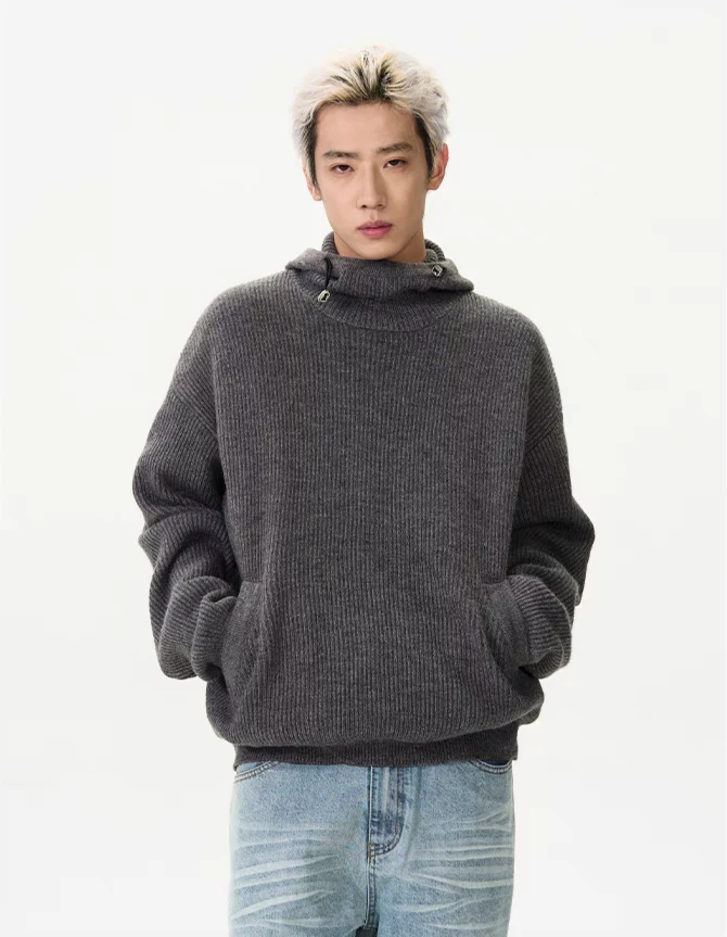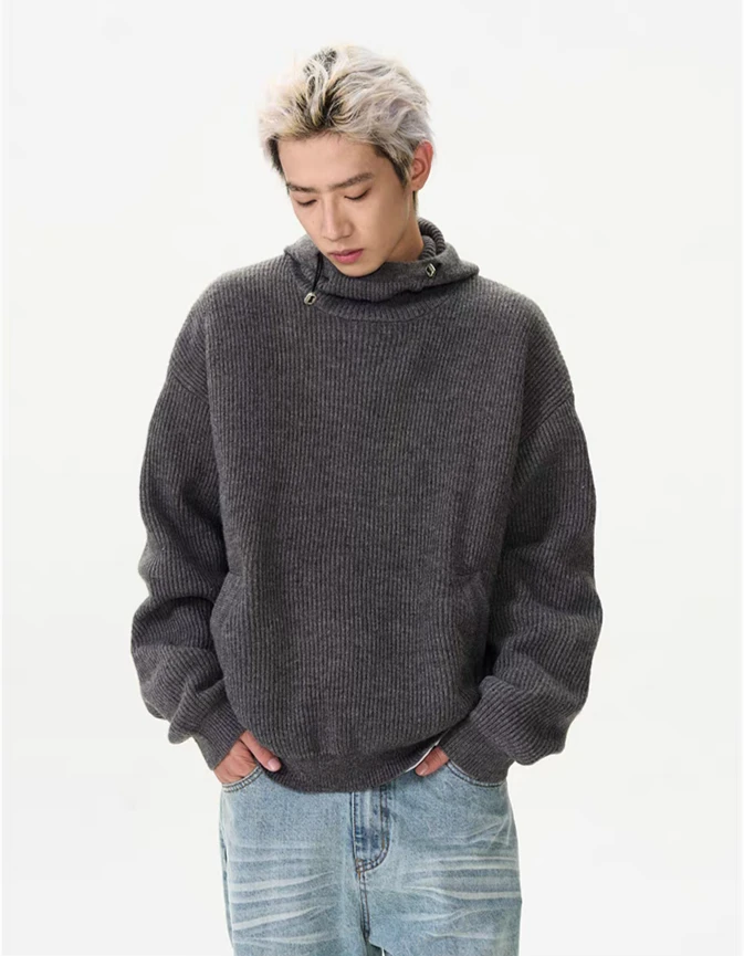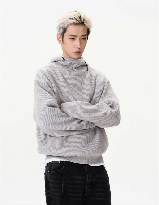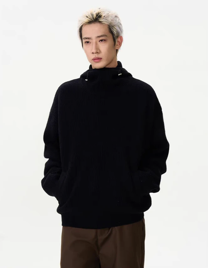 Crafted from quality materials, this sweater features a textured ribbed design and a unique high collar with a hoodie for an effortlessly stylish look. The conventional wool knit offers the right blend of warmth and breathability, making it a practical choice for varying conditions.