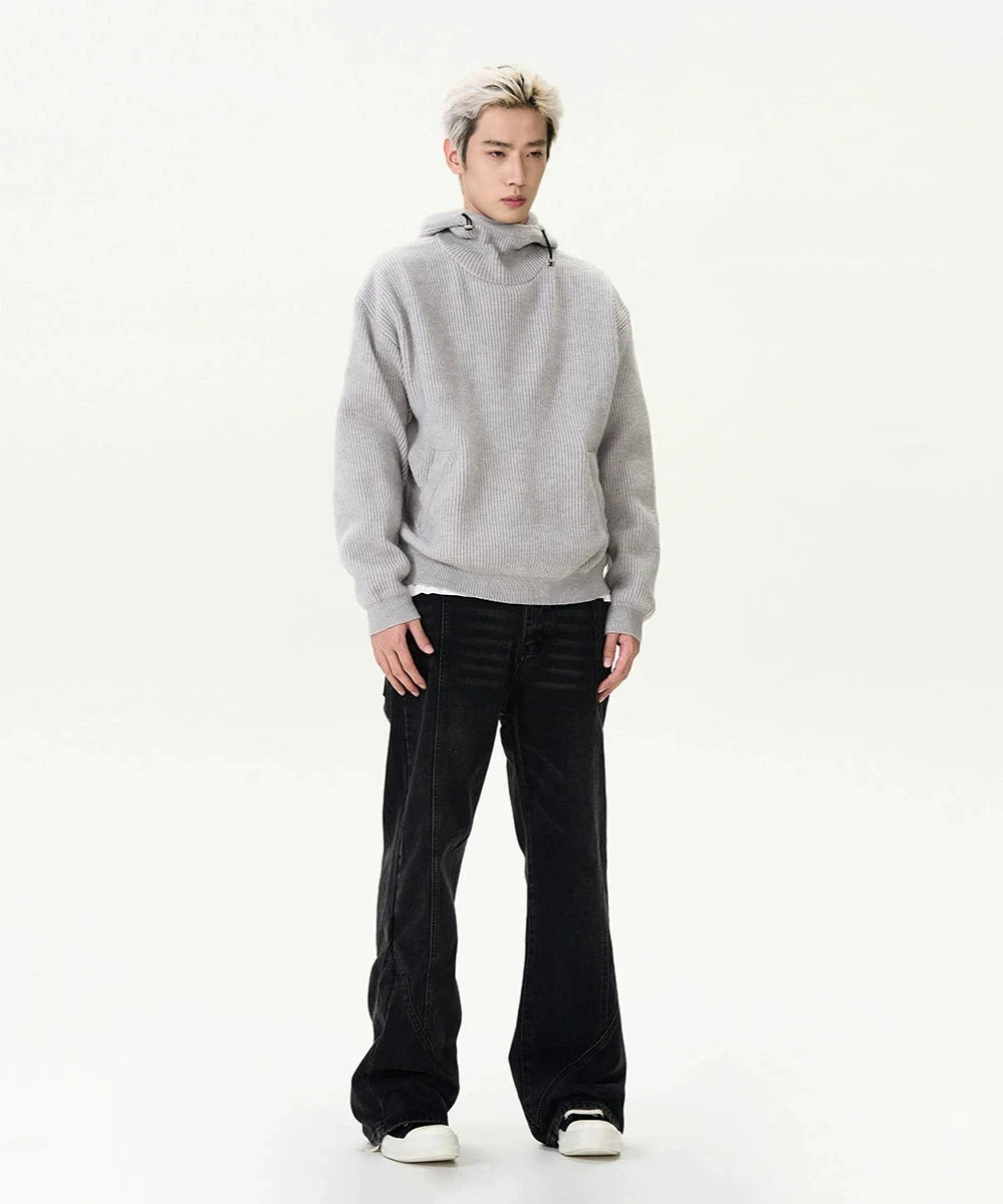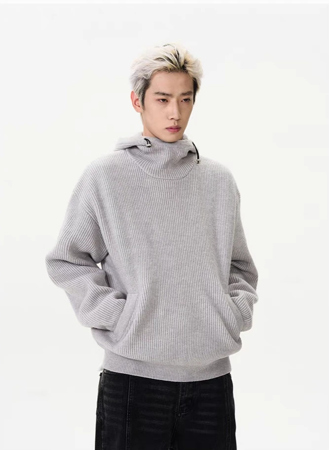 Meet the epitome of cool comfort: our Ribbed High Collar Hoodie Knit Sweater, a sleek addition to any wardrobe that doesn’t compromise on warmth.